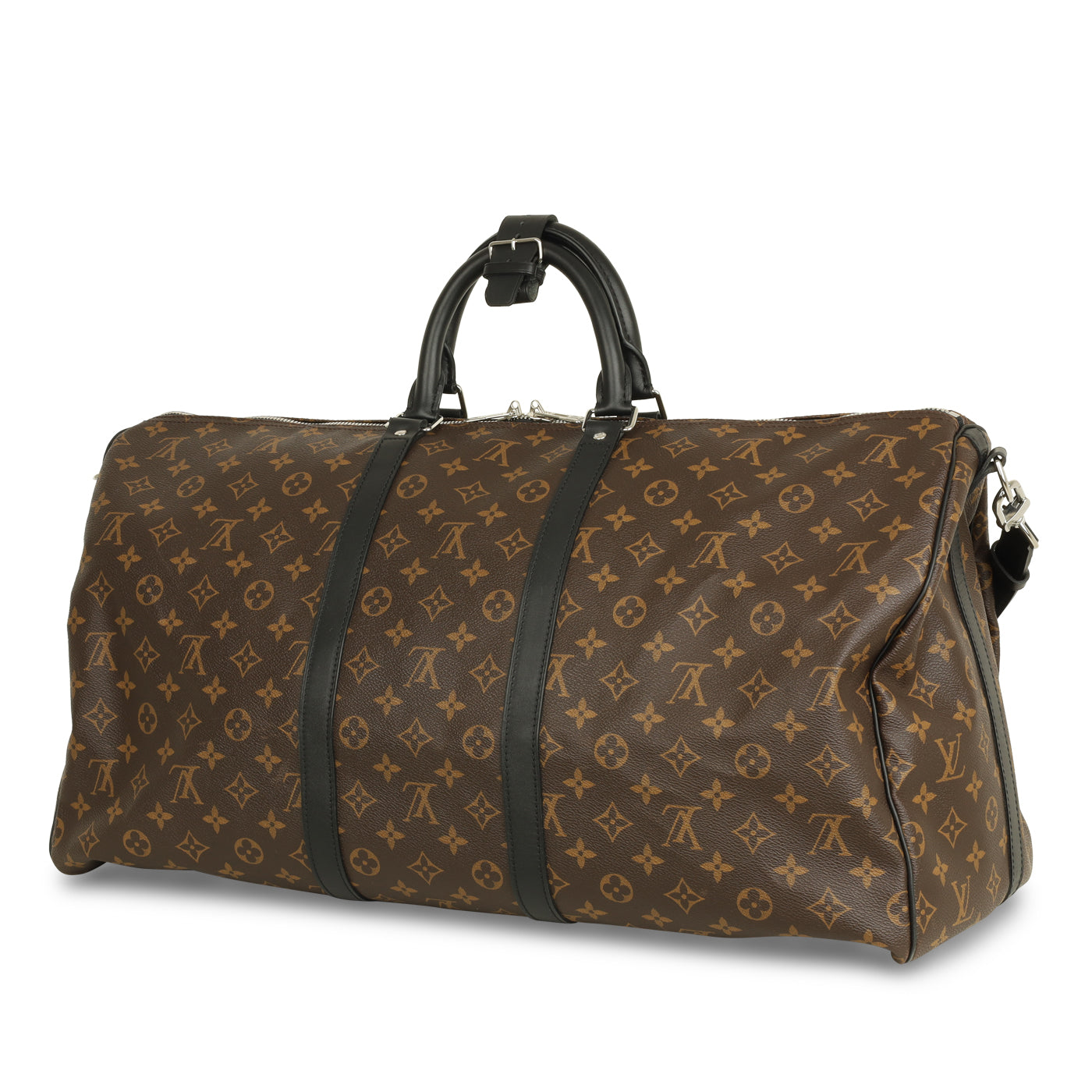 Louis Vuitton presents their signature Keepall bag, the perfect travel accessory for both men and women. Carefully crafted in the brand's iconic monogram canvas with black leather trimming, top handles, and shoulder strap, the Keepall is sleek and sophisticated. Large and spacious, making it easy to carry your whole world with you wherever you go, the Keepall is also extremely lightweight. It's the perfect travel companion and is a necessary addition to any luxury bag collection, especially luggage.