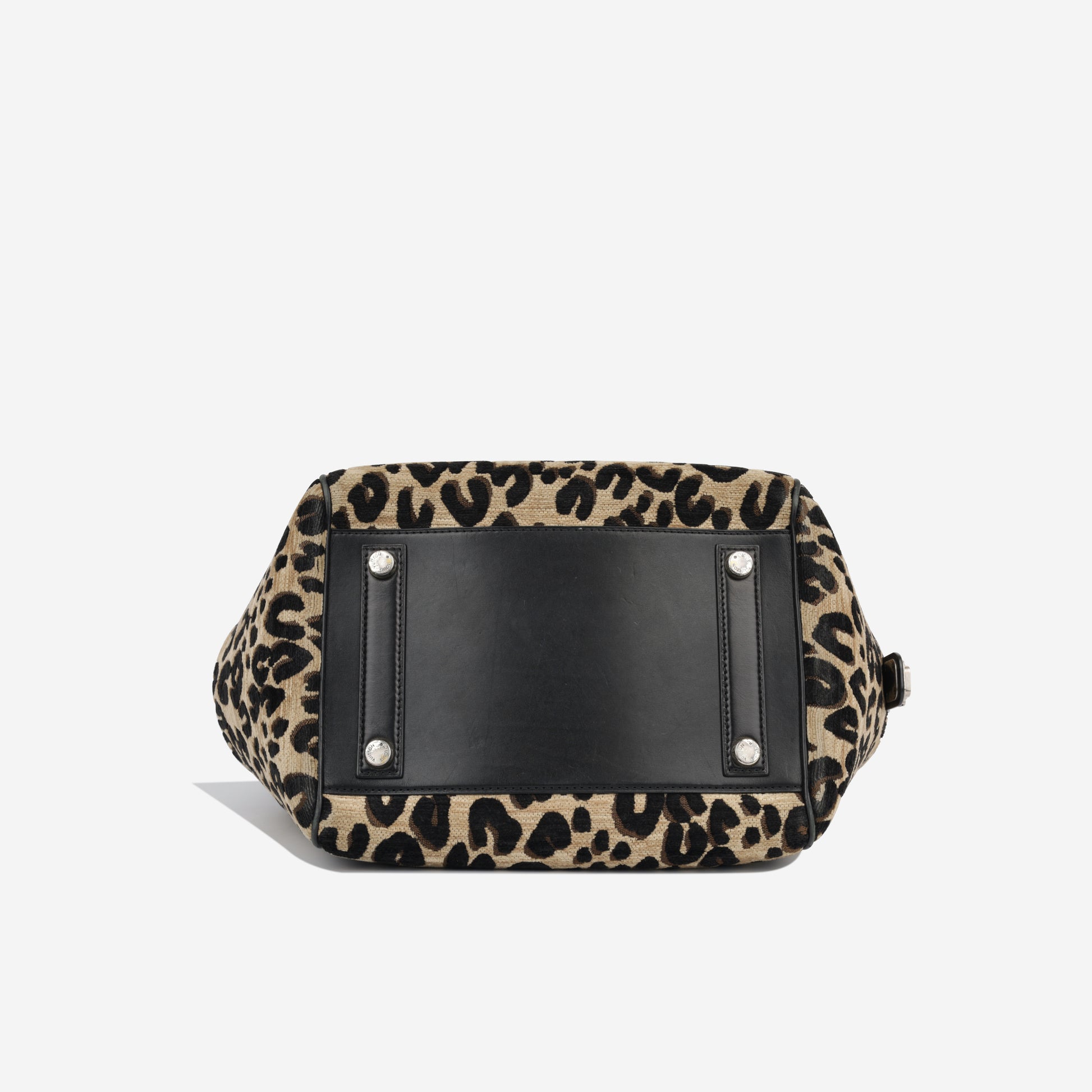 Launched in Autumn/Winter 2012, the North South satchel was designed in collaboration with Stephen Sprouse. The design is unique, featuring a structured shape, this bag is large enough to use even as an overnight bag, or a travel companion perfect for rushing to the airport. The exterior is crafted in textured leopard print fabric and detailed with black leather accents.
