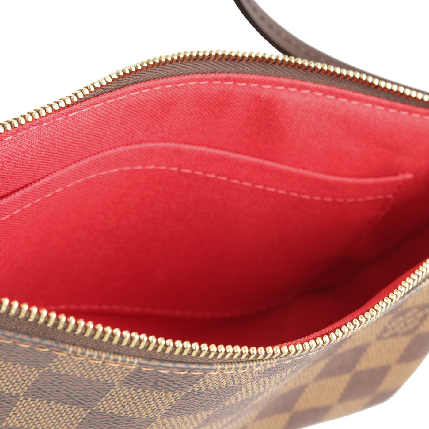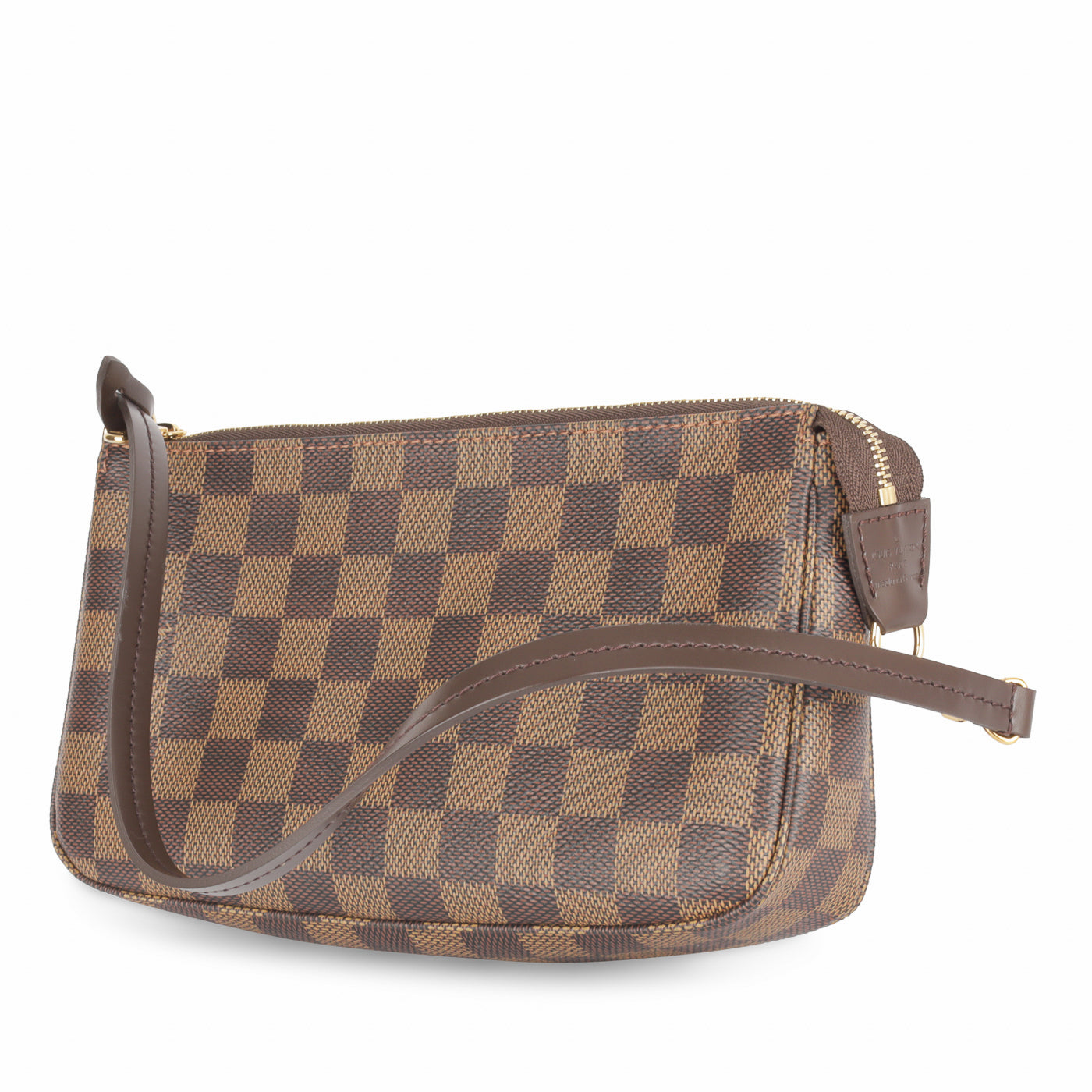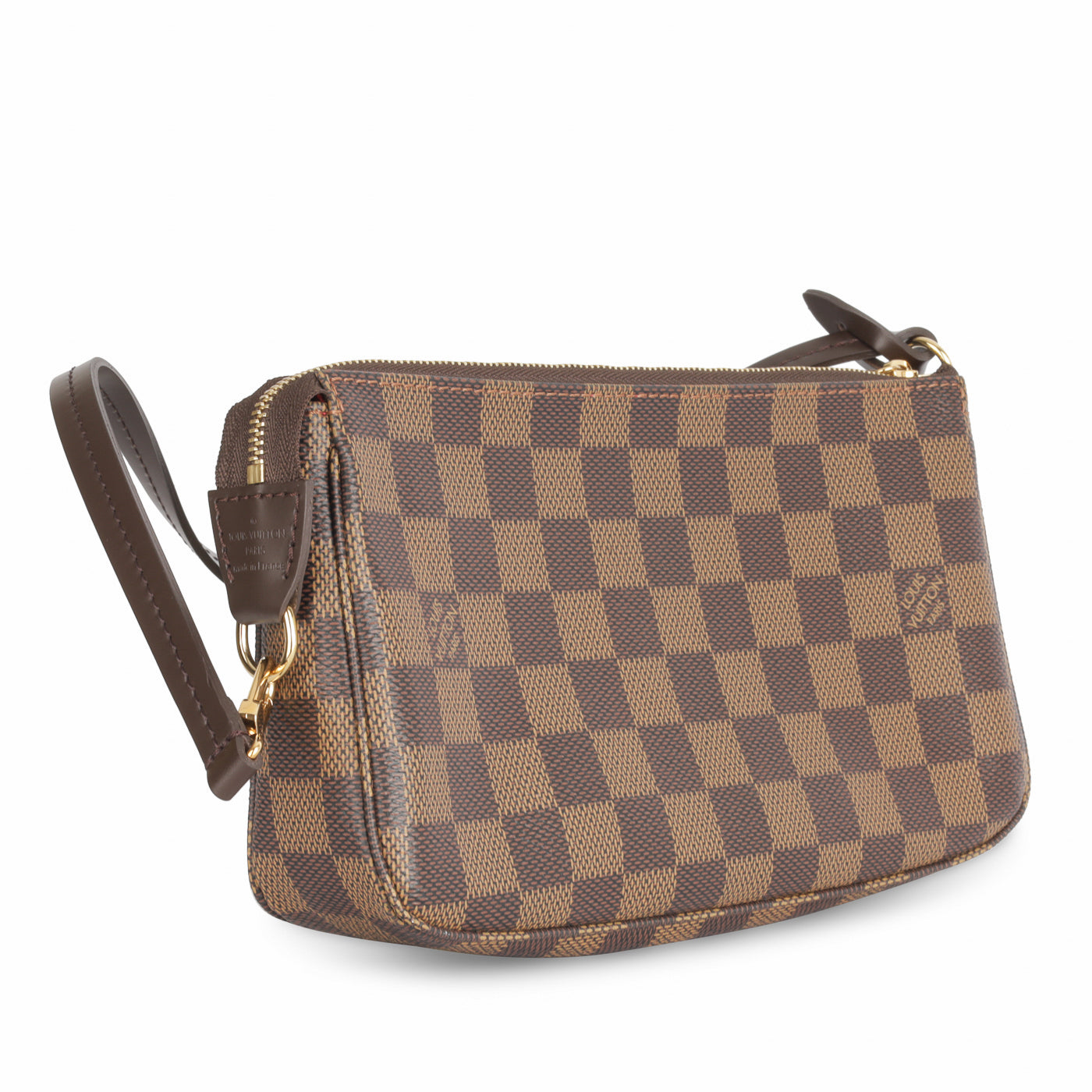 The Pochette is a petite accessory perfect to add to your Louis Vuitton day bag or simply wear it by itself if you only need a few items! The Pochette comes in the iconic Damier Ebene print. The leather strap that is attached as the top handle also detaches from one side, enabling you to hook it onto other accessories.