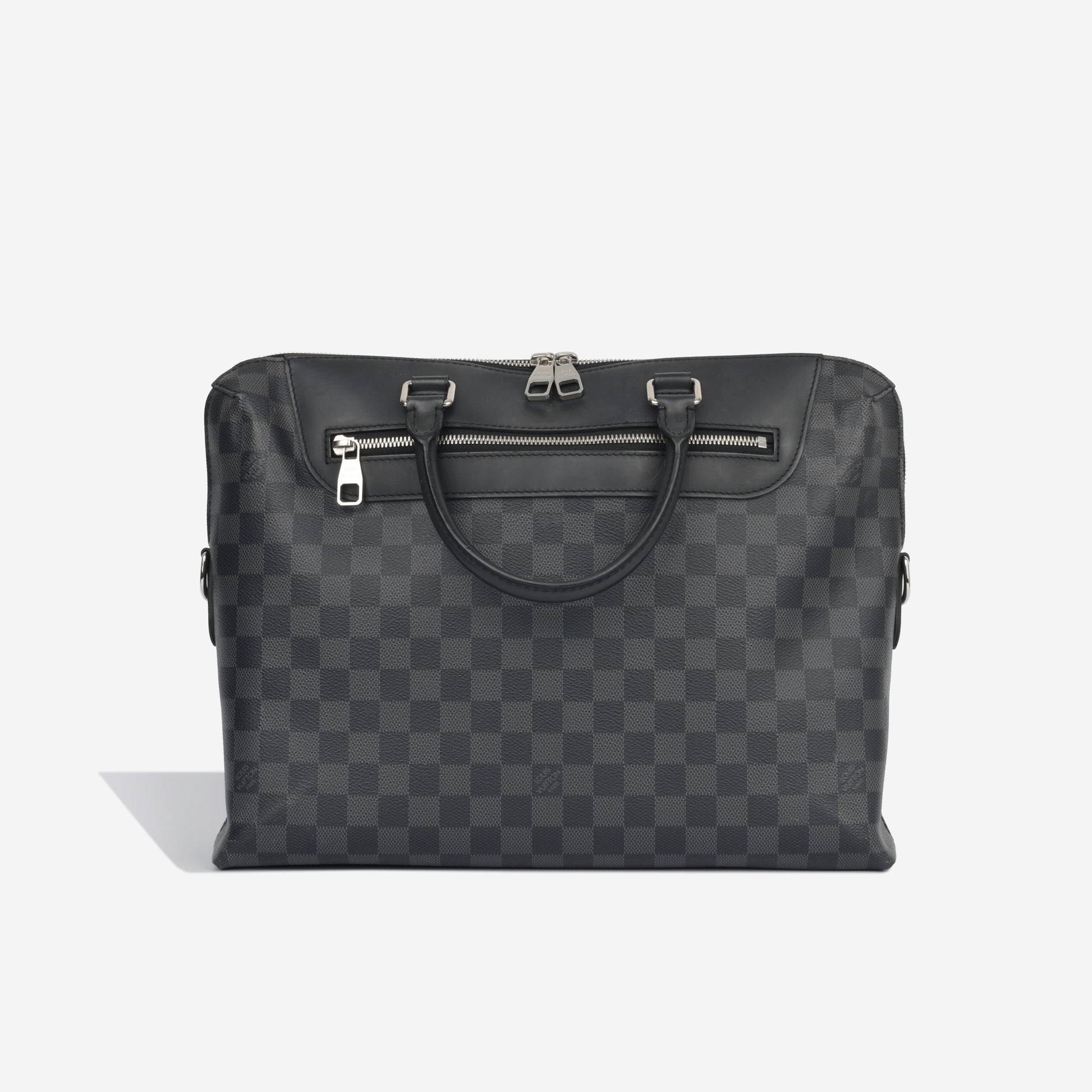 The Porte-Documents Jour briefcase from Louis Vuitton is excellent choice for the modern business person. The bag is crafted from the iconic Louis Vuitton Damier Graphite canvas and is further complemented with the sleek cowhide leather panel. The Porte Documents Jour features a generously spacious interior with a large storage compartment alongside five slip pockets, which all vary in size.