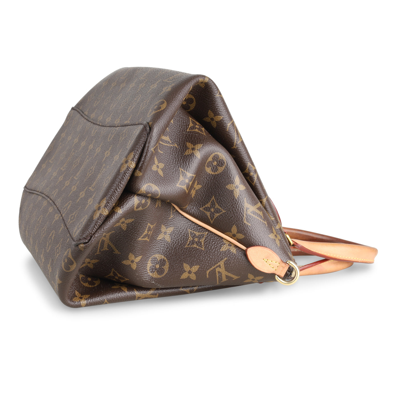 Released from the Summer 2019 collection, Louis Vuitton presented their Rivoli PM bag. Featuring their iconic monogram canvas, beige leather top handles and pleat detail, the Rivoli is the ideal every-day bag. With its structured silhouette and timeless appearance, this piece can be worn with any casual outfit.