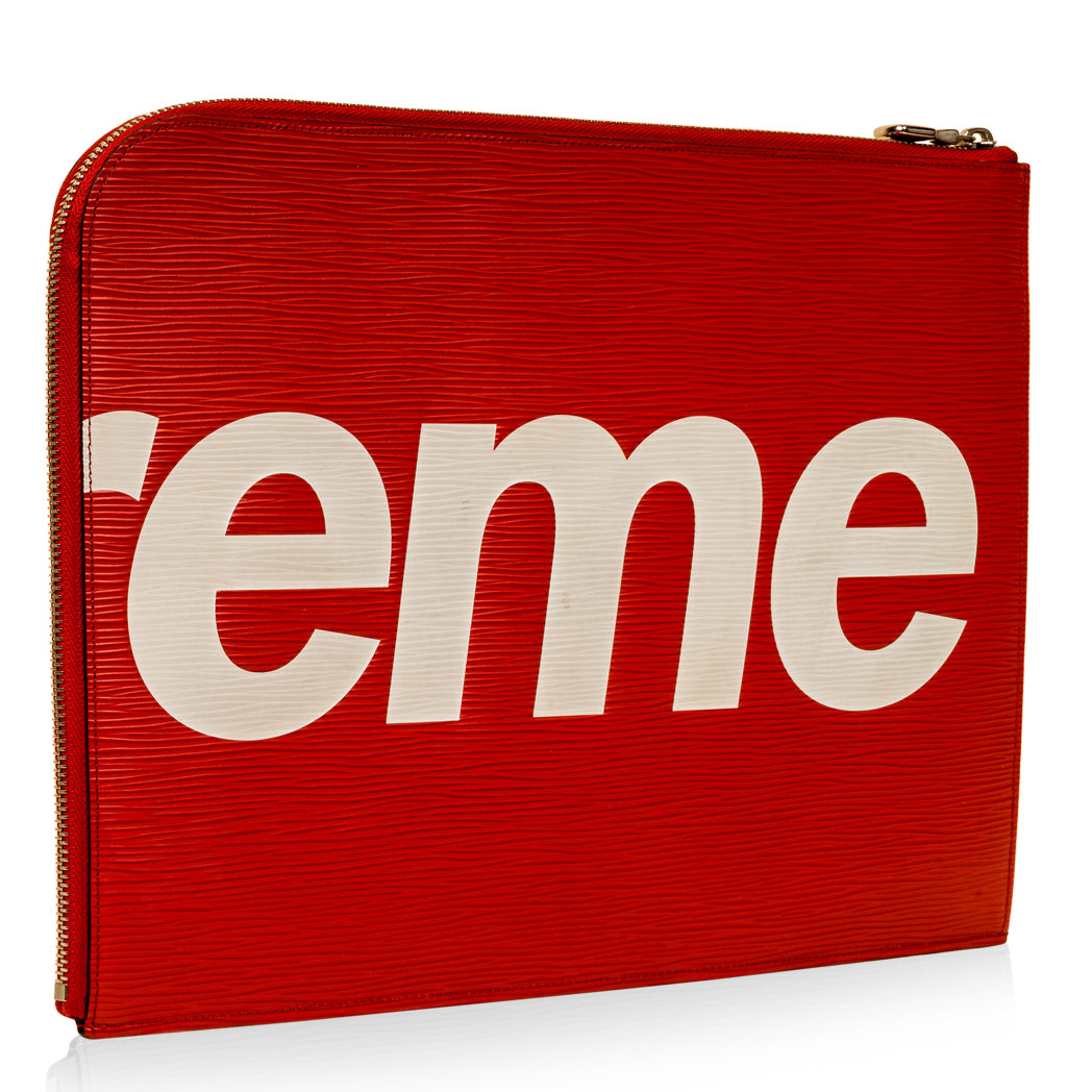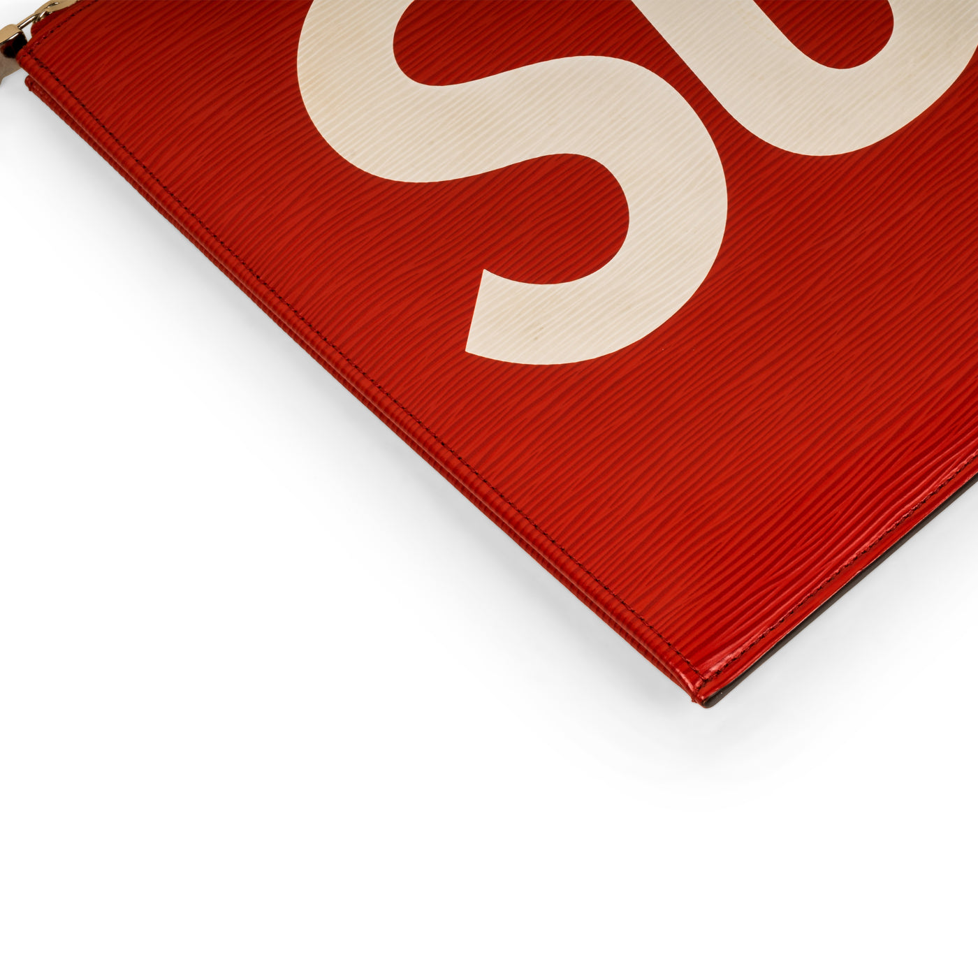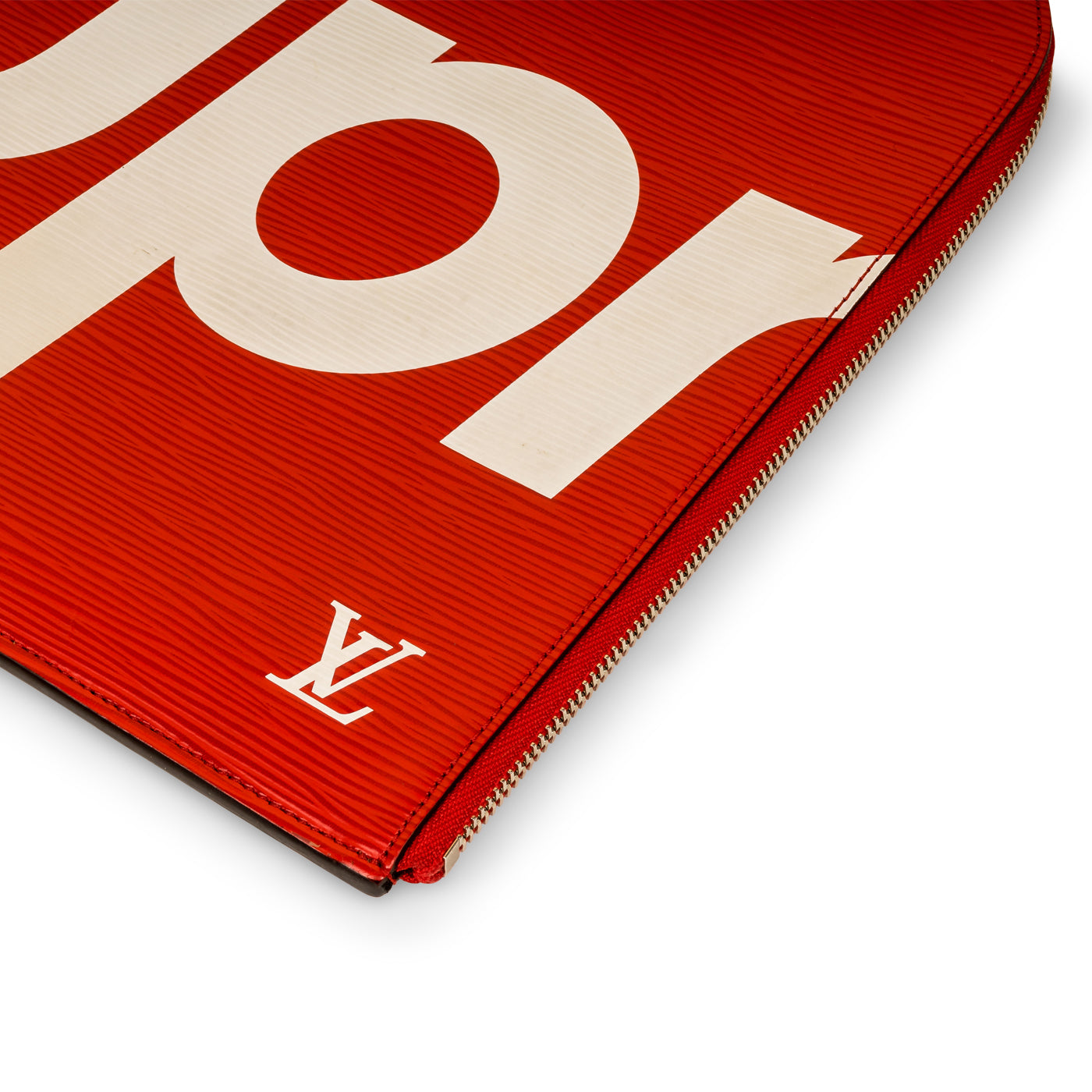 The perfect balance between fashion and function, Louis Vuitton and Supreme presents their limited edition Pochette Jour. Use this as a pouch or laptop case, you'll be sure to stand out wherever you go. Featuring Louis Vuitton’s Epi leather in bright red and a bold, enlarged Supreme logo. The Louis Vuitton and Supreme collaboration features a wide array of leather goods, debuted at Louis Vuittons 2017 menswear show in Paris. For the workaholic, it’s the perfect companion and a true must have for any individual on the go.