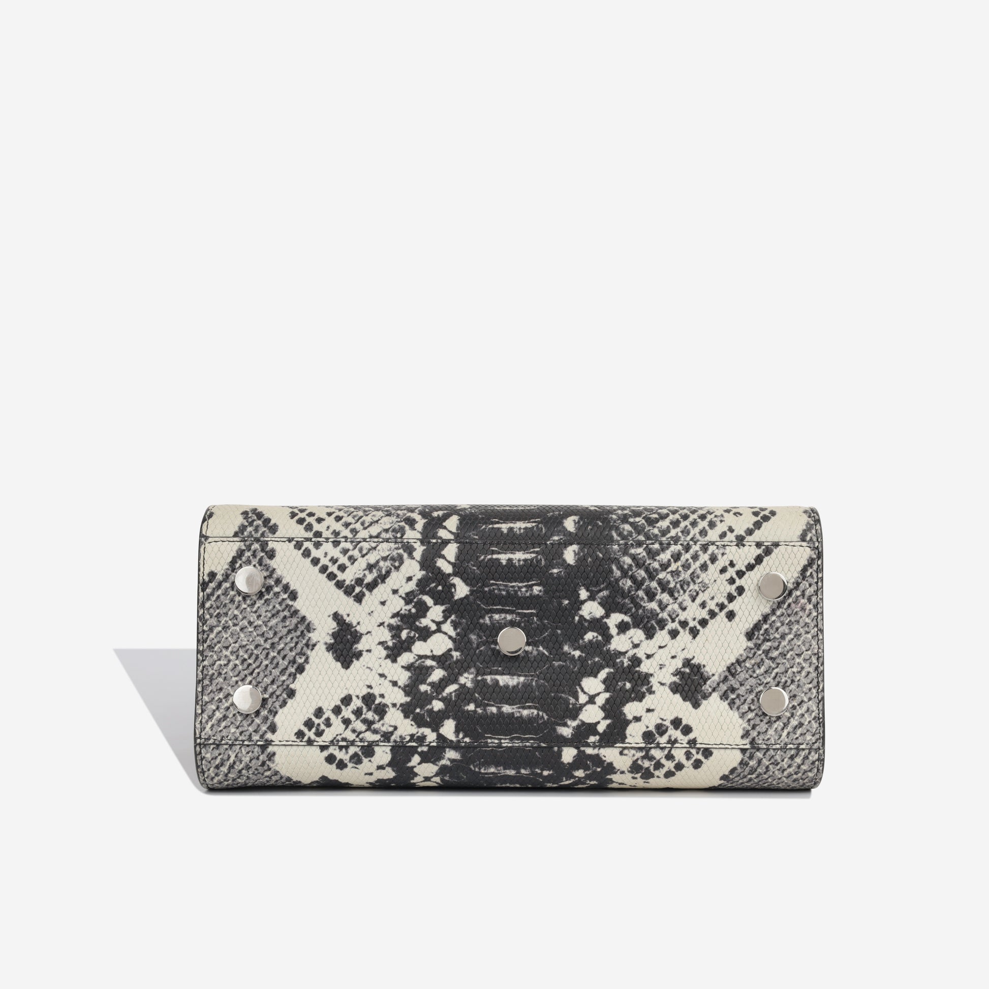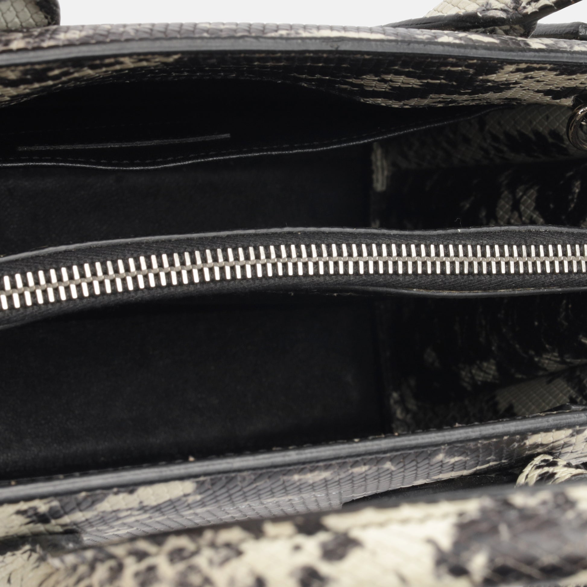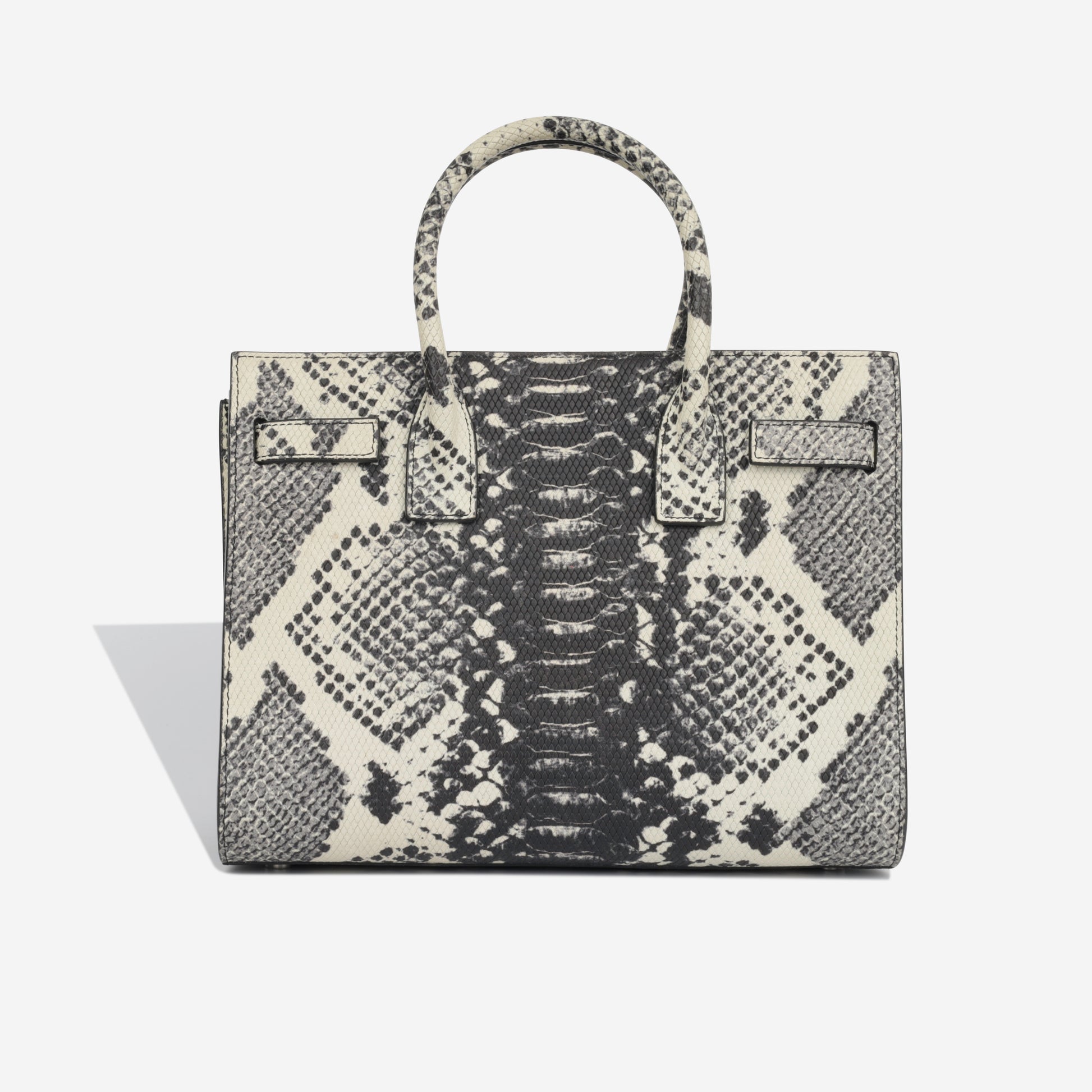 Widely renowned for its contemporary take on traditionally understated glamour, Saint Laurent brings us this baby version of the much celebrated sac du jour – falling between the Mini and Small sizes available. This tote is full of character with its python embossed leather and adornment of silver toned hardware. Its interior holds multiple storage compartments and is lined in leather. Style this bag with your favourite day outfit or detach its shoulder strap to create a casual evening look.