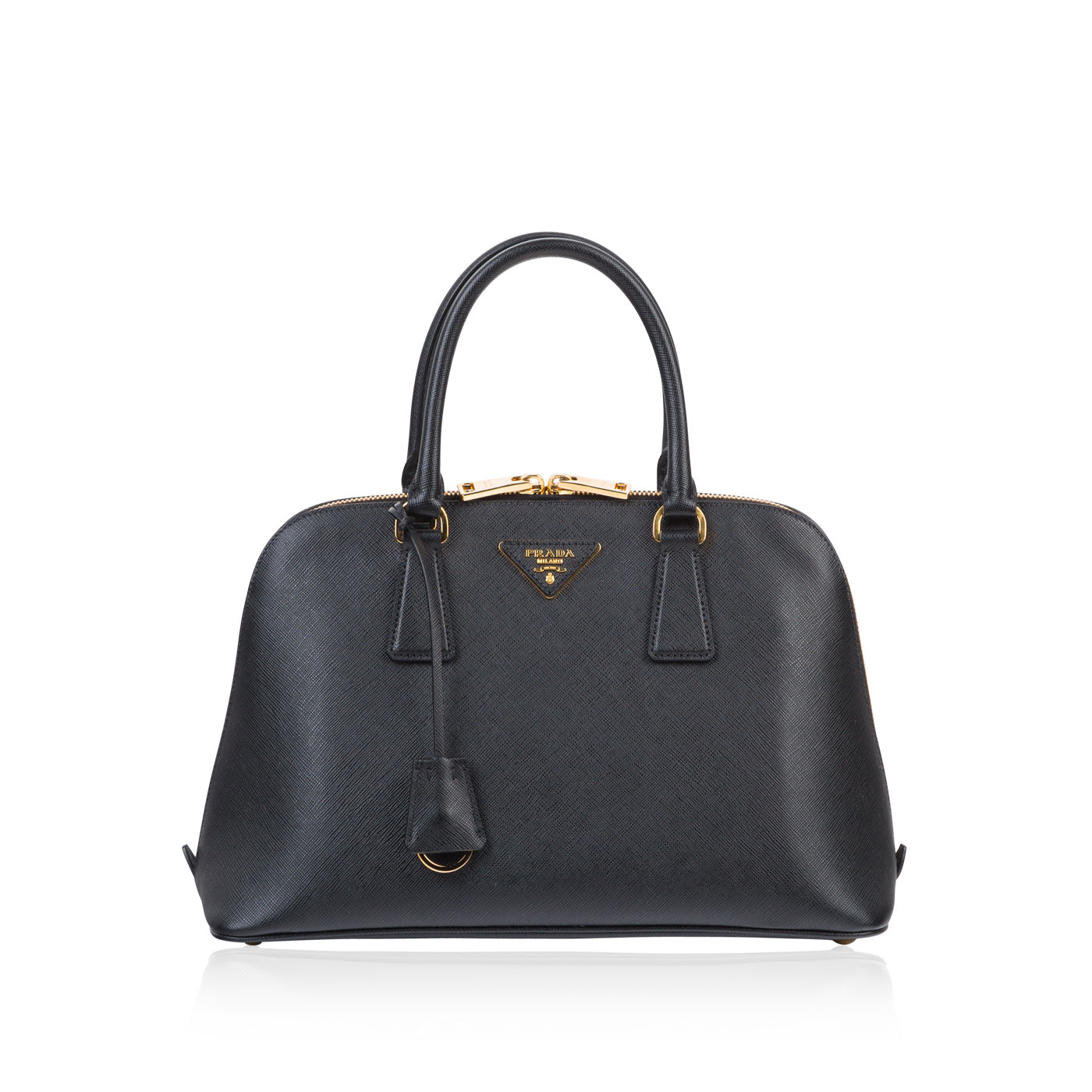 - Metal lettering Prada logo on leather triangle