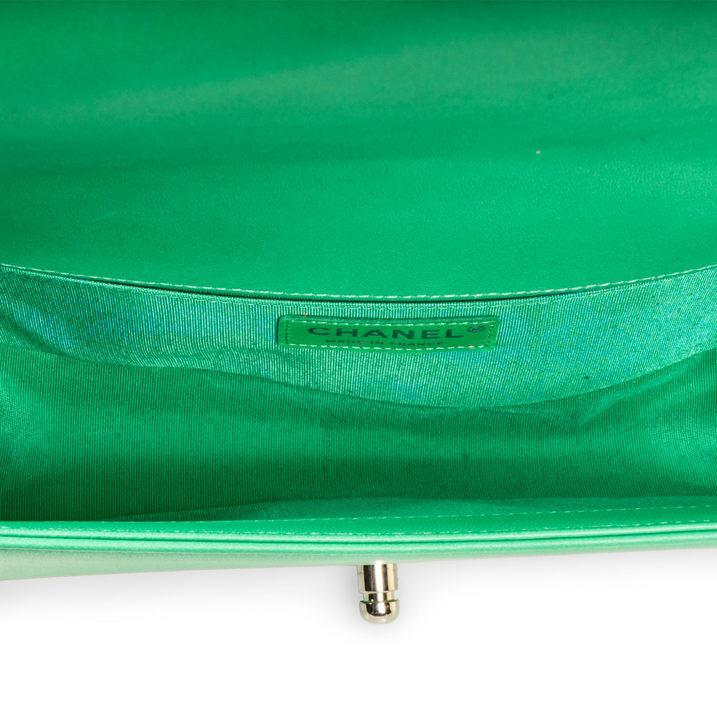 - Green grosgrain lining