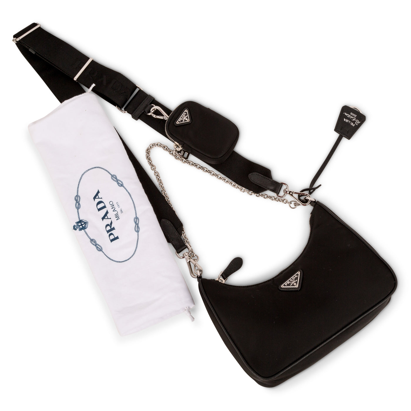 The bag on everyones wishlist, the 2005 Re-edition Crossbody bag from Prada is the ultimate It-Bag currently seen on every It-Girl. Carefully crafted the brand’s signature nylon exterior, the Re-edition is one of the coolest bags we’ve seen. Featuring a main zip-top pochette, a matching logo-embossed fabric strap and an additional mini rectangular pochette attached to the strap, this effortlessly chic bag is truly a must-have for any and every women with a love for luxury and hot products. Worn by every fashion enthusiast, influencer and model. Remove the mini Pochette and wear it on its own with its delicate chain strap, or wear it attached to the larger, fabric shoulder strap for a more contemporary look. A bag that belongs in your wardrobe, the Re-edition is the perfect combination of timeless tradition and modern edge - and we can’t get enough!