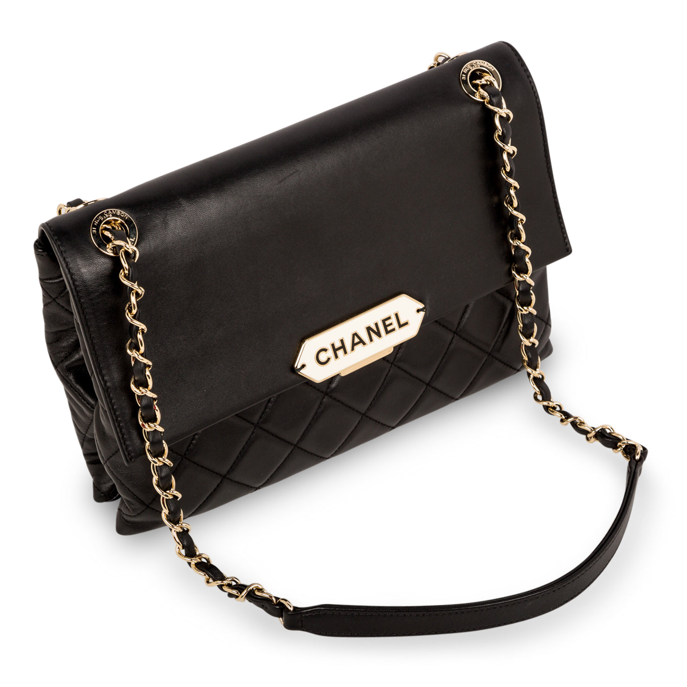 - Chanel embossed leather logo