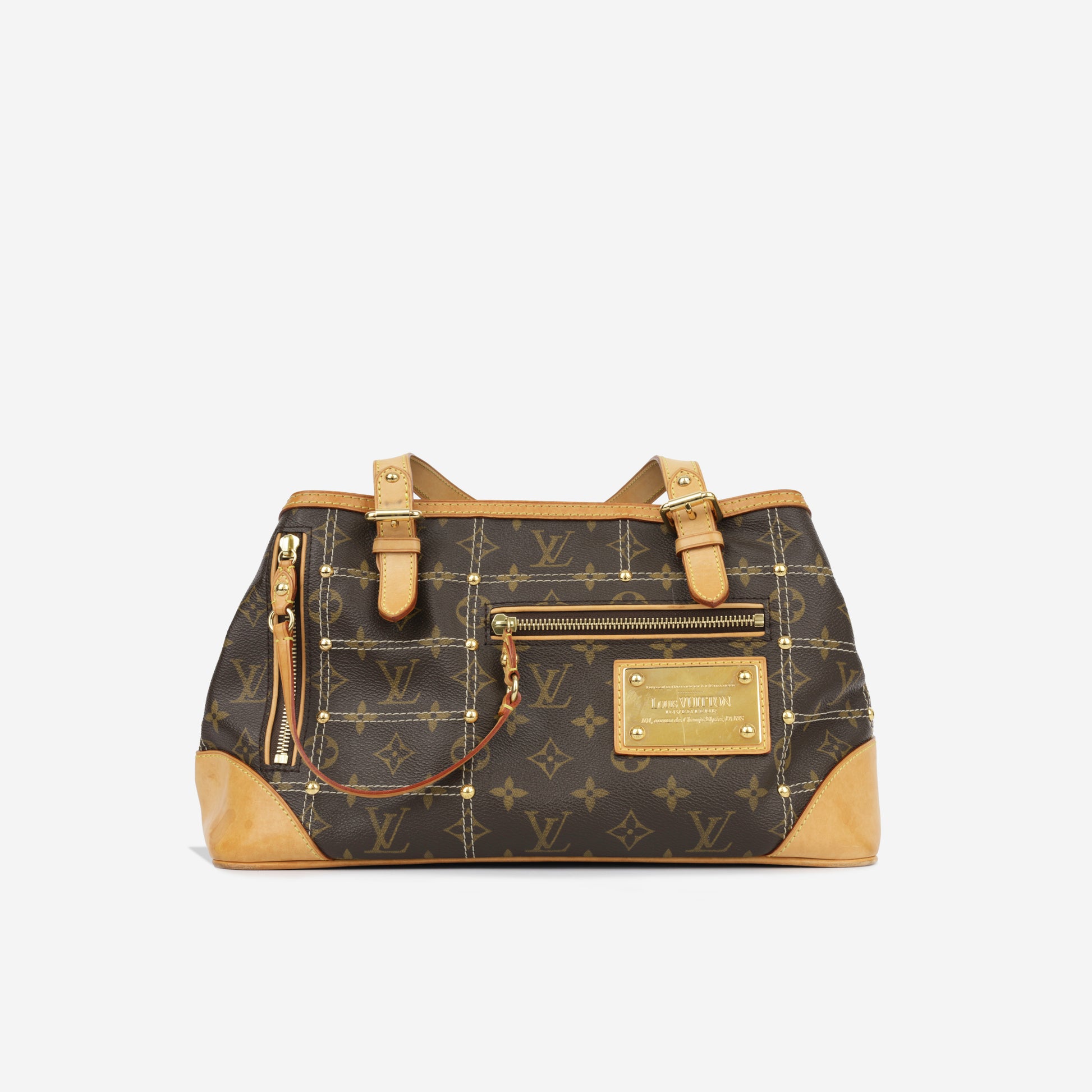 Crafted from signature monogram canvas. The sac riveting carries a very clever and stylish design in the details. It features with three compartments, two with magnetic closure and a main zip-enclosed interiors. With its sloouch silhouette and timeless appearance, this piece can be worn with any casual outfit.