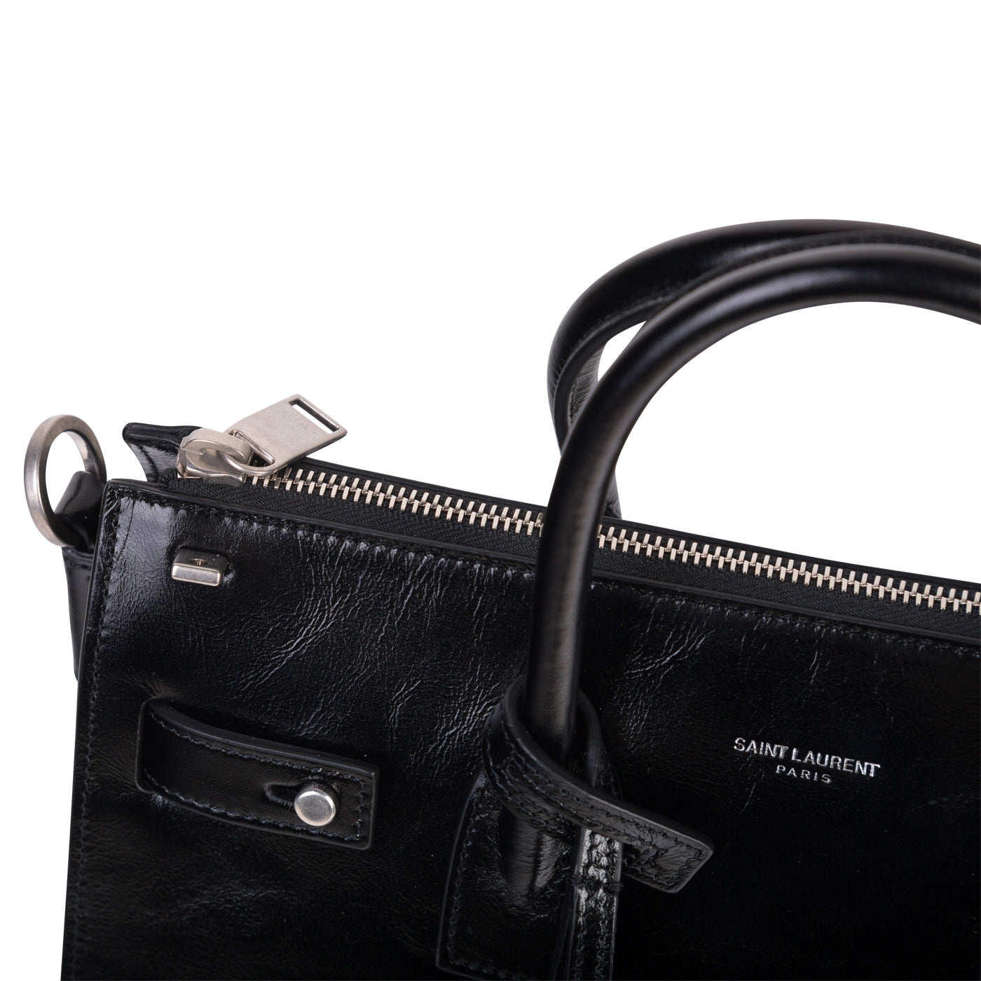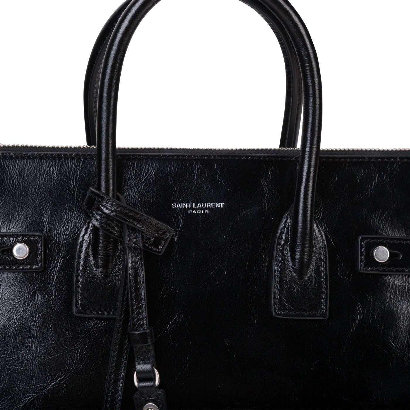 - Embossed Saint Laurent logo in silver