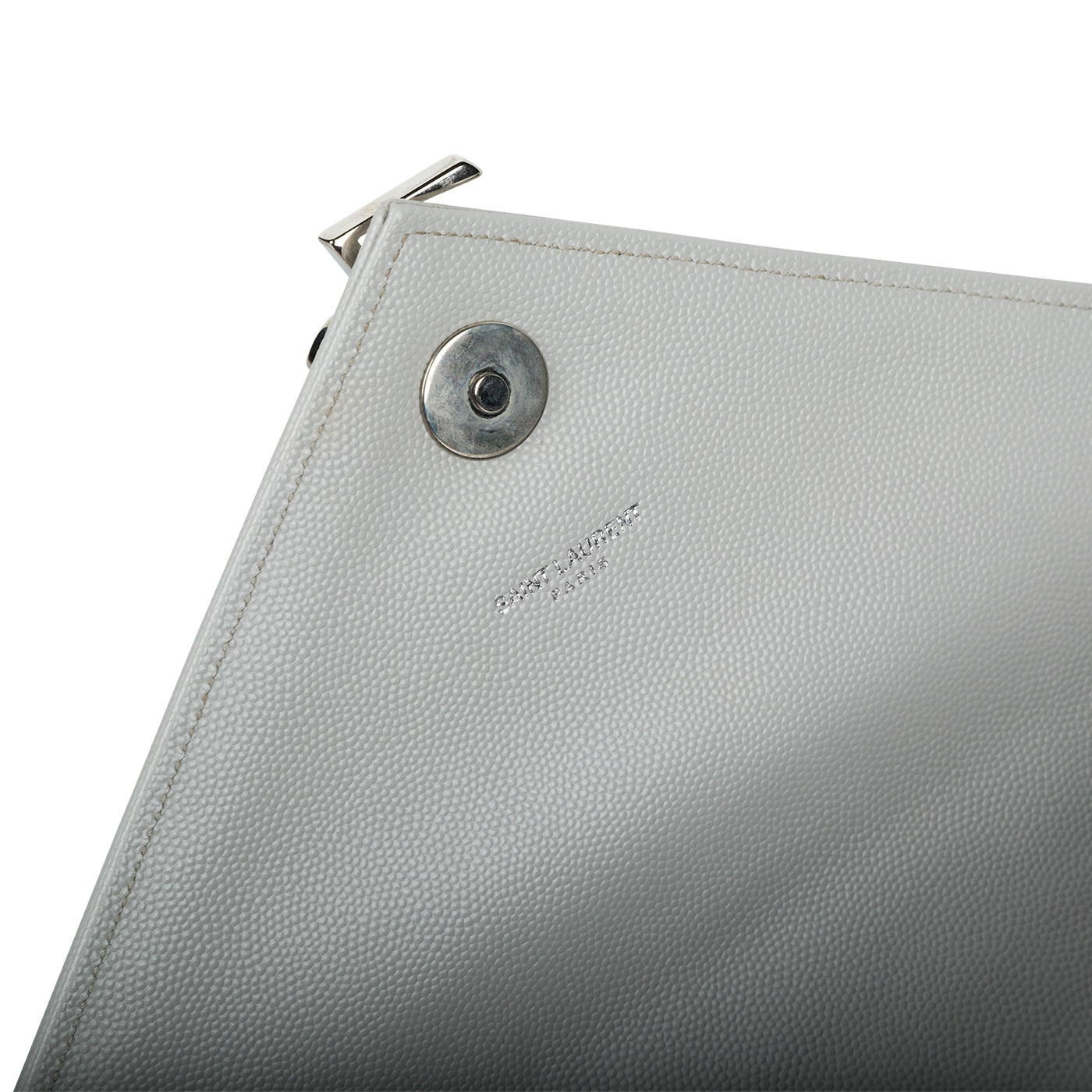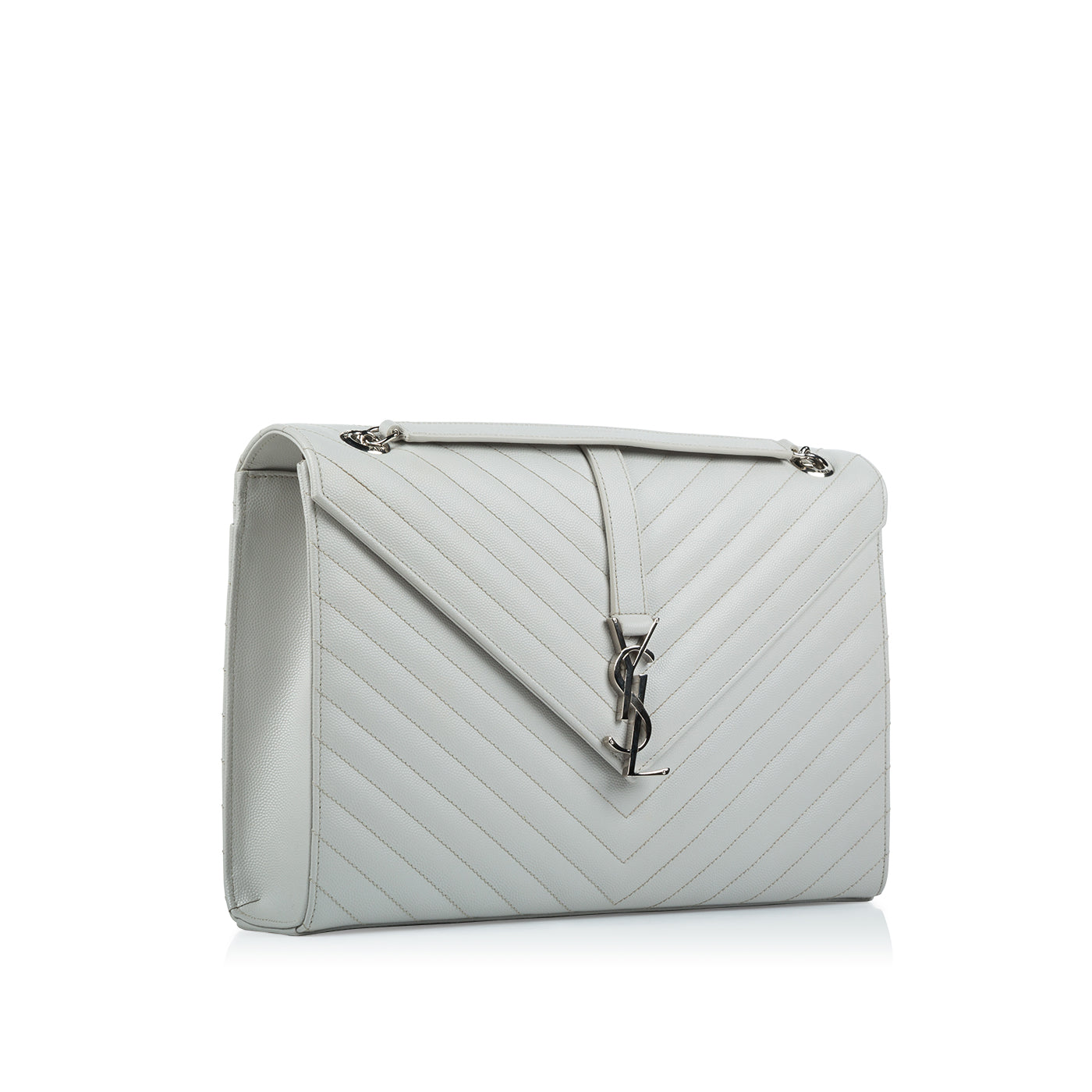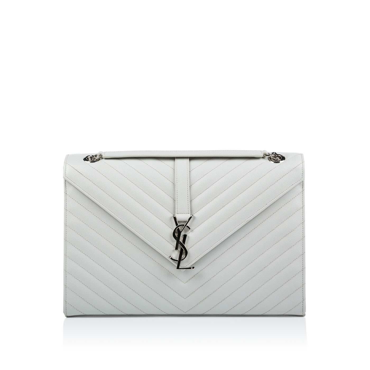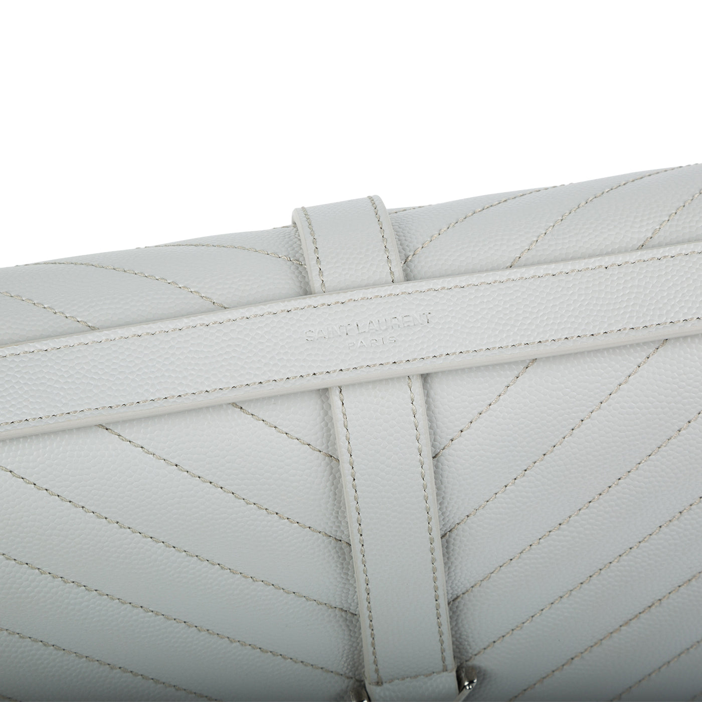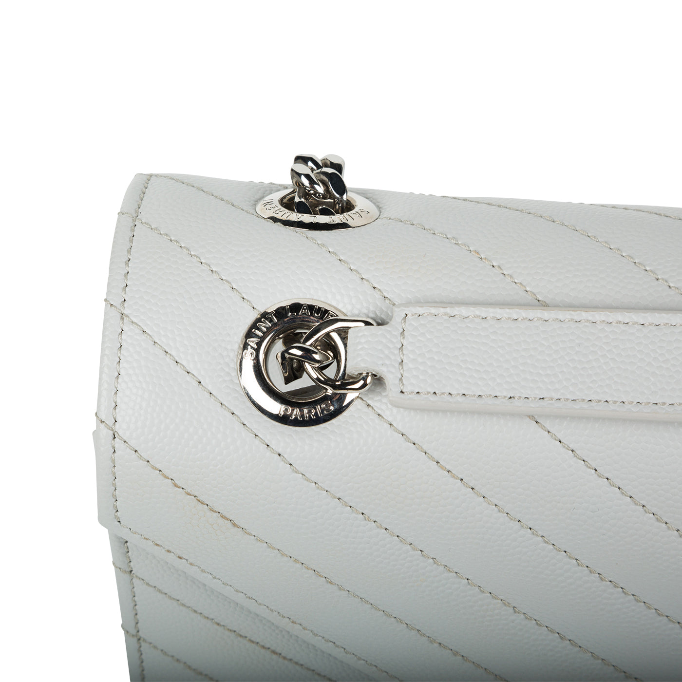 Yves Saint Laurent’s vision takes on a modern slant with collections that pay homage to the French label’s founding princes of youth and freedom. Under the helm of Anthony Vaccarello, the French fashion house introduced the envelope chain wallet during the during the release of their AW 2017 collection. Widely famed for its enviable silhouette and its assortment of sizes, the Saint Laurent Monogram Envelope chain wallet in silver is a highly-sought after piece. The handbags exudes sophistication throughout, from its matelassé leather to its gilded chain strap and large YSL logo plaque and grosgrain lining. The bag features a spacious interior with a single large storage compartment and slip pocket.