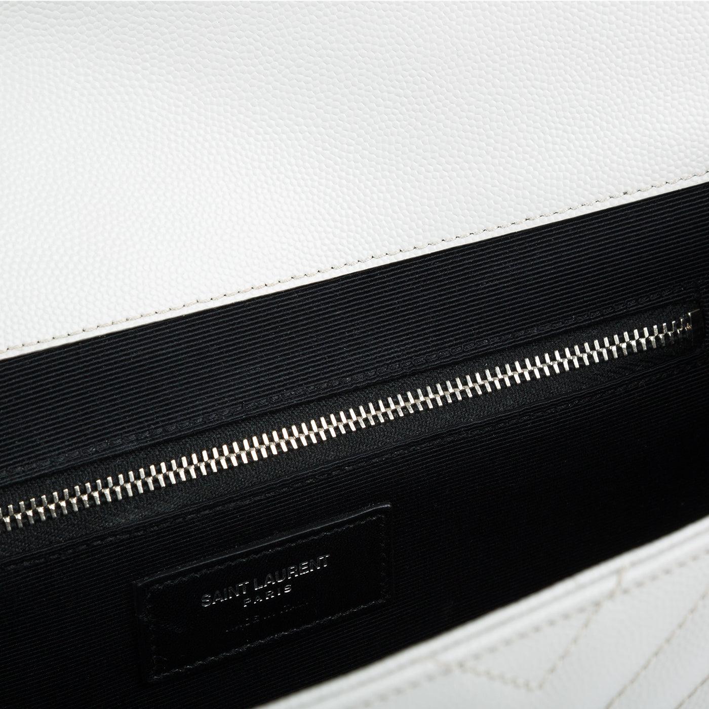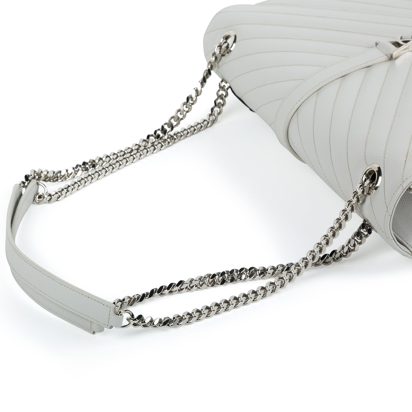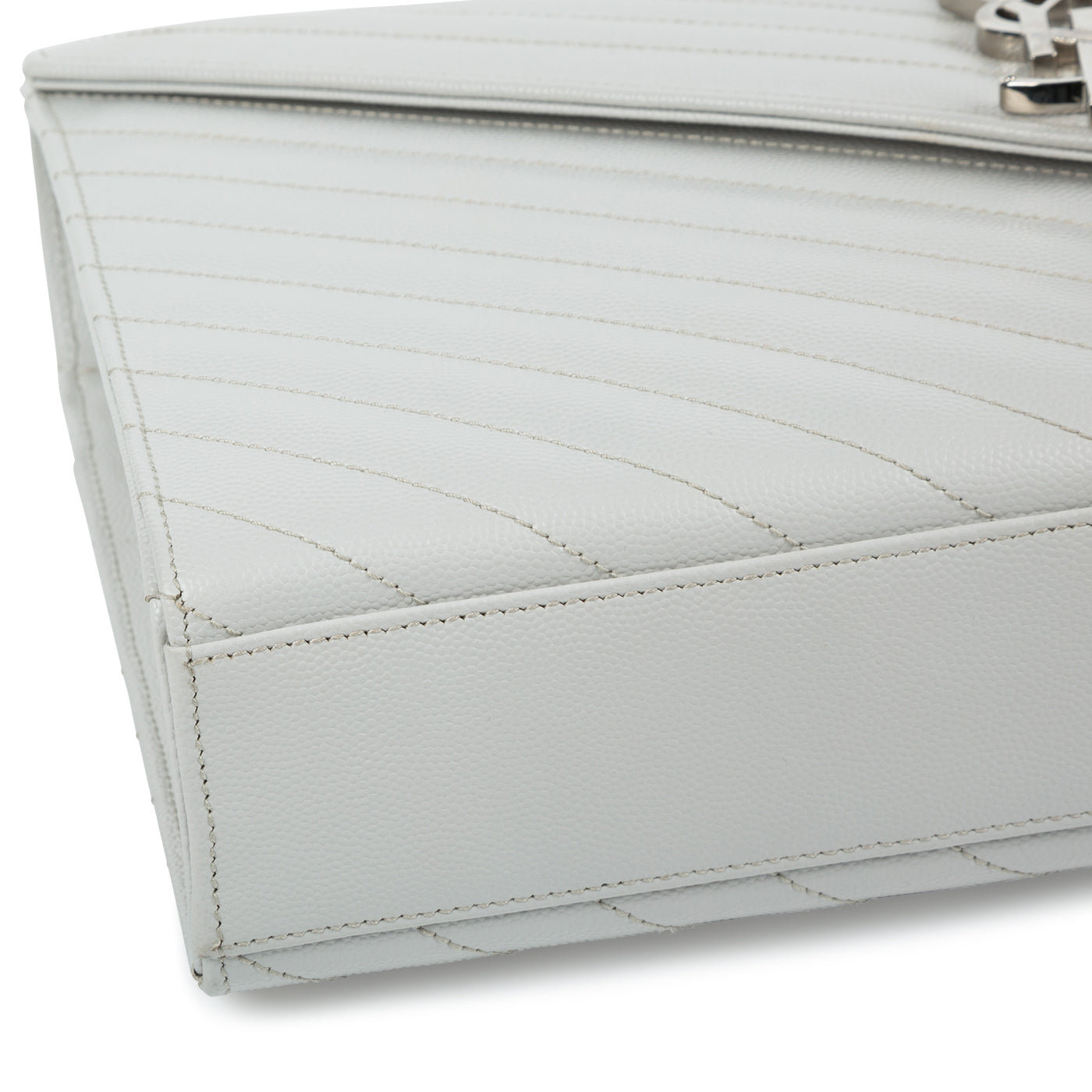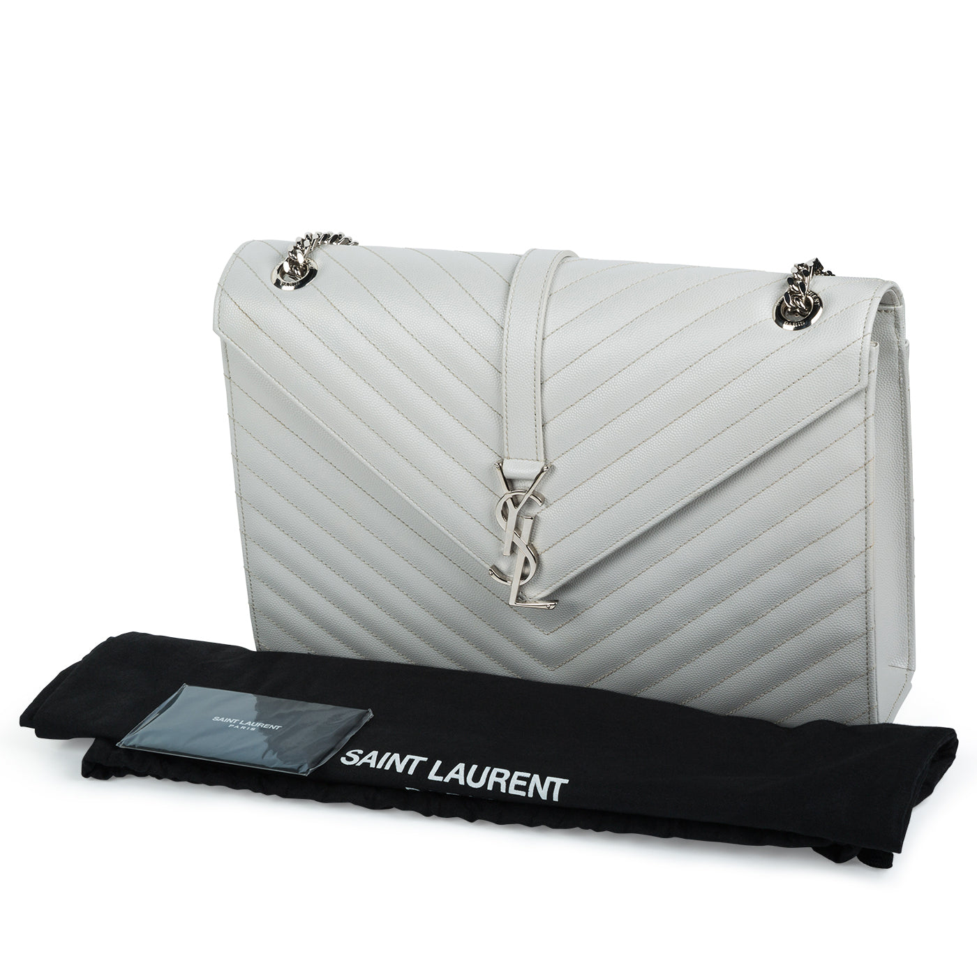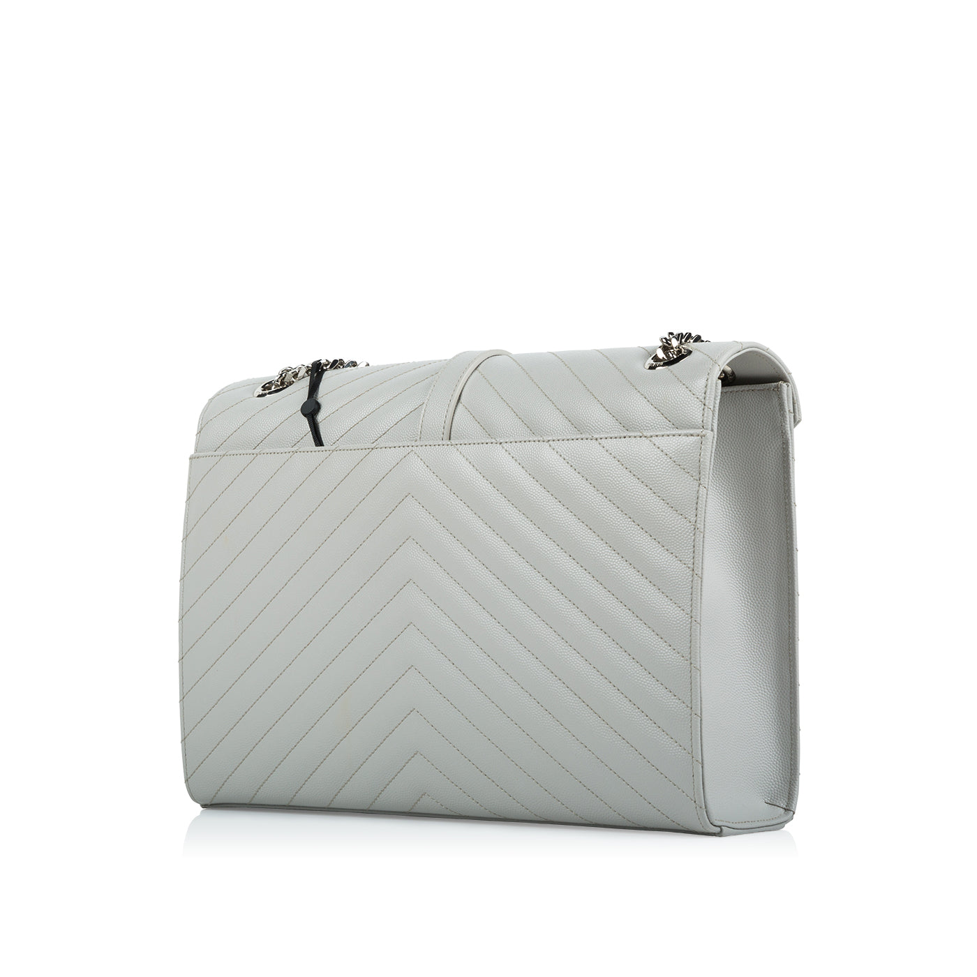 Yves Saint Laurent’s vision takes on a modern slant with collections that pay homage to the French label’s founding princes of youth and freedom. Under the helm of Anthony Vaccarello, the French fashion house introduced the envelope chain wallet during the during the release of their AW 2017 collection. Widely famed for its enviable silhouette and its assortment of sizes, the Saint Laurent Monogram Envelope chain wallet in silver is a highly-sought after piece. The handbags exudes sophistication throughout, from its matelassé leather to its gilded chain strap and large YSL logo plaque and grosgrain lining. The bag features a spacious interior with a single large storage compartment and slip pocket.