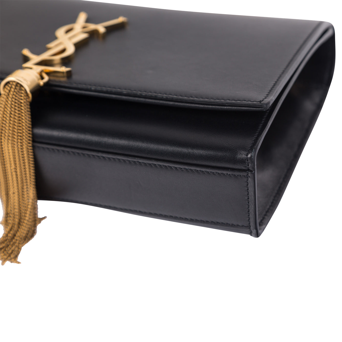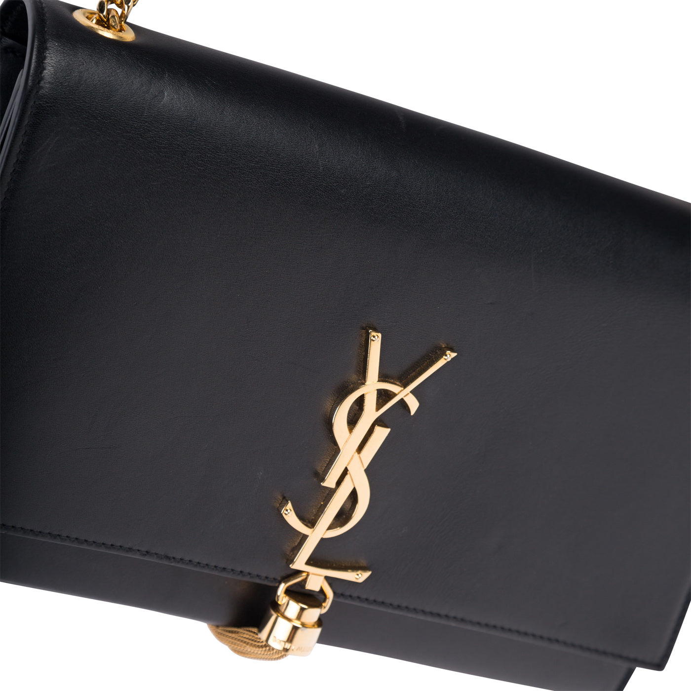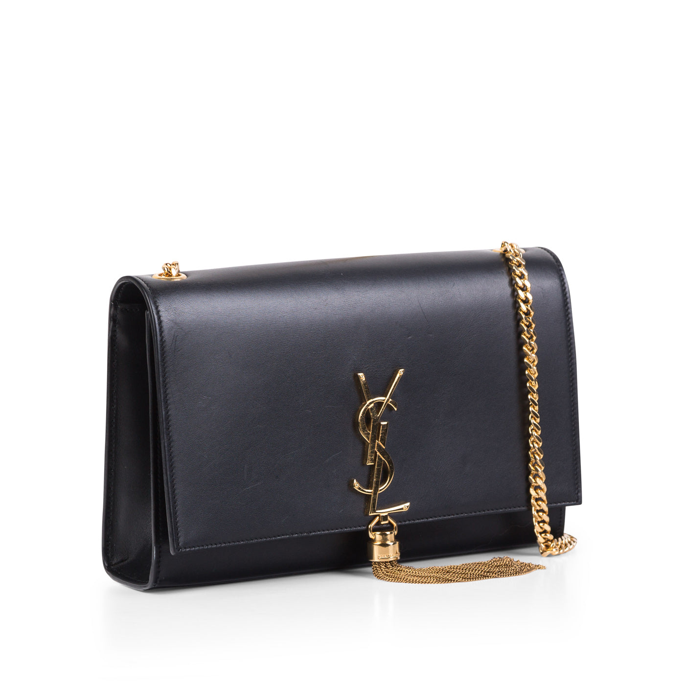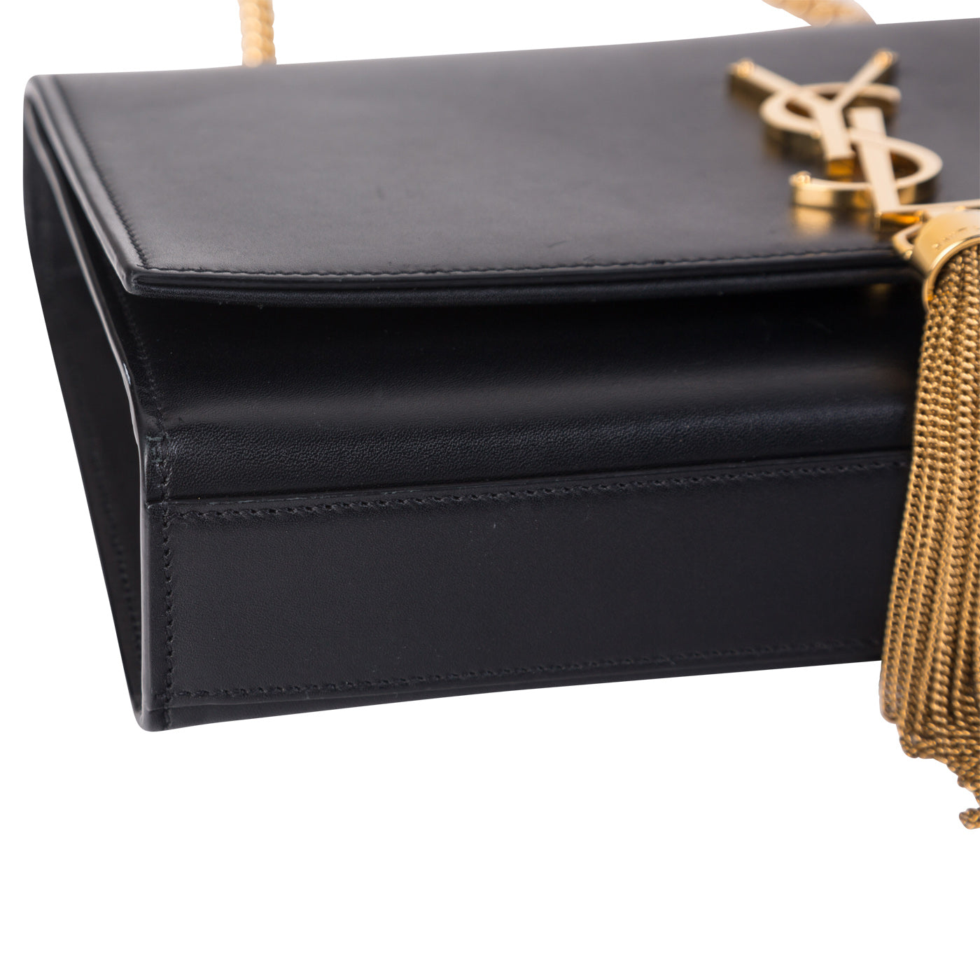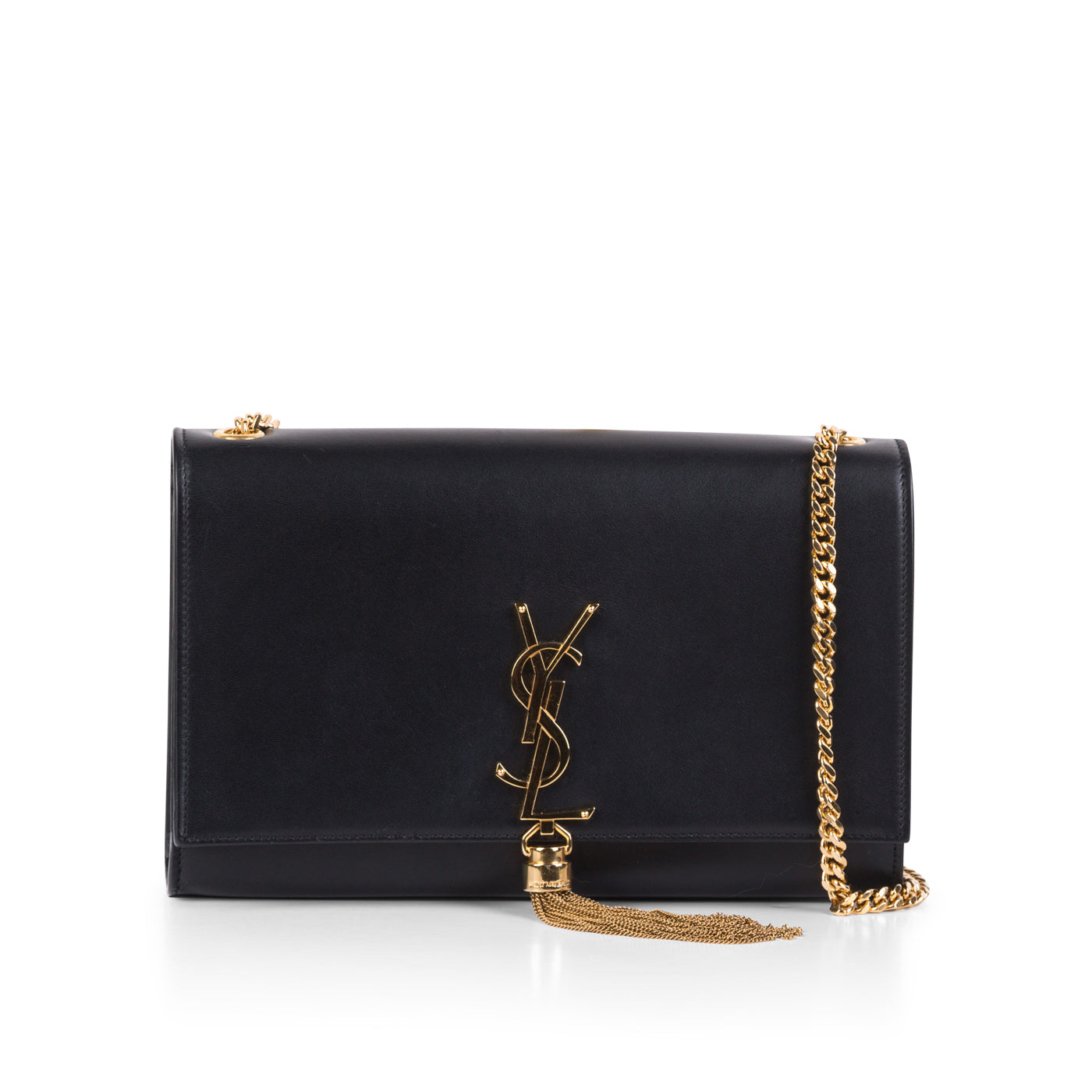 The Kate Tassel bag is one of the most recognised and iconic bags from Saint Laurent, and for good reason due to the fact that it checks the three S's - sleek, stylish, and sophisticated. This bag can be worn from day-to-night and is the perfect accessory for any occasion. With its smooth, black leather, complimented by a romantic, gold-tone YSL logo and tassel, you can comfortably carry all your small every day essentials in style. The Kate Tassel is the perfect bag for a glamorous woman on the go - who exudes elegance and class, but wants to add a modern touch to her looks.