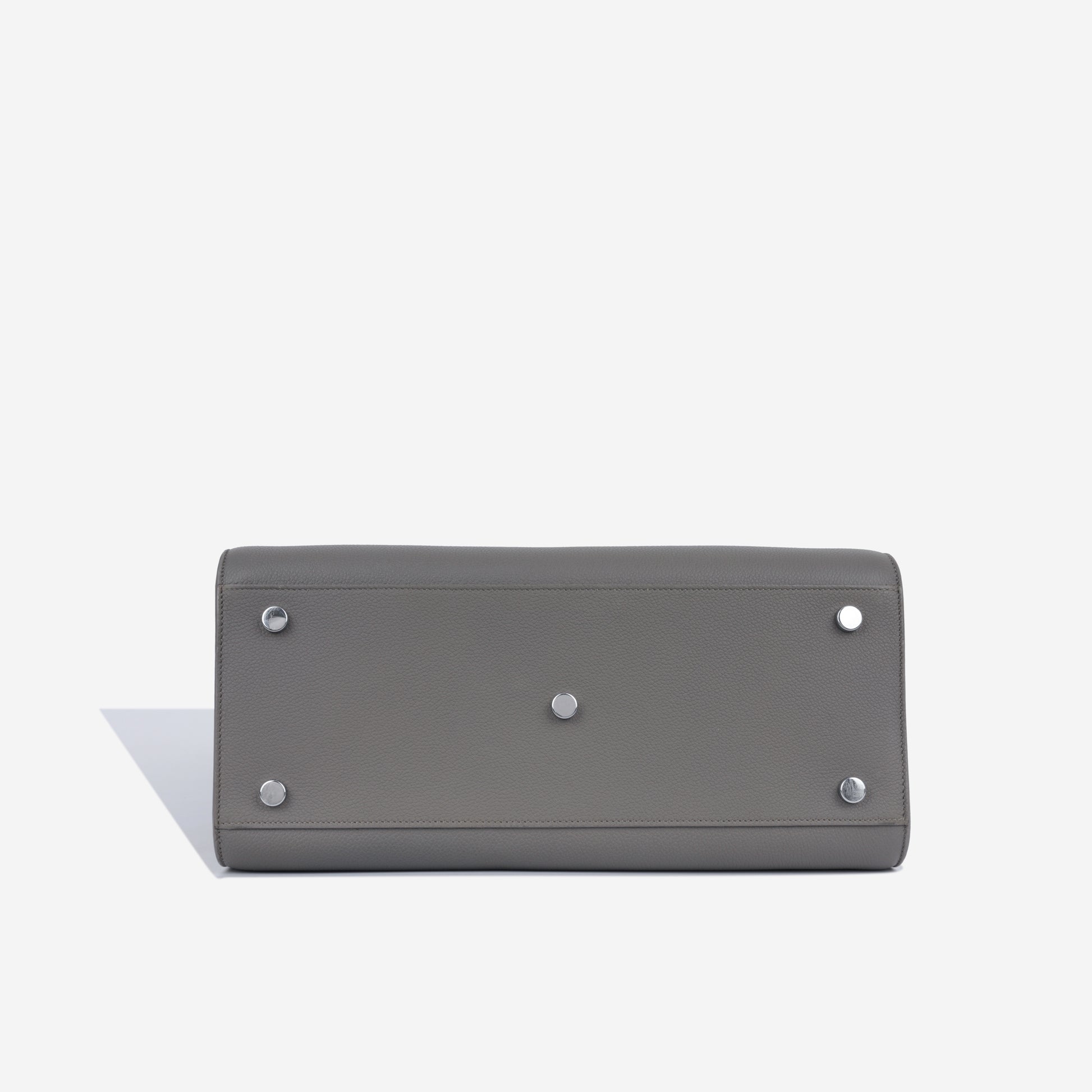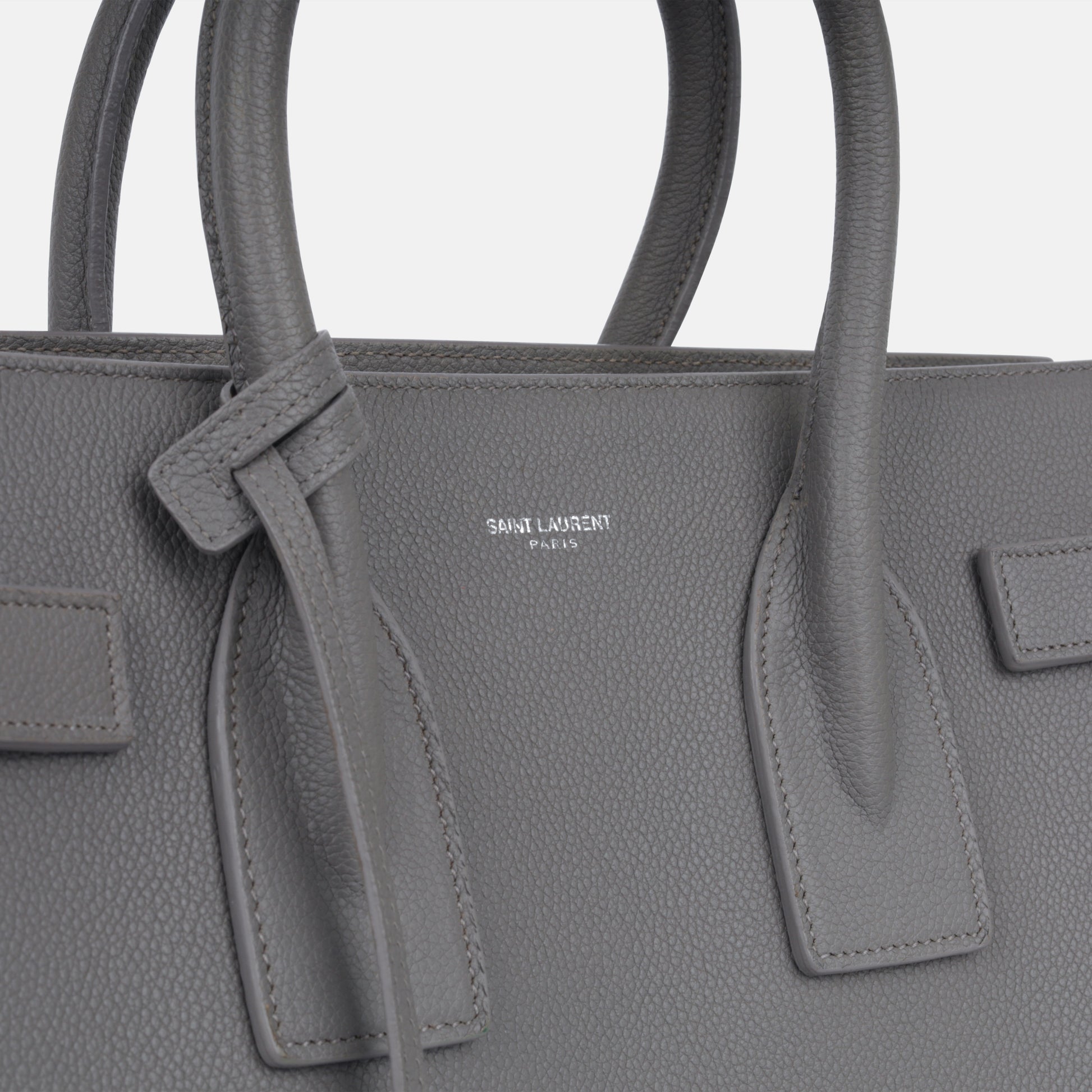 - Grey grained calfskin leather
