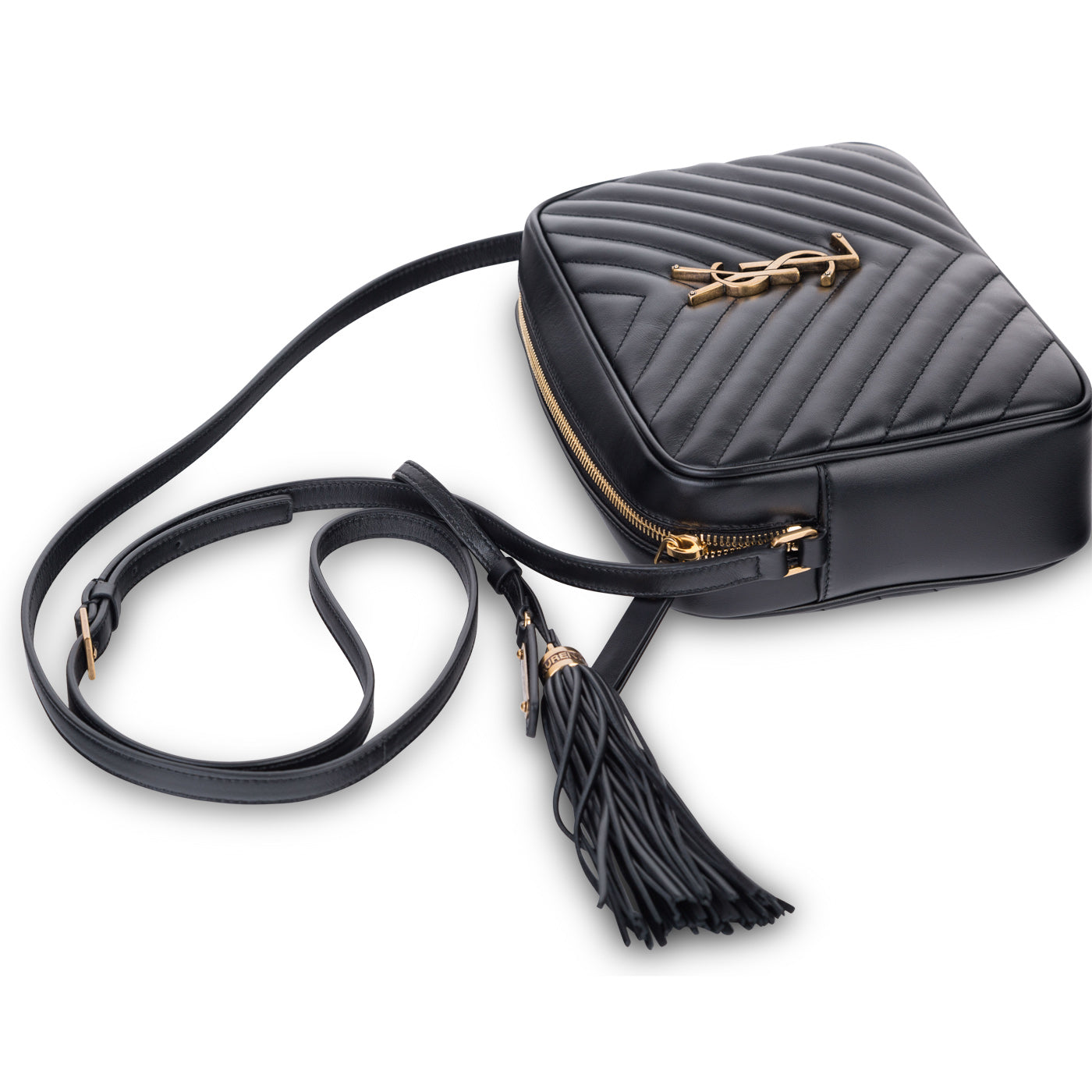 The Lou Camera in small is a classic cross body and shoulder bag. Accessorised with a removable leather tassel, the Lou Camera is perfect for daytime casual use – a great bag to grab on the go. With quilted calfskin leather, Saint Laurent have crafted it for a softer touch and perfect alignment. This Saint Laurent comes with the iconic YSL intertwined logo. Look effortlessly chic with Saint Laurent these winter months wearing your coat, leggings, trainers, and a woollen scarf.