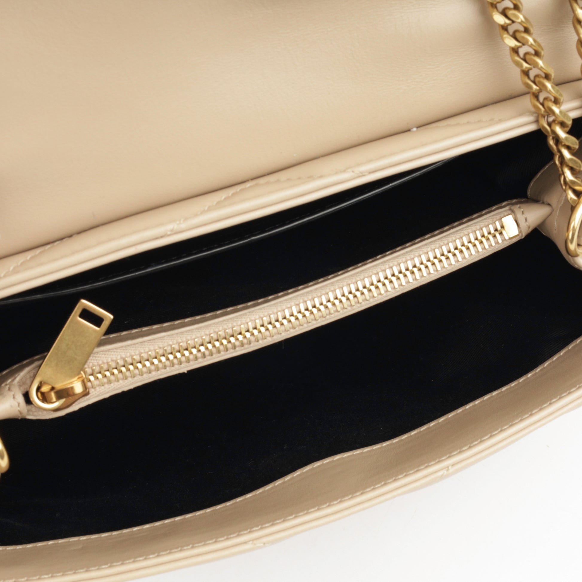 Saint Laurent’s presents their iconic Loulou bag – the perfect accessory for any on-the-go young woman with a love for luxury. Crafted in smooth, calfskin leather, and sleek complimentary silver-tone hardware, this bag is perfect for everyday use. With two interior compartments, you can easily fit all your essentials inside. Wear this style across your body for handsfree use or double over the shoulder.