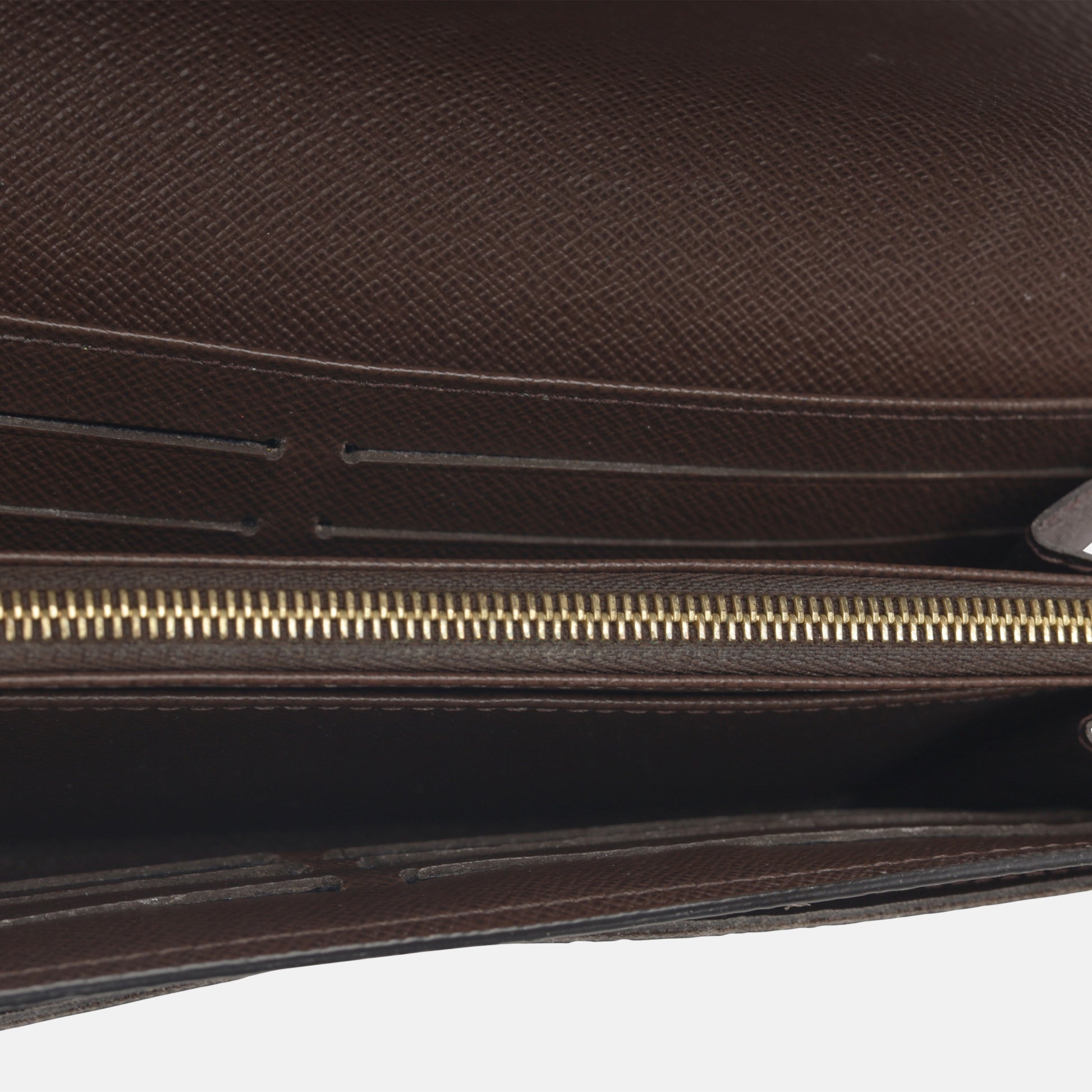 Carefully crafted from Damier Ebene canvas the Sarah wallet from Louis Vuitton is the ideal accessory that balances luxury and practicality. With it's front envelope flap, spacious interior with enough room to carry all your cards, bills, change and receipts, the Sarah wallet is a glamorous accessory that you'll have forever. A must-have for any lover of LV, this timeless piece is a necessary addition to any accessory collection.