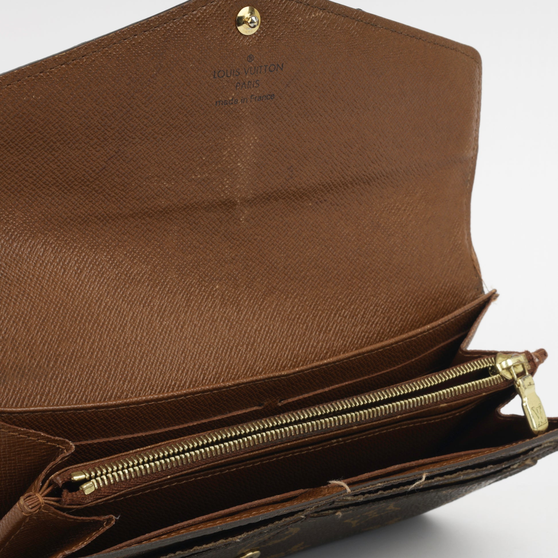 Carefully crafted from Damier Ebene canvas the Sarah wallet from Louis Vuitton is the ideal accessory that balances luxury and practicality. With it's front envelope flap, spacious interior with enough room to carry all your cards, bills, change and receipts, the Sarah wallet is a glamorous accessory that you'll have forever. A must-have for any lover of LV, this timeless piece is a necessary addition to any accessory collection.