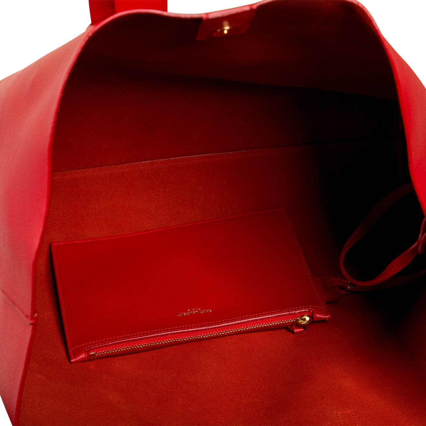 Acclaimed for its understated aesthetic and minimalist silhouettes, the "Shopping Bag" tote from Saint Laurent is the ideal accessory for any woman with a chic, simple sense of style and a love for discreet luxury. Crafted from smooth, pure Red calfskin leather, the Shopping bag is a prime example of an "if you know, you know" aesthetic. With its low-key embossed logo and two top handles, this bag is the ideal accessory for you if you're an individual with a lot to carry. Spacious enough to hold your entire world inside, the Shopping bag is sleek, sophisticated and practical. A true must-have for any Saint Laurent lover!