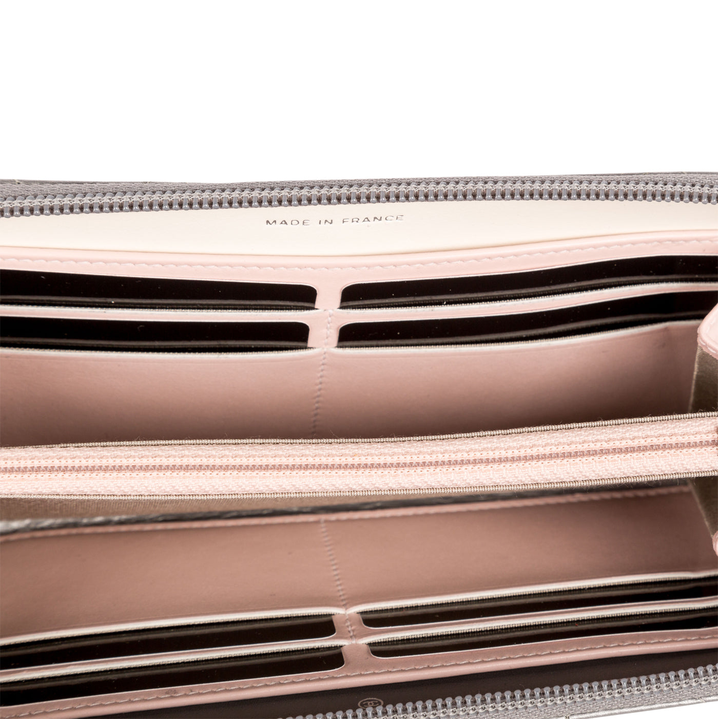The Iconic Chanel Zip Around Wallet is the perfect companion to your luxury handbag and your chanel collection, however extensive it is. With clean lines, iconic stitching and a bright, silver hardware Chanel logo, it oozes timeless style and sophistication whilst offering impeccable craftsmanship. The perfect size to fit into your bag, with enough room for all of your cards, this will be your all time favourite wallet!
