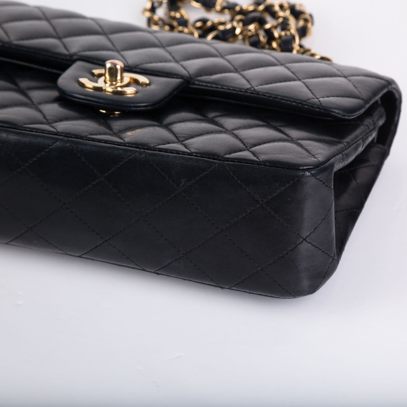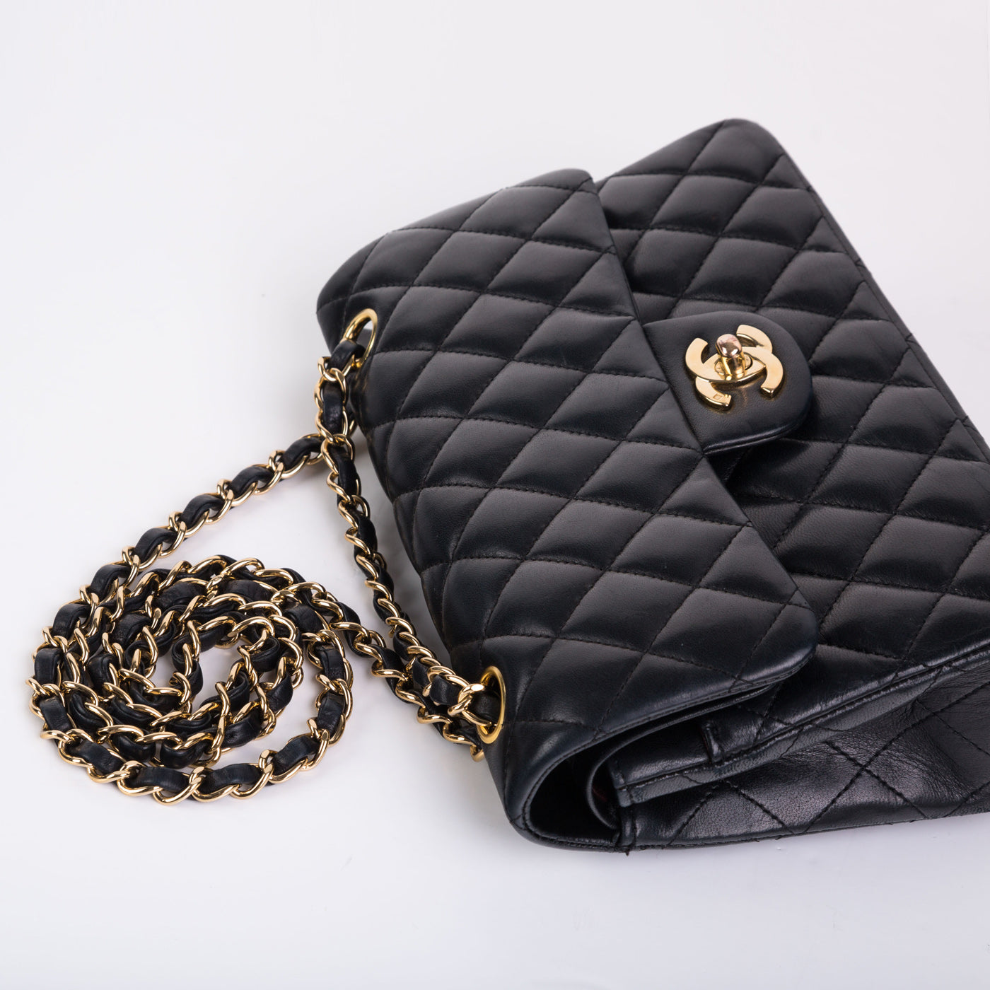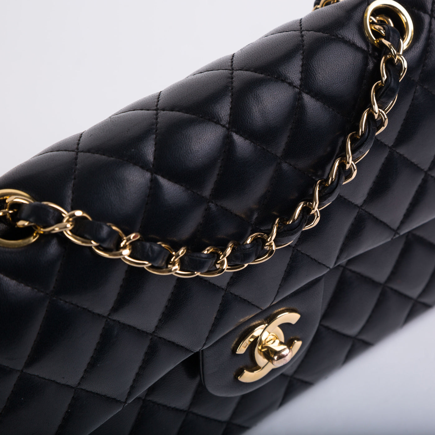 This luxurious 2.55 Classic Flap bag is quilted in lambskin leather with gold toned hardware and signature double chain. This bag is a timeless must have for every woman. Style for any occasion or event - the versatility of black and the iconic nature of this bag will guide your look.