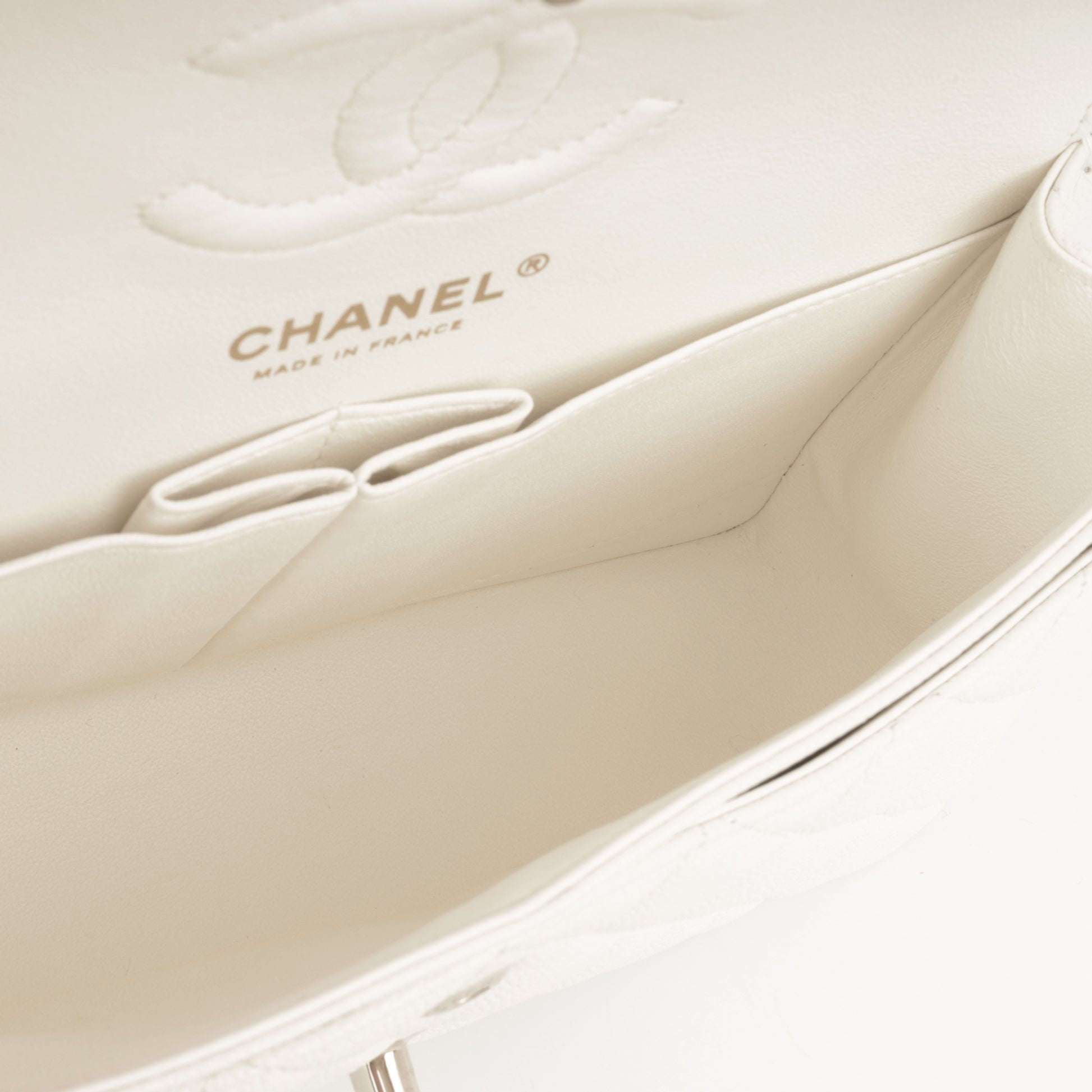 - Ivory quilted caviar leather