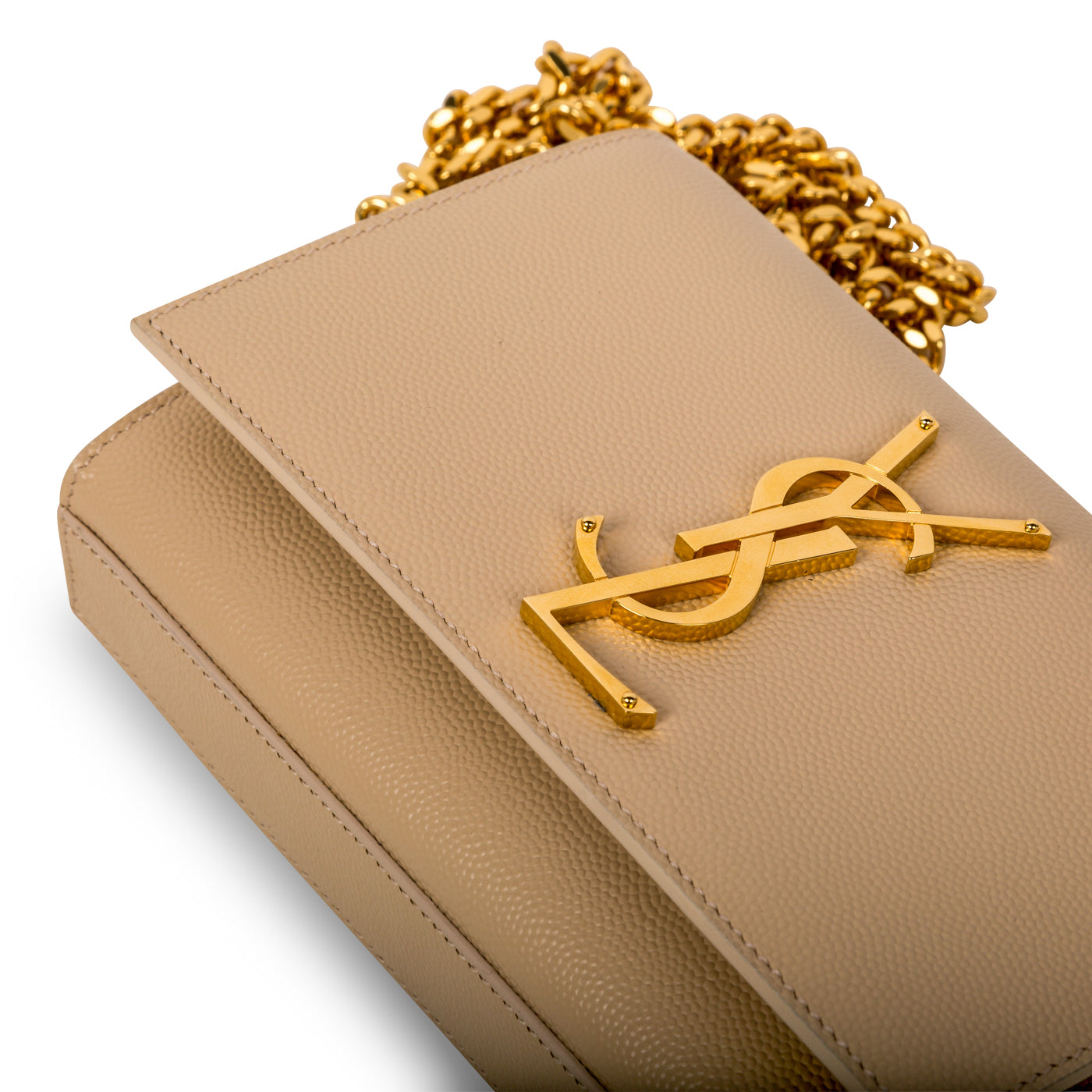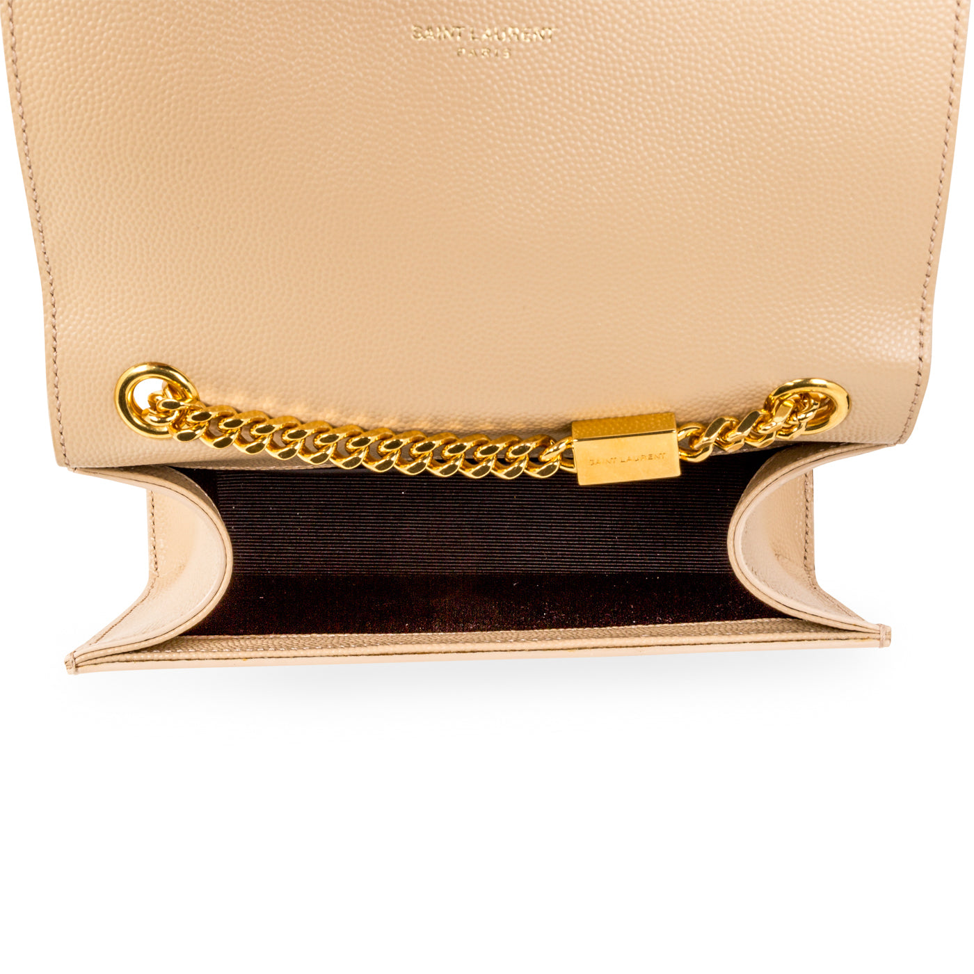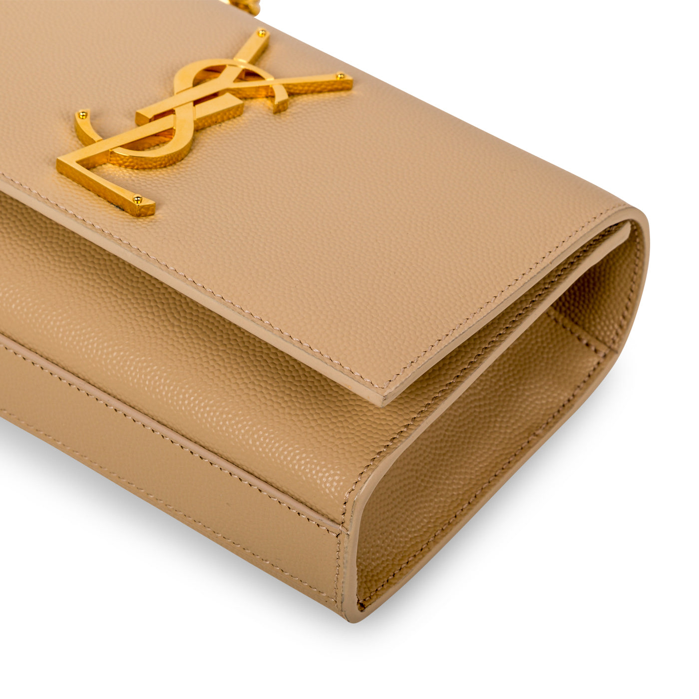 The perfect mix of edgy and elegant, Saint Laurent presents their iconic Kate bag in a black on black palette. Crafted from grainy leather, this bag is the ideal accessory to take you from day to night. Offering the best of both worlds, the Kate bag is your go-to for any occasion. Wear this piece with pretty much anything in your wardrobe - whether you dress it up or down, the Kate is the perfect compliment to your look. The black leather complimented by the glossy, jet black hardware and prominent YSL logo gives us major rock n' roll vibes while remaining timeless and chic. The perfect balance between classic and contemporary, the Kate is a well worthy addition to any luxury handbag collection.