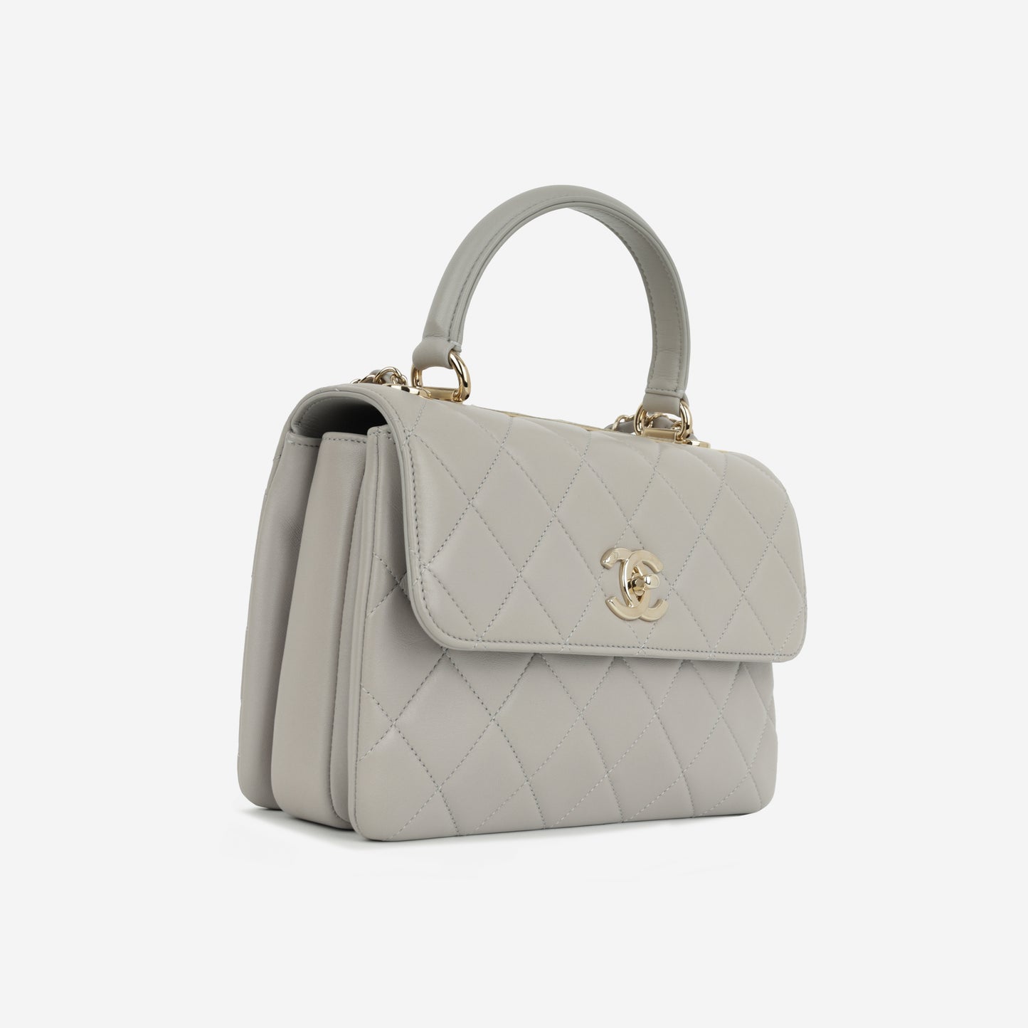 Oozing allure and sophistication, Chanel presents one of its most ravishing, highly acclaimed handbags, the Chanel Trendy CC Flap in Small. Crafted from lambskin with champagne gold hardware and punctuated with the fashion house’s coveted quilted design, the handbag features a sharp silhouette.