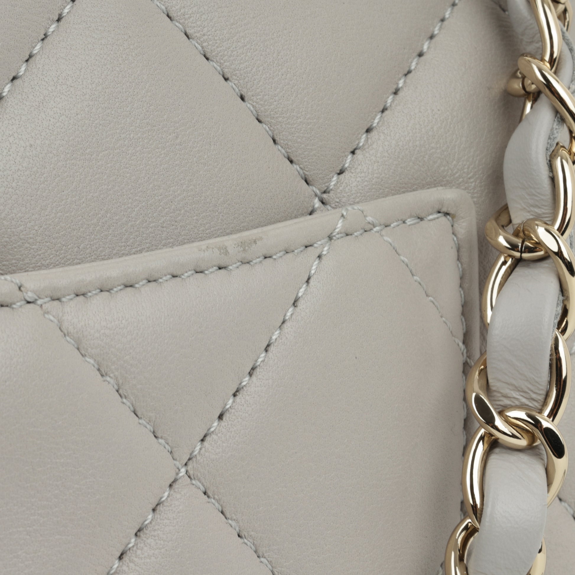 - Grey quilted lambskin leather