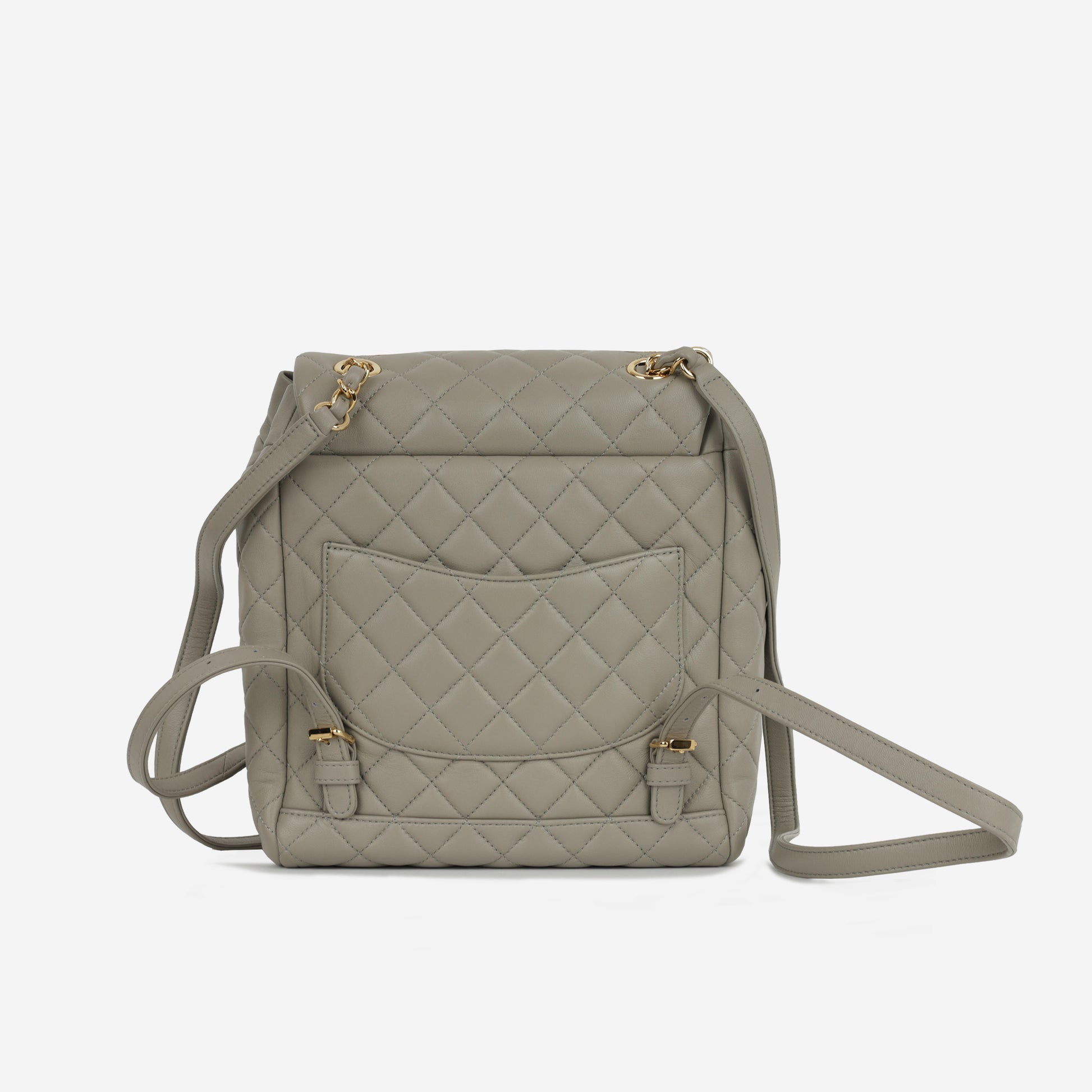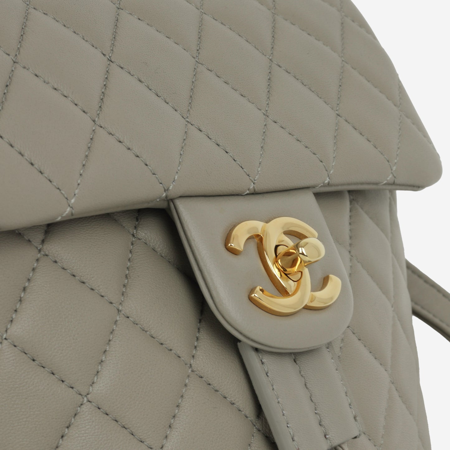Carefully crafted from lambskin leather, Chanel presents their Urban Spirit backpack. Featuring the classic features of a classic flap such as the quilting and the CC closure, this bag is large enough to fit in all your belongings without it being overpowering.