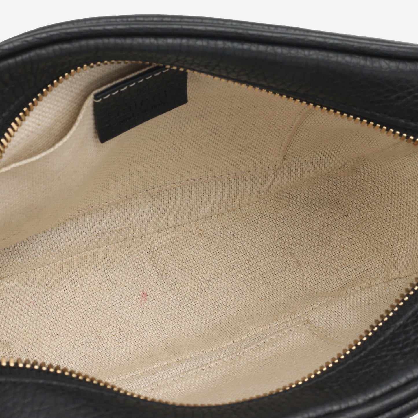 - Gucci embossed leather logo tag