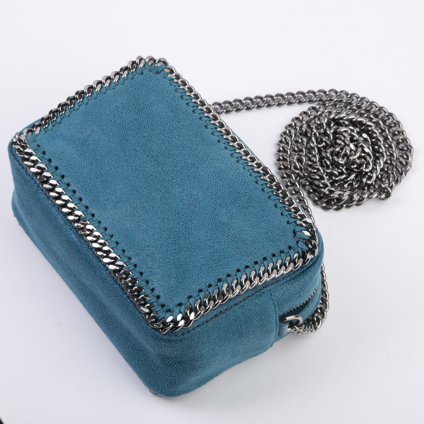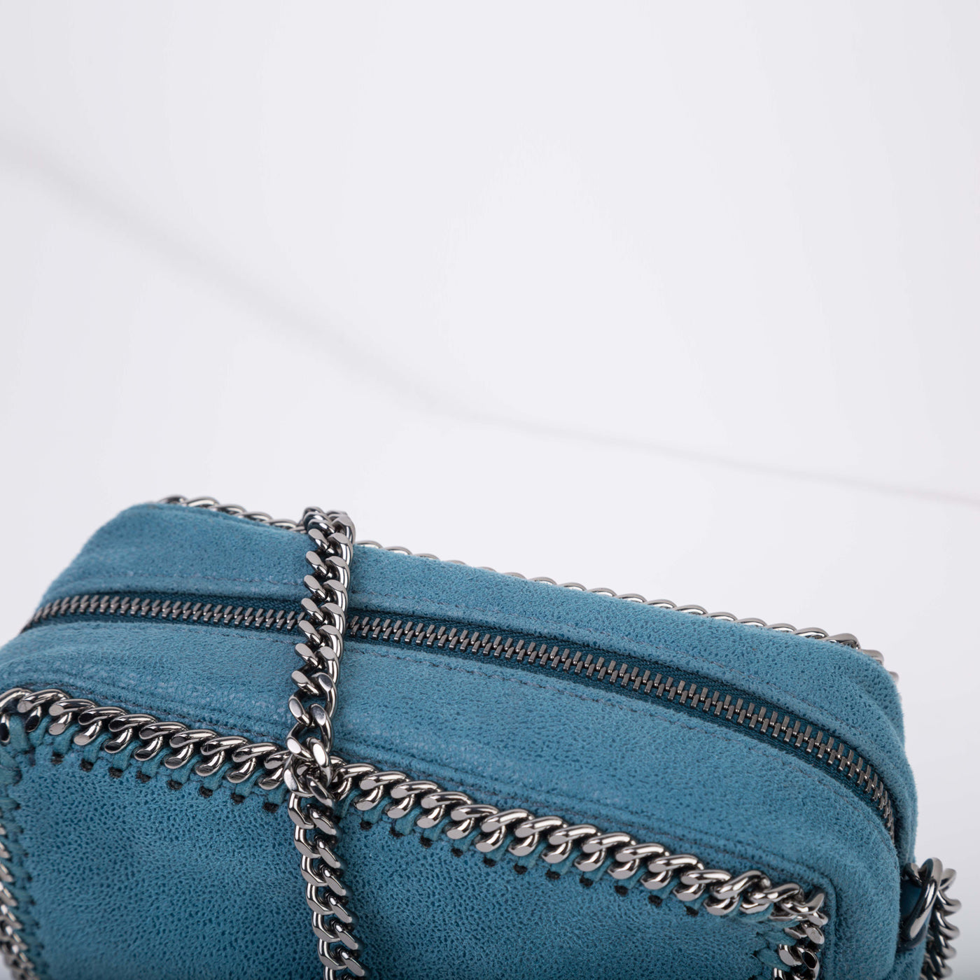 This adorable Bella crossbody bag by Stella McCartney is the perfect accessory for a stylish young woman with a love for fashion and a busy schedule. With its camera-like structure and tasteful blue hue, this adorable accessory is the perfect balance between modern sophistication and youthful femininity. The classic Stella chain embellishment gives this bag a contemporary edge while remaining understated. Dress this bag up or dress it down with any neutral toned outfit to add a pop of colour to your look.