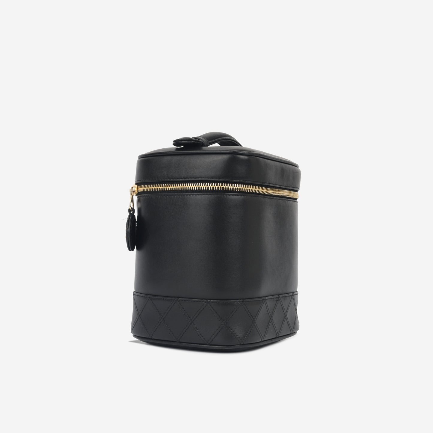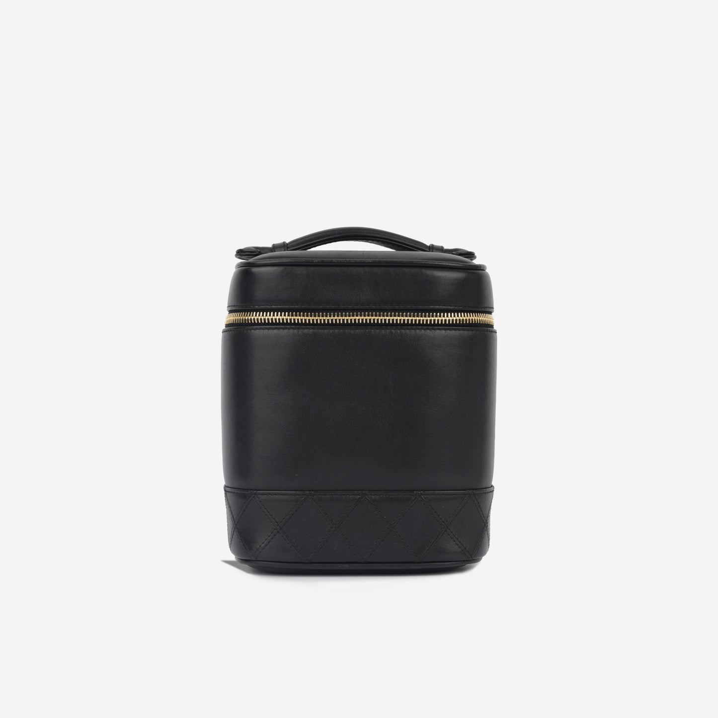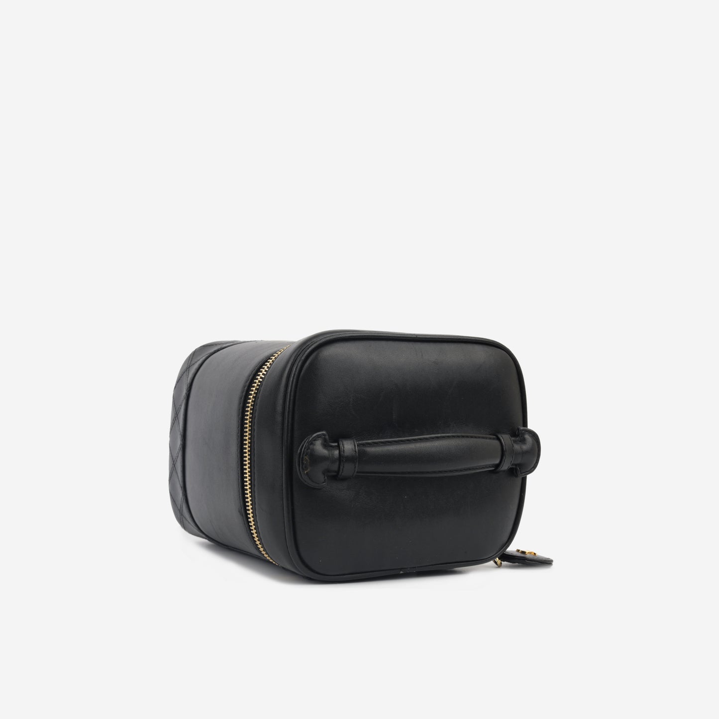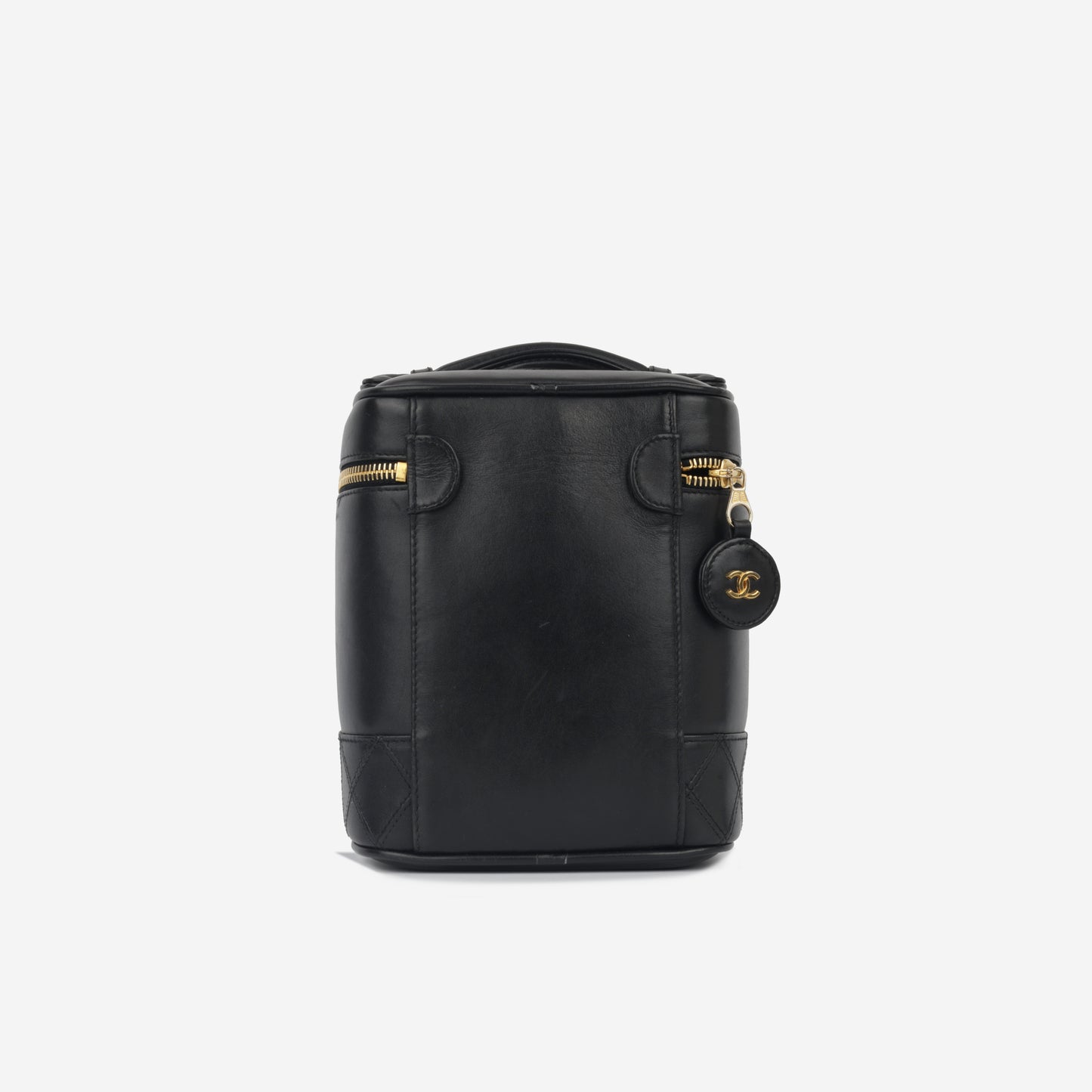 Chanel’s vintage collection presents one of its highly sought and rare gems, the tall Vanity Case. Primarily developed for storing your tiny beauty essentials and other small necessities, the vanity case has come a rather long way since its birth. This vanity case is presented in gorgeous black calfskin leather alongside complimentary gold toned hardware.