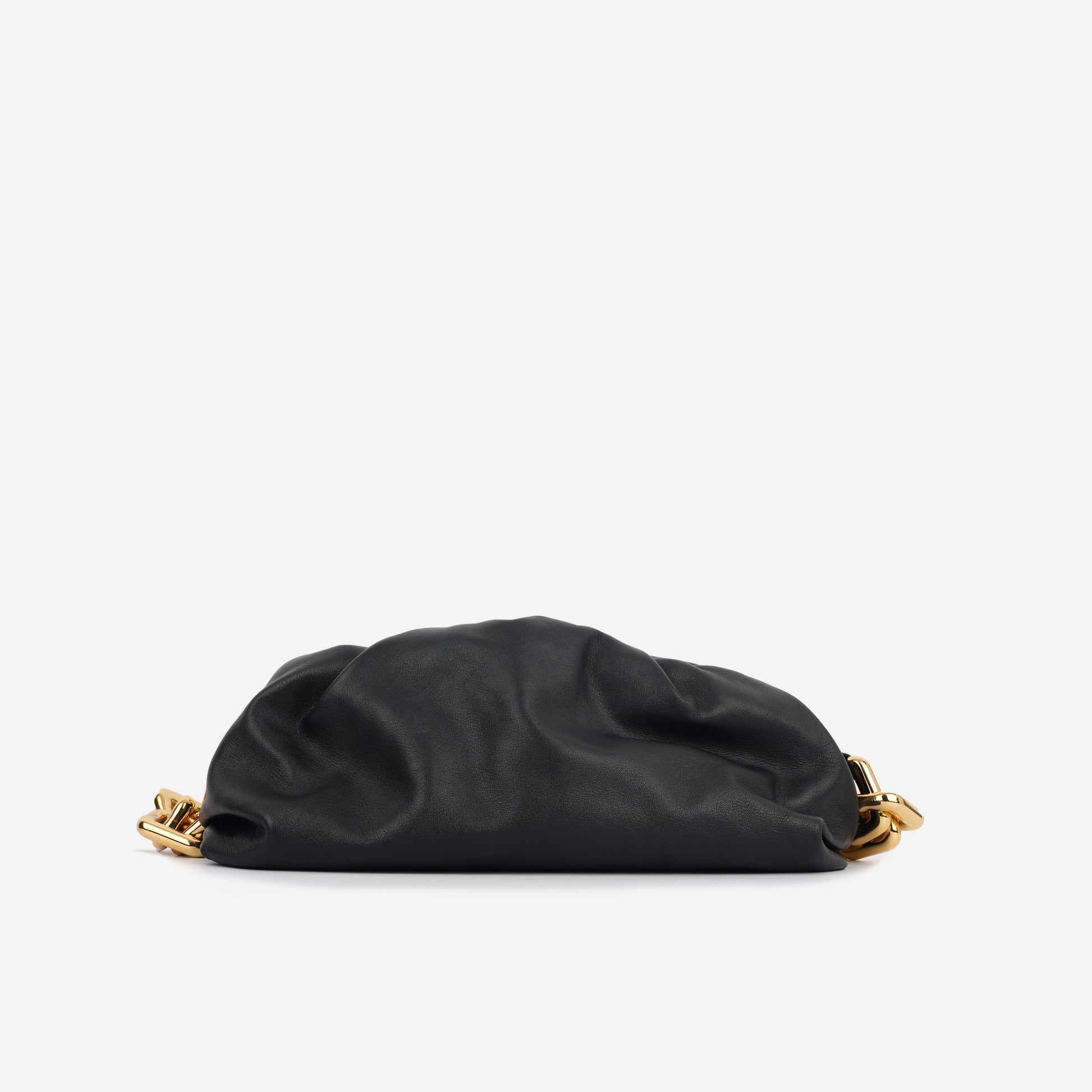 Bottega Veneta presents their beautiful teen pouch bag, with an ultra-chic and trendy twist featuring the chunky gold square chain strap. Carefully crafted in black nappa leather, in a soft, slouchy silhouette, this bag offers practicality as well as style. Fit all your every day essentials inside the spacious interior featuring inside slip pockets, and an additional zip pocket.