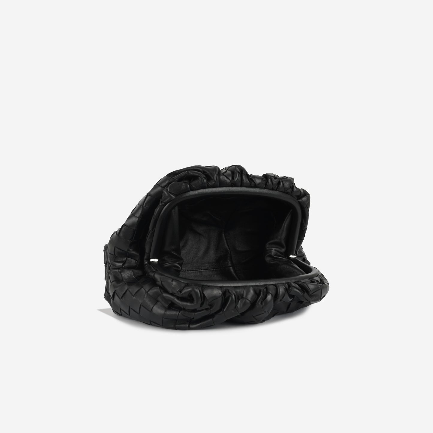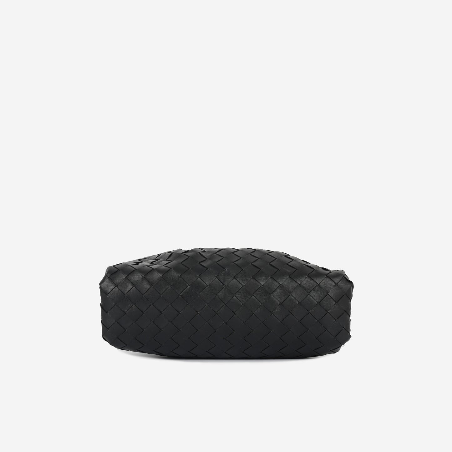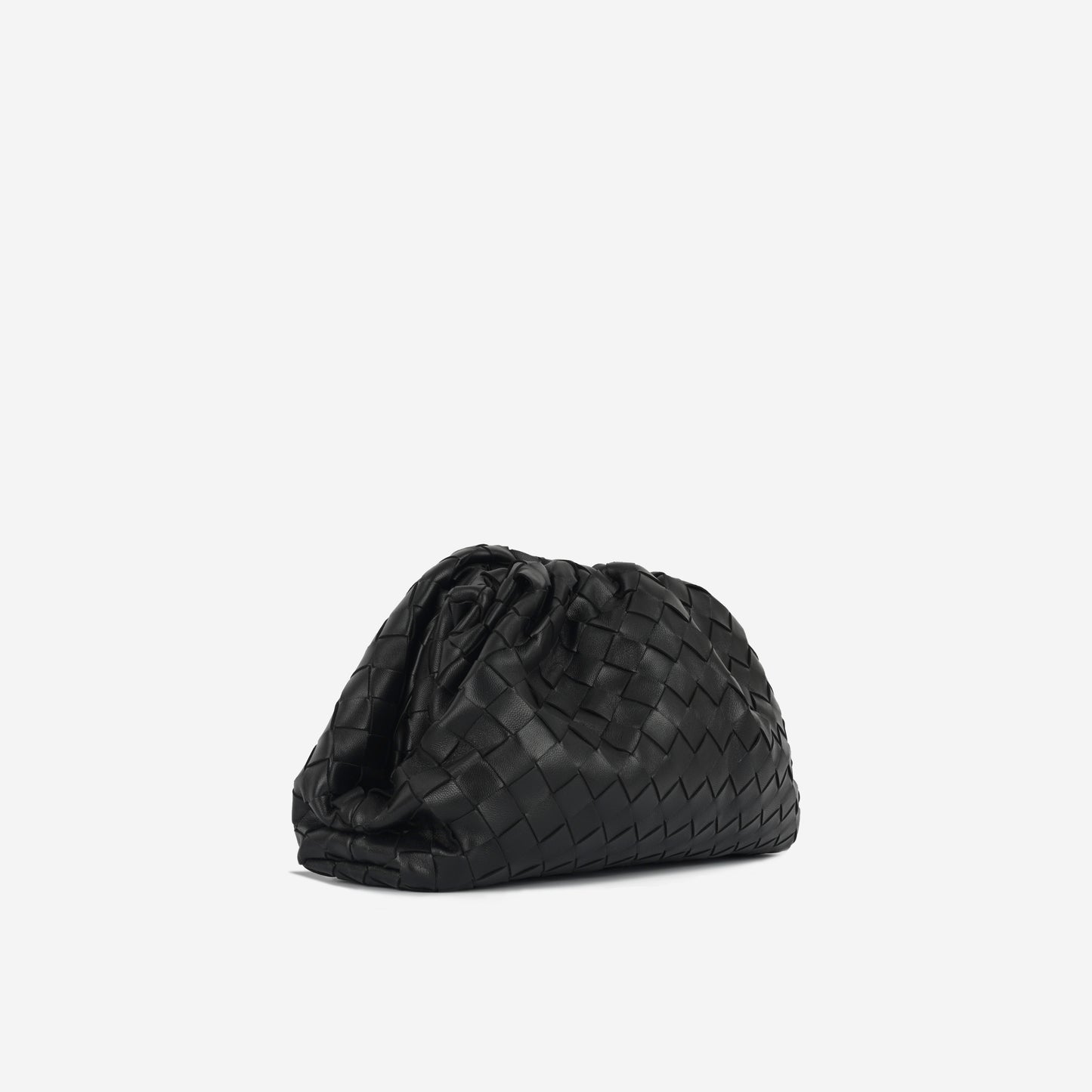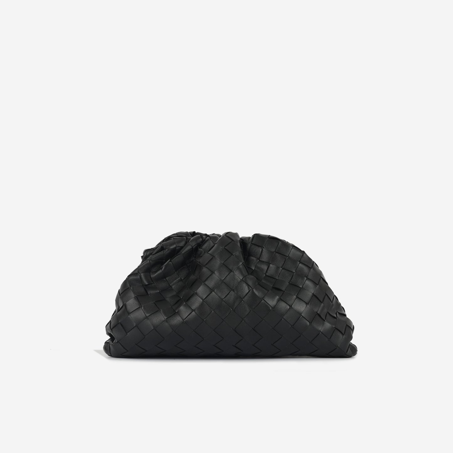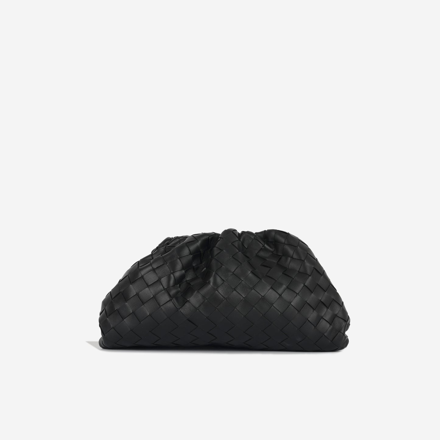 Bottega Veneta presents their beautiful pouch bag, the ultimate understated bag to emphasise all your outfits. Carefully crafted black intrecciato leather in a soft, slouchy silhouette, this bag offers practicality as well as style. Fit all your every day essentials inside the spacious interior.