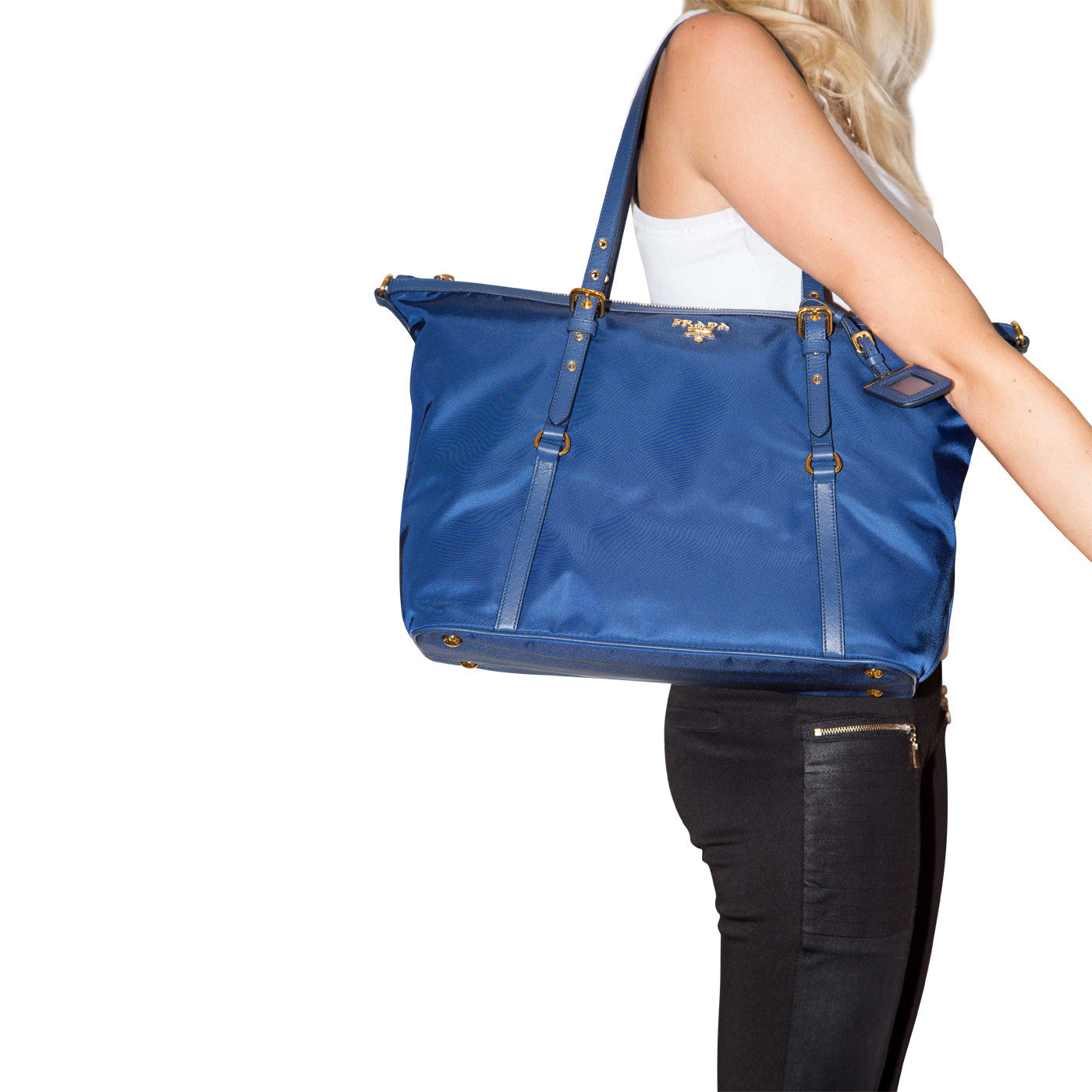 This classic Prada Tessuto Saffiano tote bag makes a perfect everyday bag. It consists of durable nylon with a leather trim and the spacious interior is roomy enough to hold all your essentials.