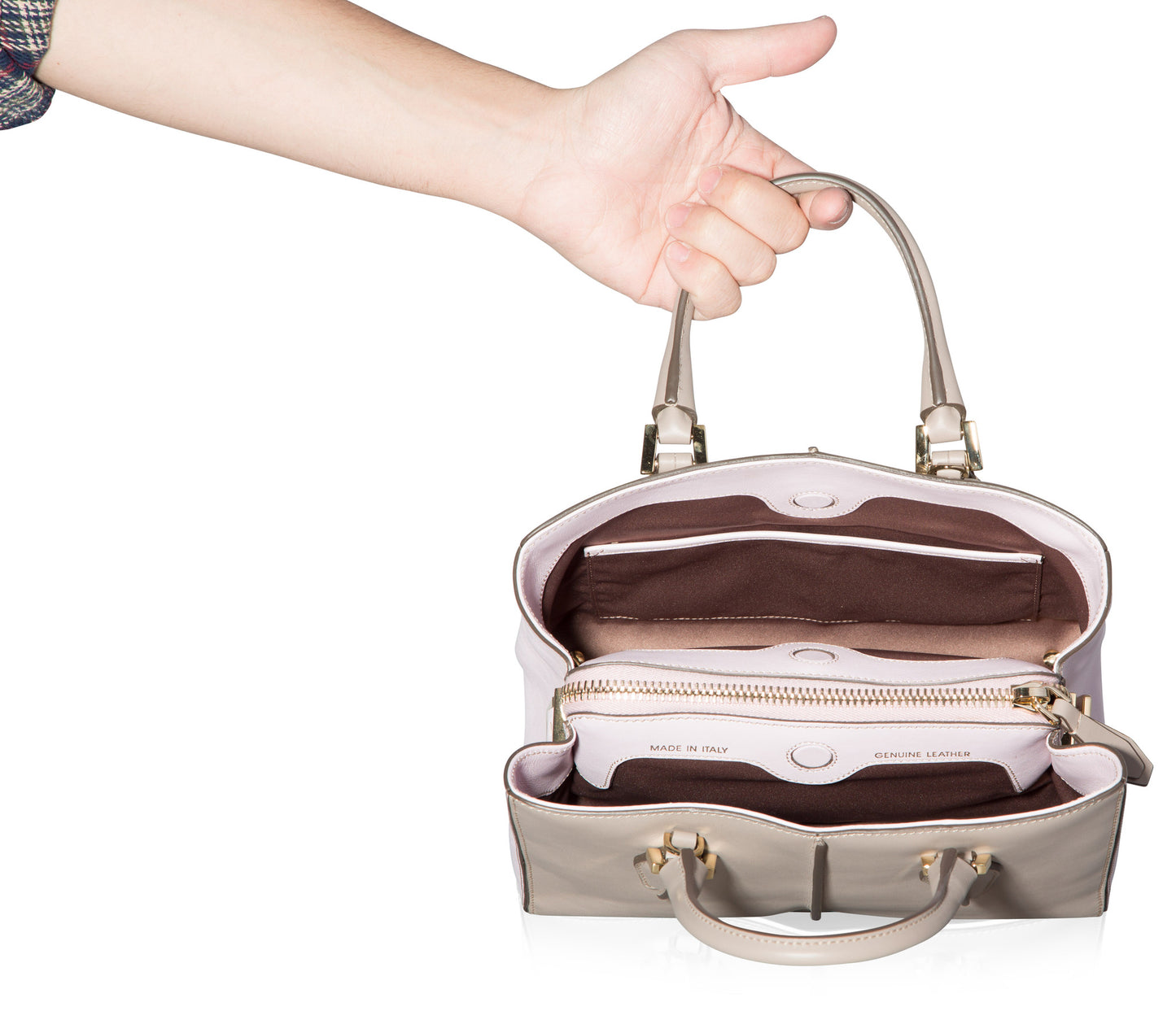 Impeccably constructed from Italian leather, this bag features sleek rolled handles and an optional, adjustable strap which lets you switch seamlessly from handheld to crossbody carry. A divided interior makes organization a breeze.