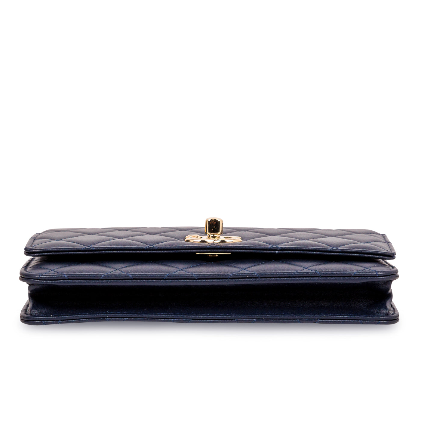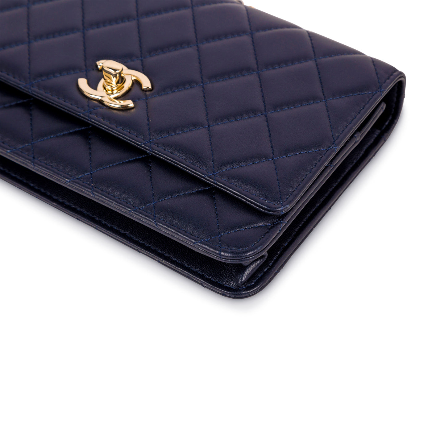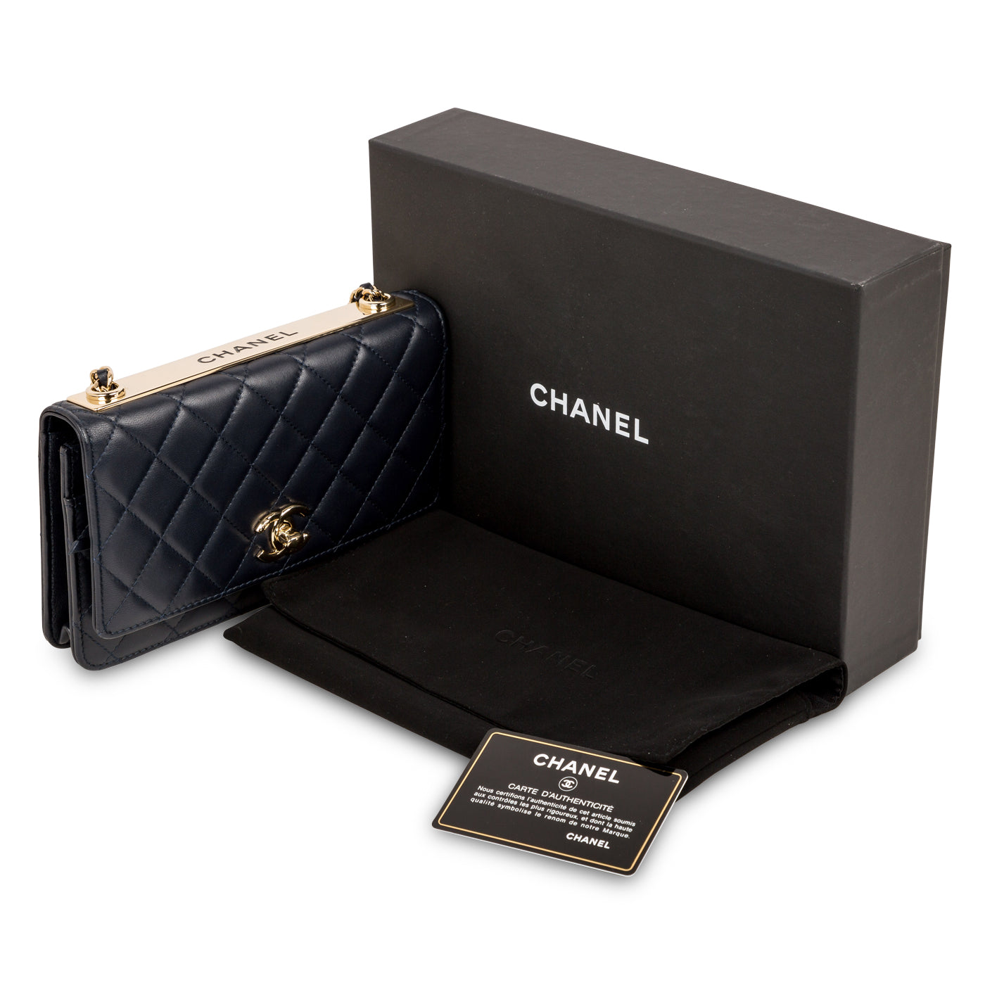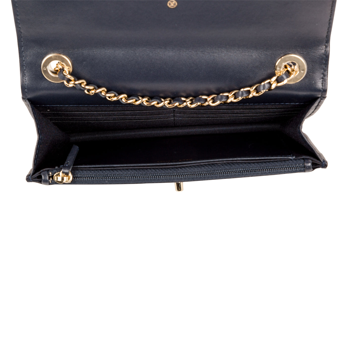 Ahh…is there anything not to love about the Trendy Chanel Wallet-On-Chain? It’s as practical as the classic WOC, has the same iconic features, but also showcases and elegant and edgy metal plate featuring a cut Chanel logo, synonymous with the ever-popular Trendy line by Chanel. This particular WOC crafted in the brand’s signature lambskin leather, in Navy Blue, featuring Champagne Gold Hardware. Sleek, stylish and sophisticated the WOC is a classic piece that you will have forever. Perfect for any monochromatic look, knowing that regardless of what you’re wearing, this WOC is the ideal compliment. A true must-have for any woman with a love for luxury and a chic sense of style, this little gem is a well-worthy addition to any handbag collection.