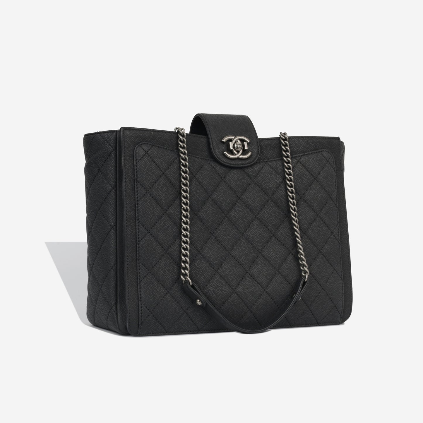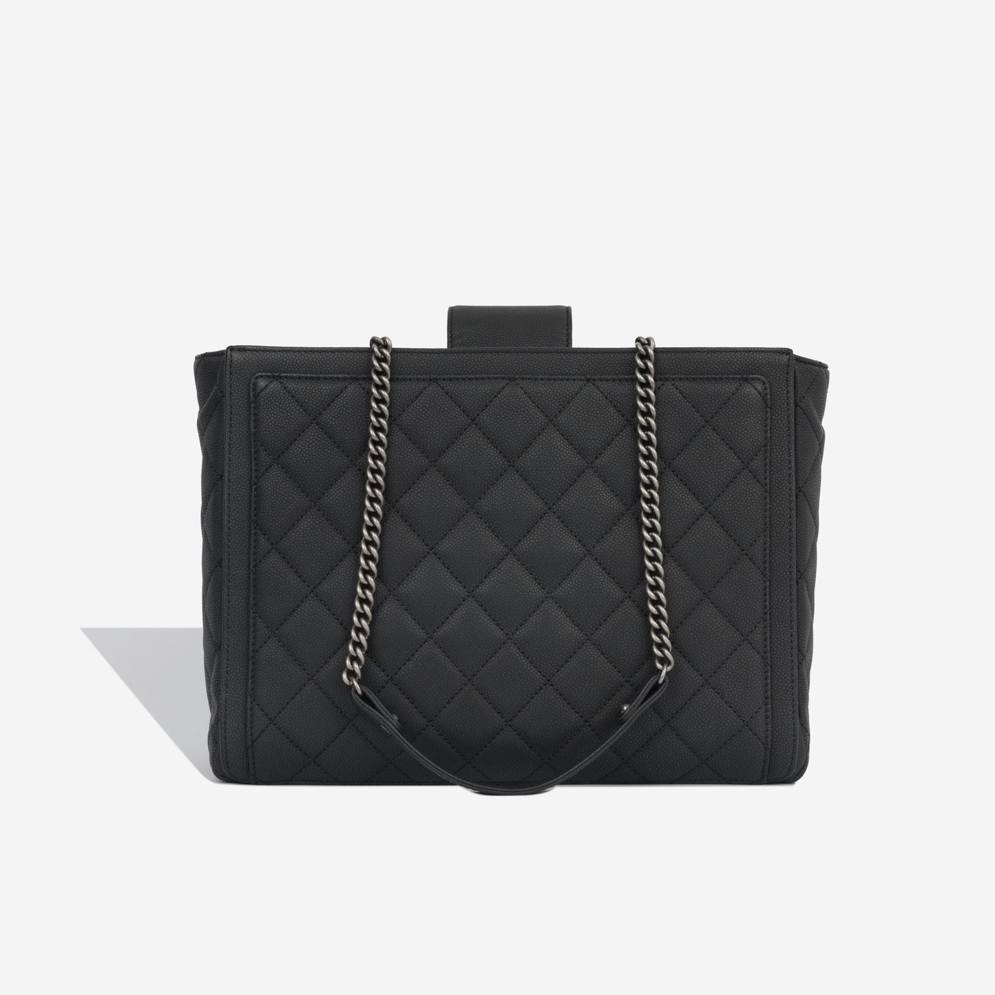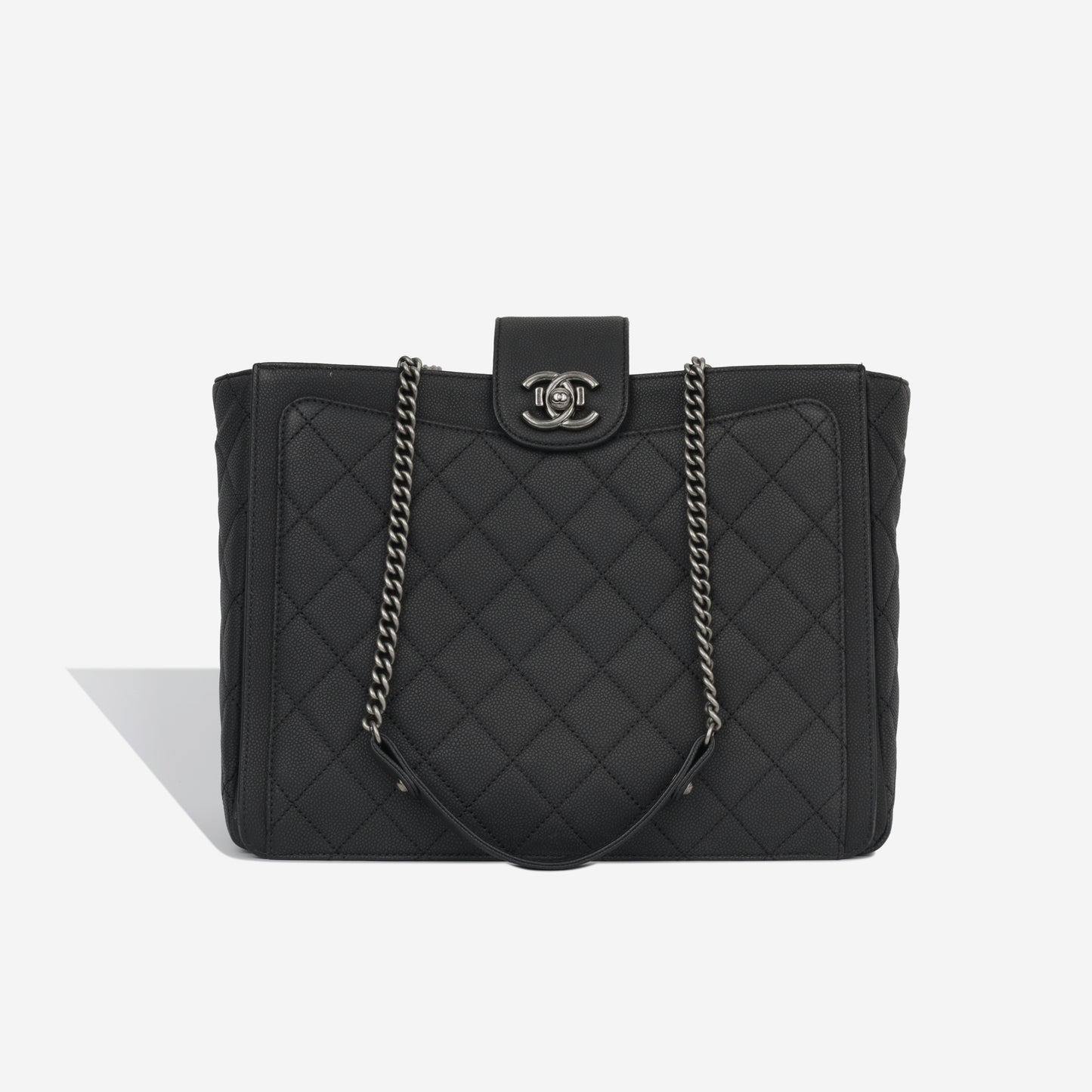 From the Fall/Winter 2016 Collection by Karl Lagerfeld, the Turn-Around Ligne Tote is crafted from washed Caviar leather featuring a gunmetal chain with a CC push-lock closure. The tote opens up to a spacious compartment featuring a discreet slip and zip pocket perfect for everyday use.