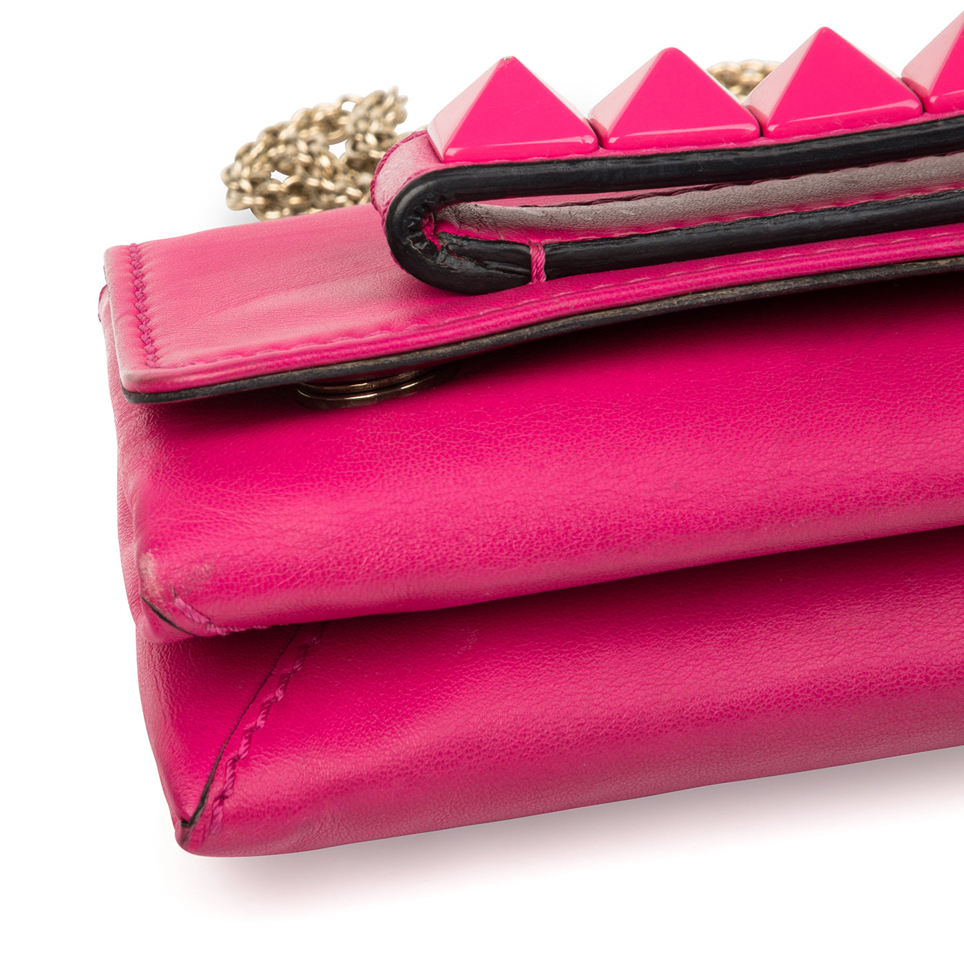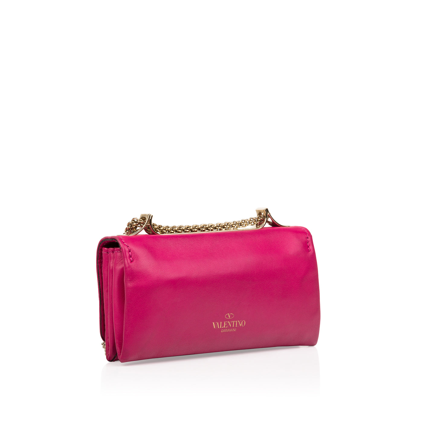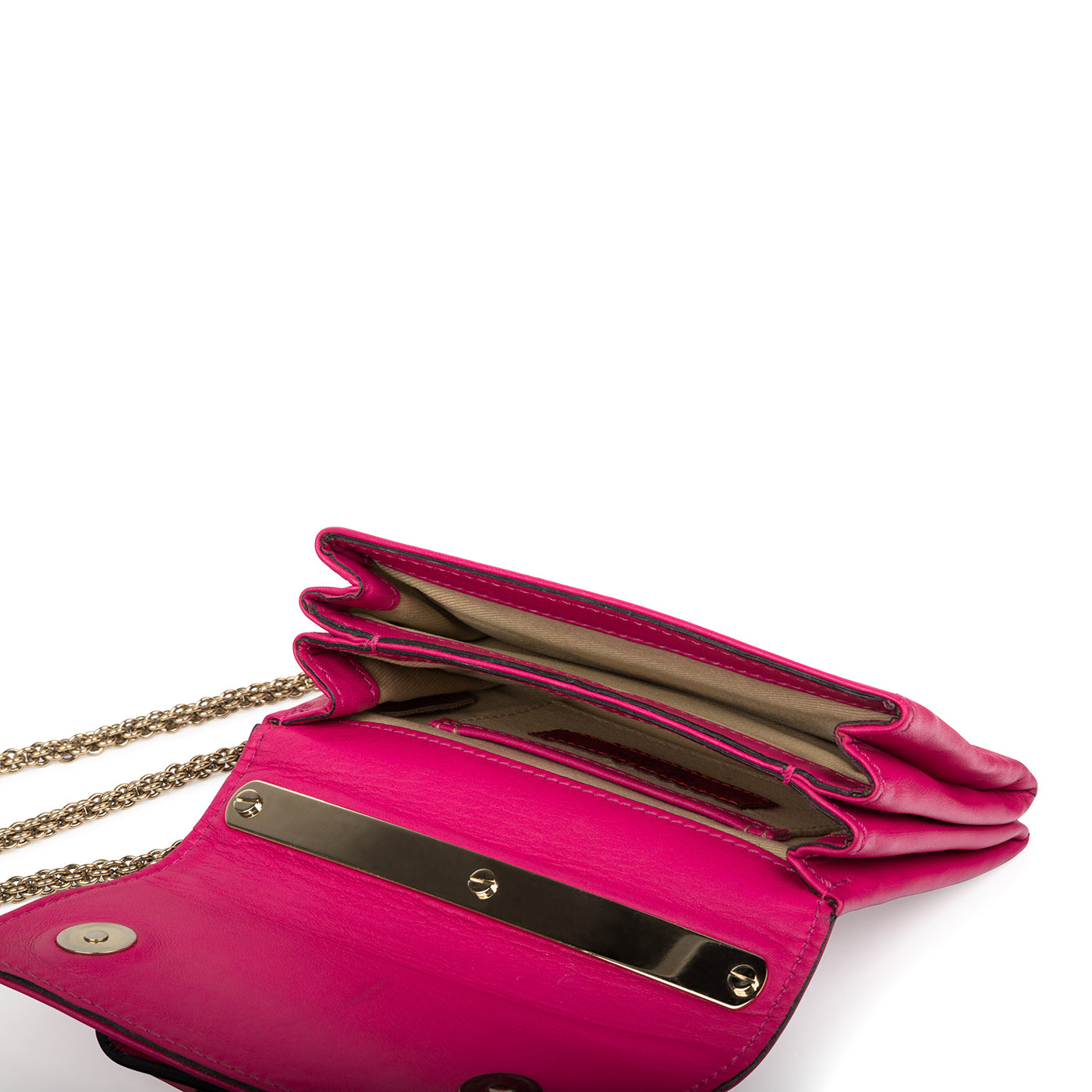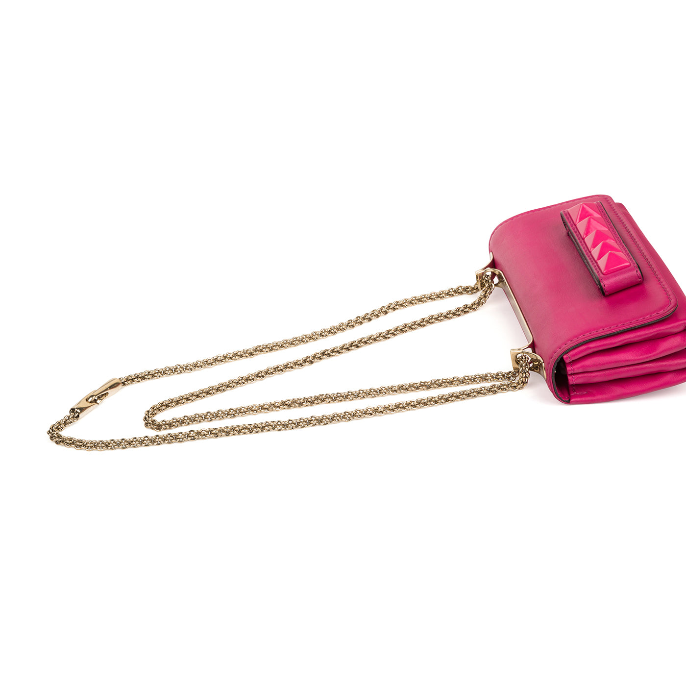 Ever since its foundation in 1959, Valentino has become synonymous with elegance and an unmatched uniqueness. The coveted label brings us this edgy yet elegant gem from its marvellous Va Va Voom collection. This Va Va Voom Mini Clutch is exactly what your evening attire needs. Featuring a radiant pink leather and Valentino’s signature studs in the form of pyramids, this small but mighty clutch captures the romantic essence of Rome. The clutch also features a detachable shoulder chain strap and gold antique-toned hardware which adds a tone of class and versatility.