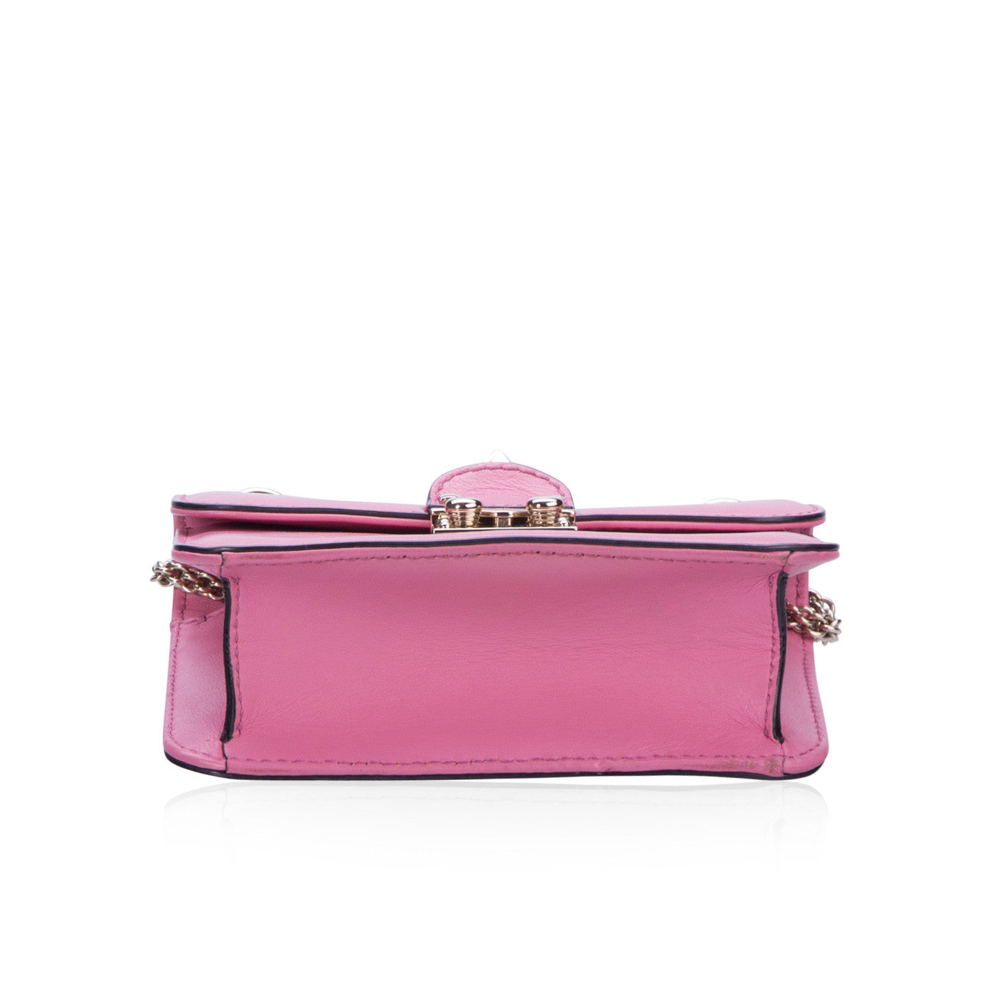Be pretty in pink with this glamorous Valentino shoulder bag. Featuring the signature rock studs, this is the bag to be seen wearing this spring/summer. The perfect accompaniment to your evening wardrobe, this will give a pop of colour whilst remaining chic and stylish. Any Valentino lover needs to get their hands on this stunning little bag.