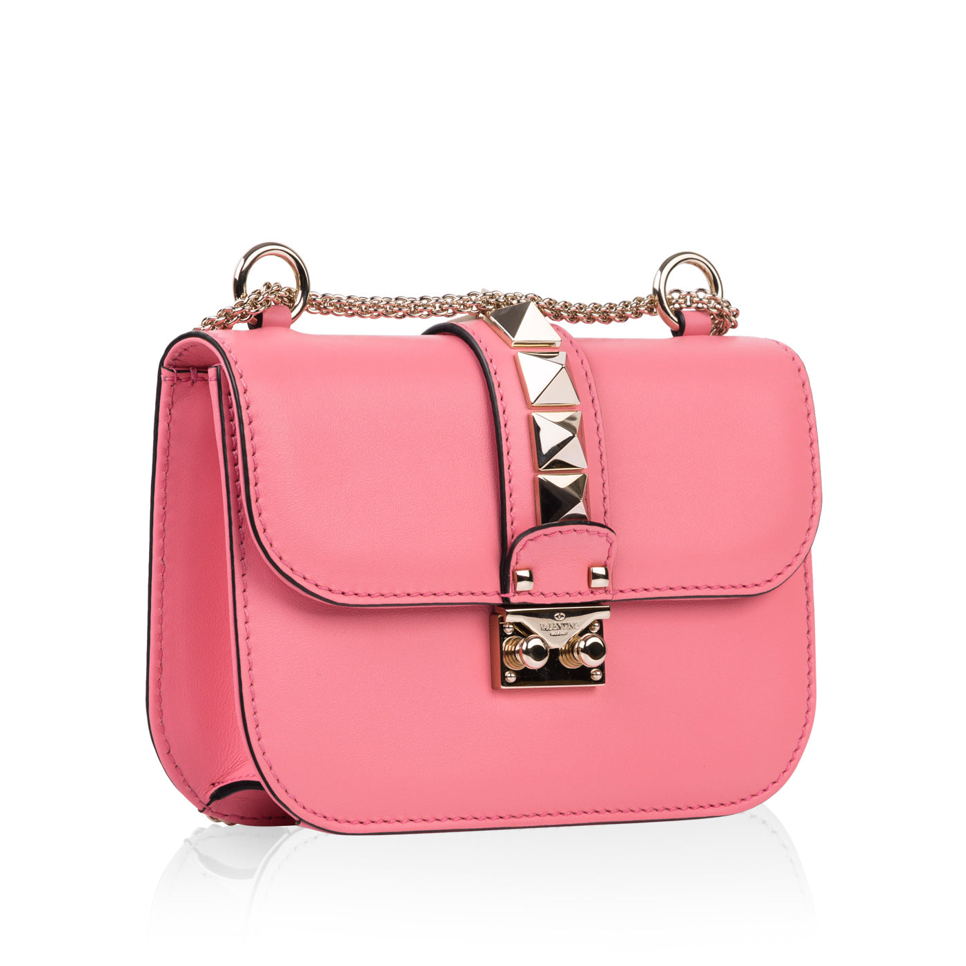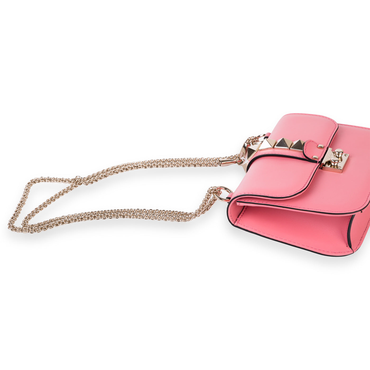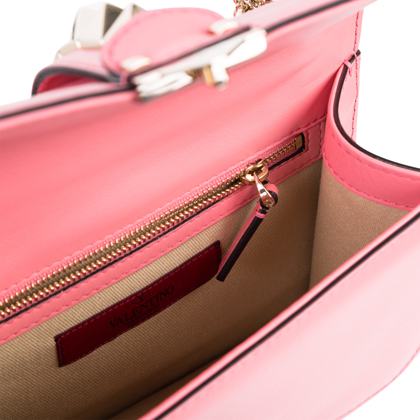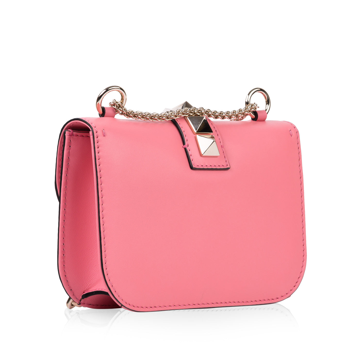 Be pretty in pink with this glamorous Valentino shoulder bag. Featuring the signature rock studs, this is the bag to be seen wearing this spring/summer. The perfect accompaniment to your evening wardrobe, this will give a pop of colour whilst remaining chic and stylish. Any Valentino lover needs to get their hands on this stunning little bag.
