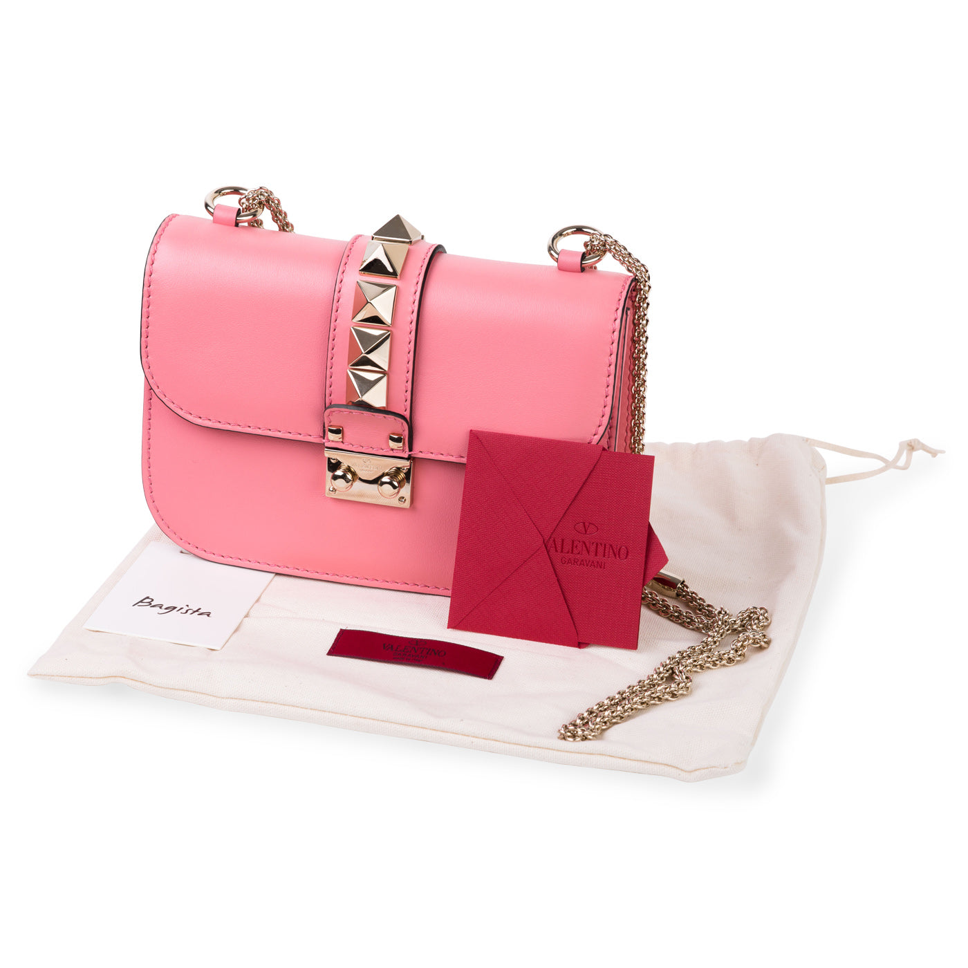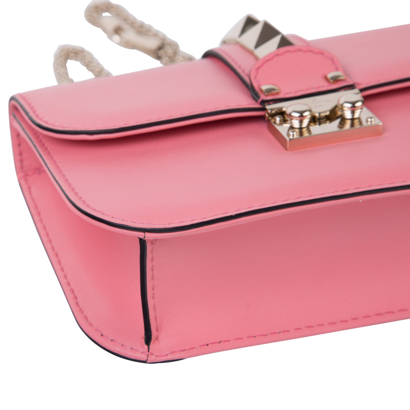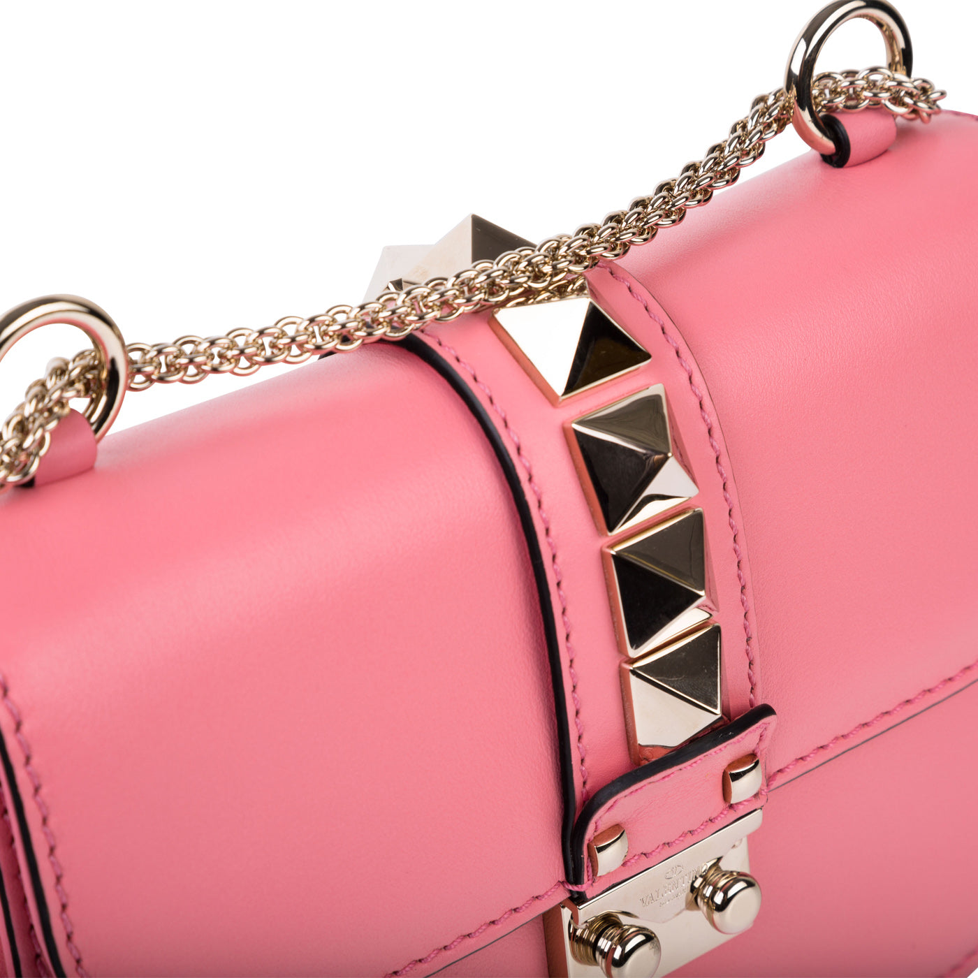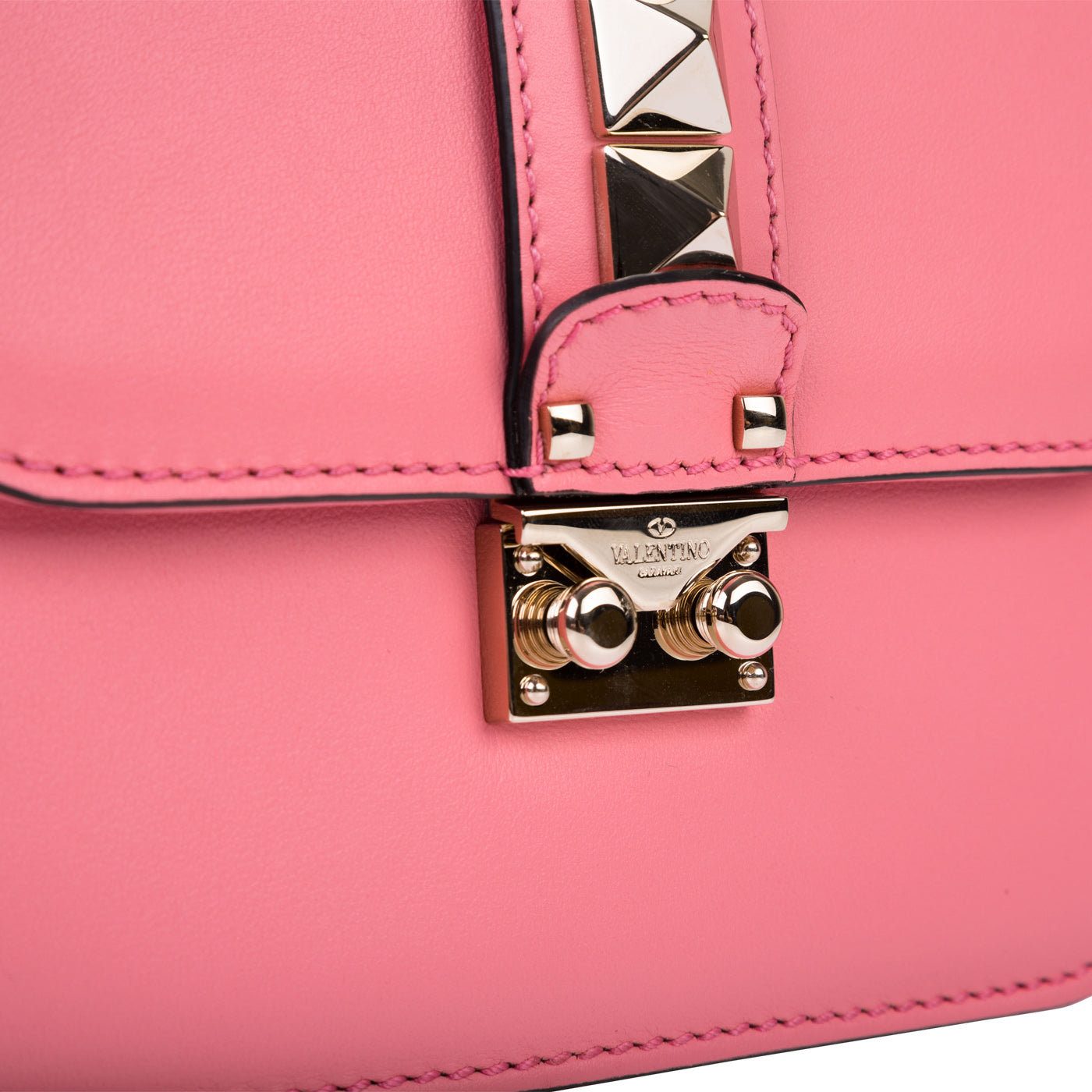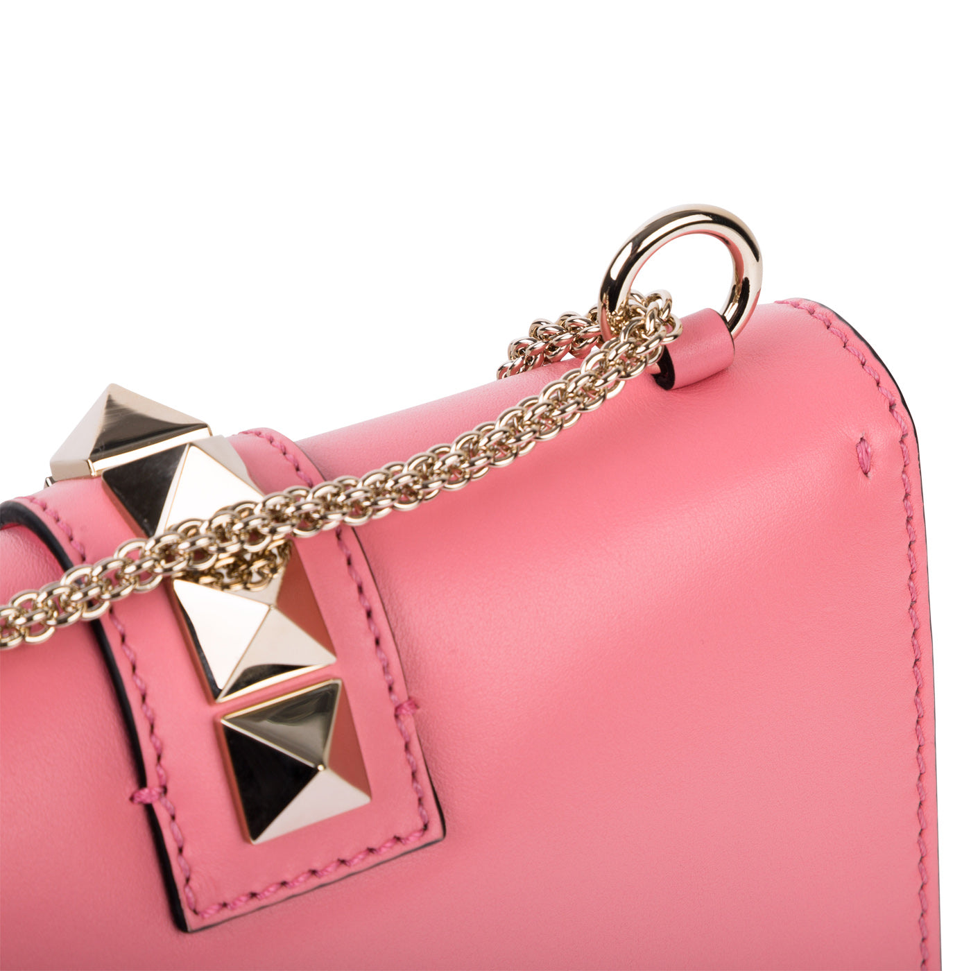Be pretty in pink with this glamorous Valentino shoulder bag. Featuring the signature rock studs, this is the bag to be seen wearing this spring/summer. The perfect accompaniment to your evening wardrobe, this will give a pop of colour whilst remaining chic and stylish. Any Valentino lover needs to get their hands on this stunning little bag.