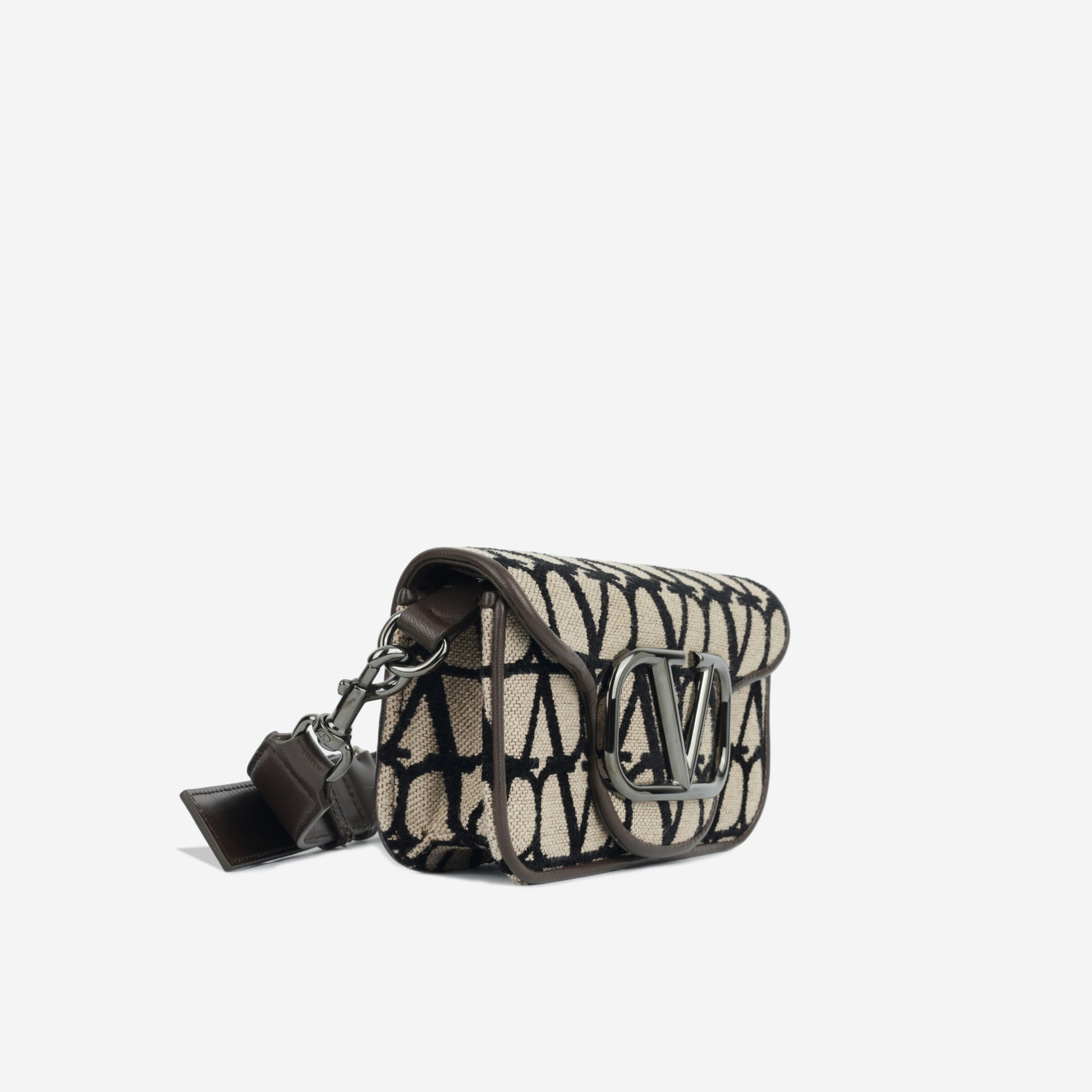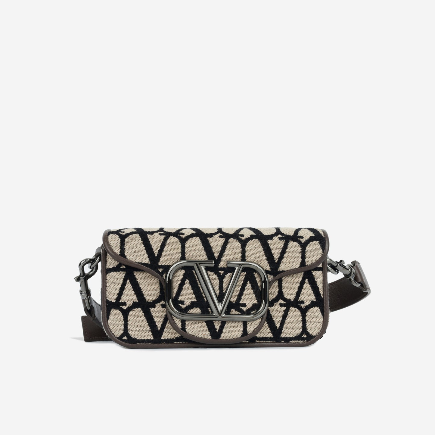 The Mini Locò Shoulder bag is Valentino Garavani's 90s inspired baguette. Crafted from Iconographe Toile and prominently featuring the Vlogo hardware. Can be carried both by the handle and over the shoulder.