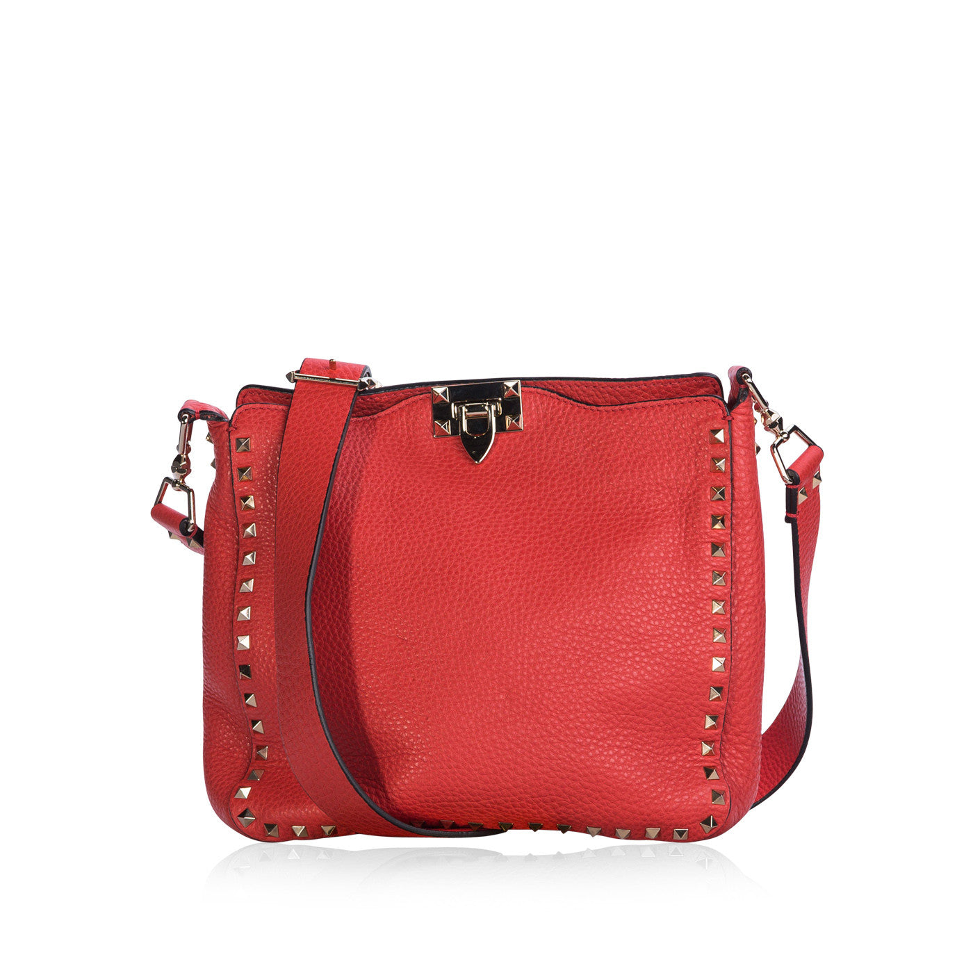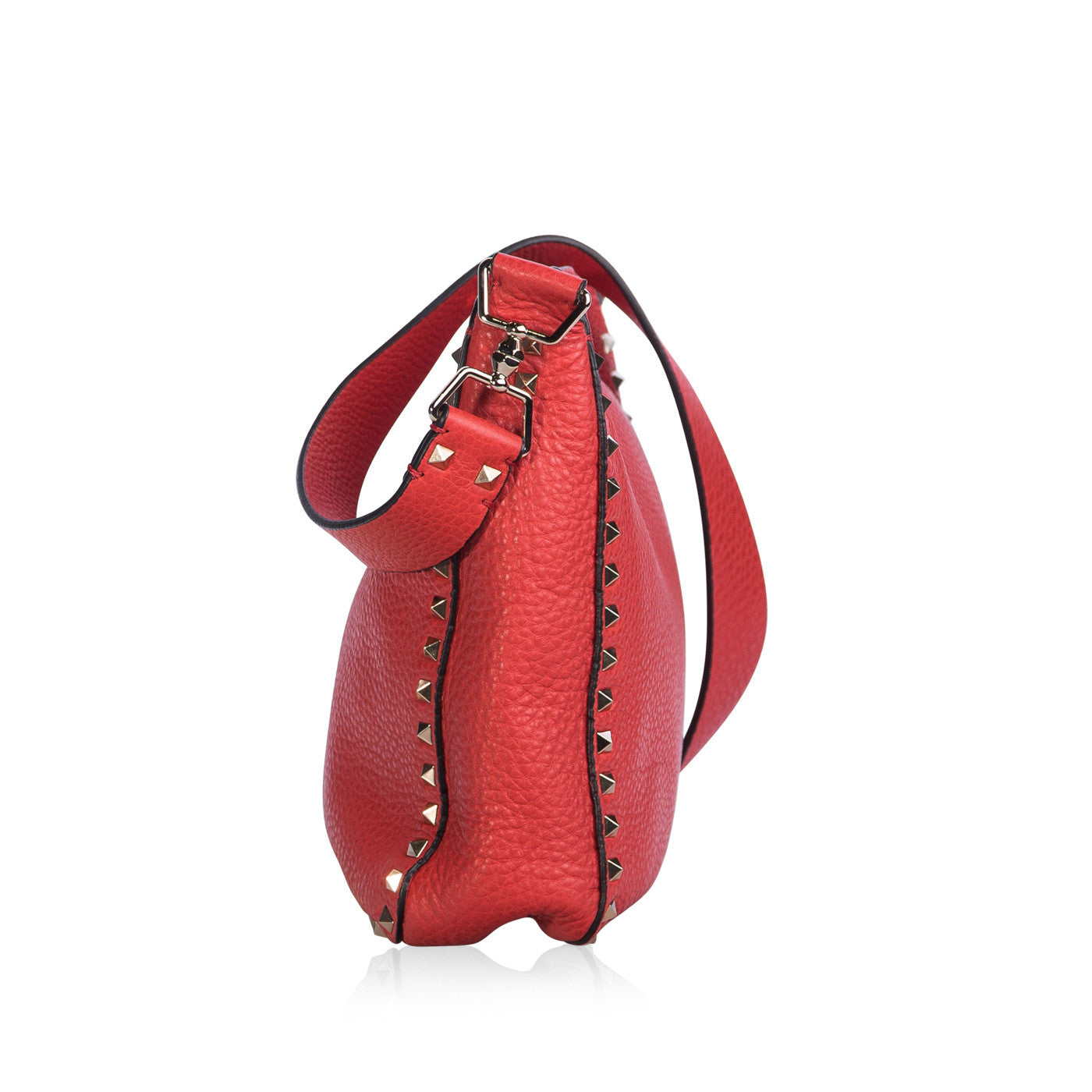 Valentino have created this beautiful sophisticated take on the hobo bag with this design, which features signature Valentino rockstuds. Crafted in a soft pebbled calfskin, this bag will be the star of your outfit, day or night. Wear without the shoulder strap for a stylish evening clutch to match your favourite red lipstick.