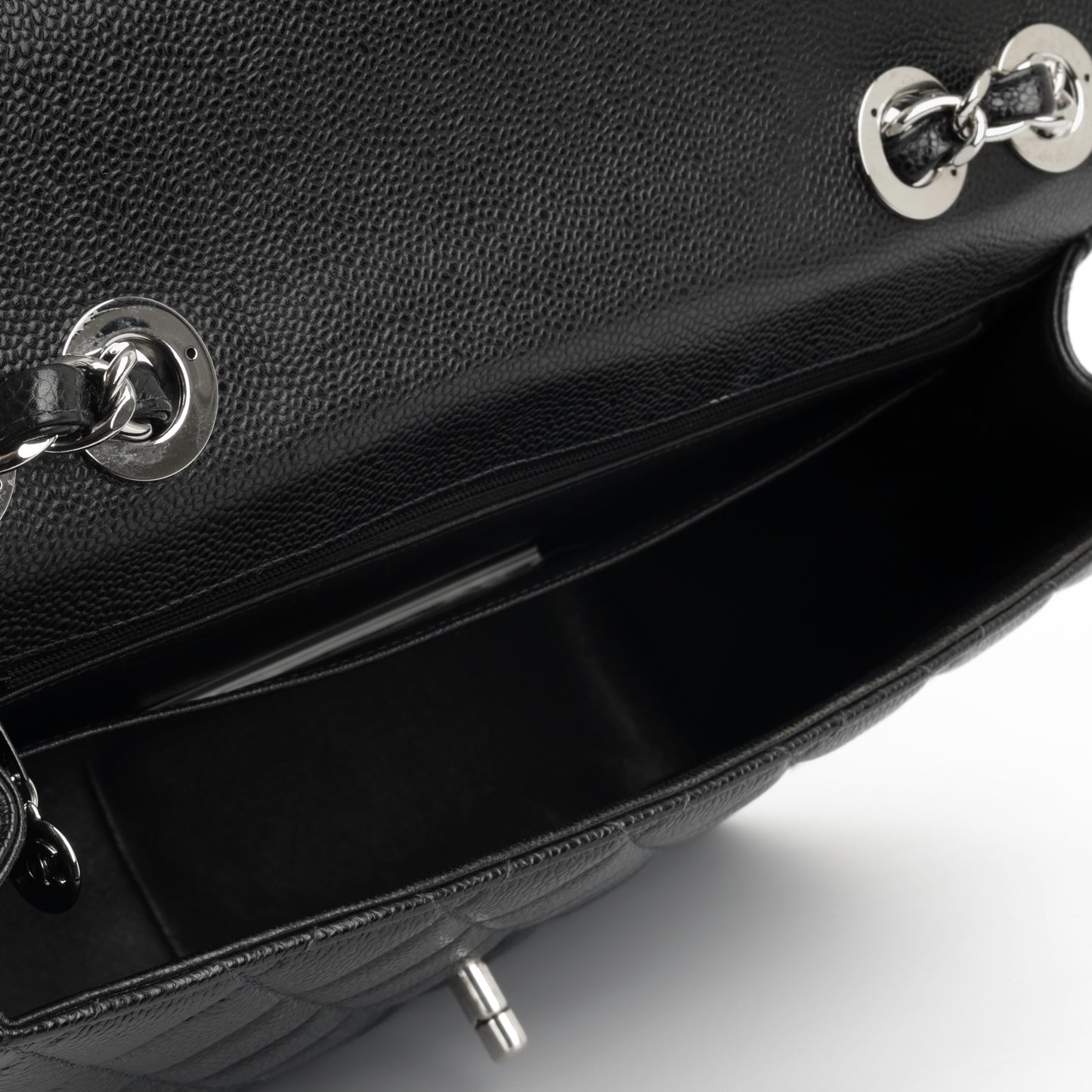 Introducing the Vintage Single Caviar Jumbo Flap—a timeless piece inspired by classic Chanel elegance. Crafted from durable caviar leather, this vintage gem pays homage to Chanel's renowned craftsmanship and enduring quality. The caviar leather not only enhances its durability but also adds a touch of sophistication to the iconic jumbo flap design. Elevate your style with this vintage Chanel creation, a testament to both luxury and longevity.