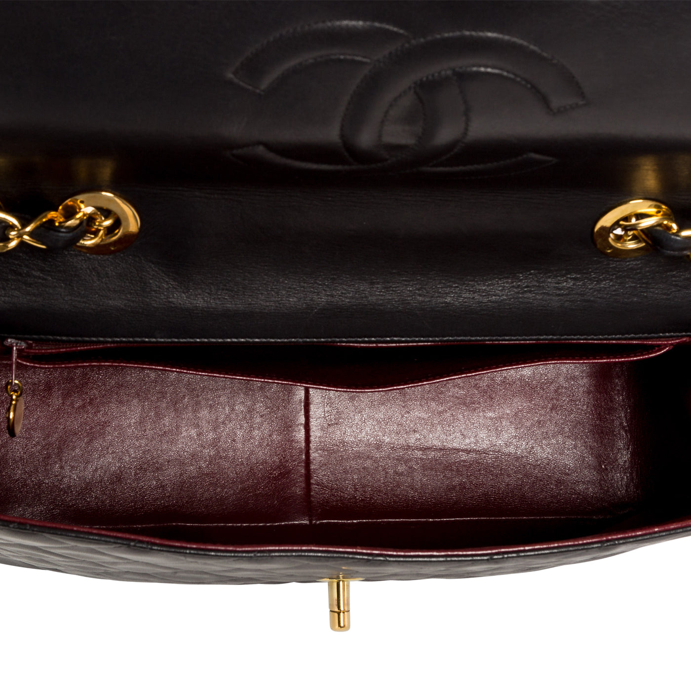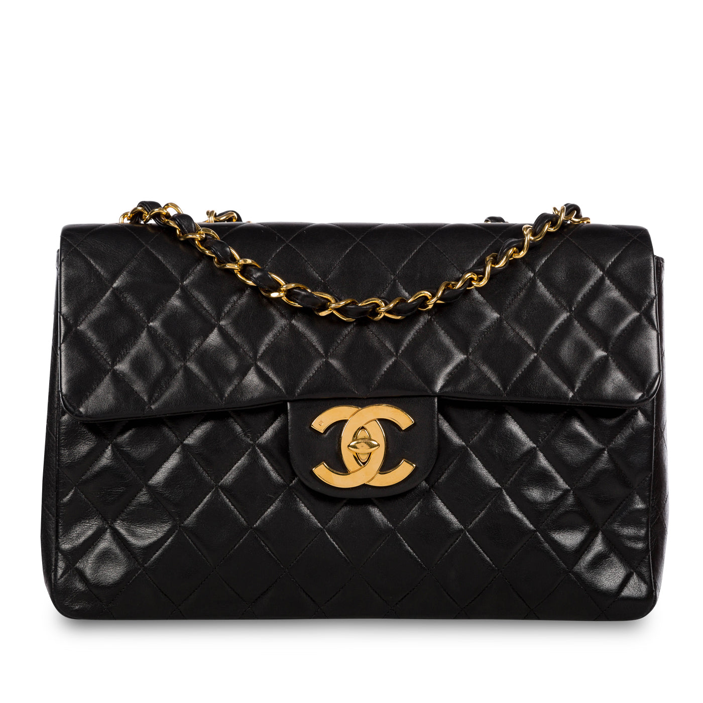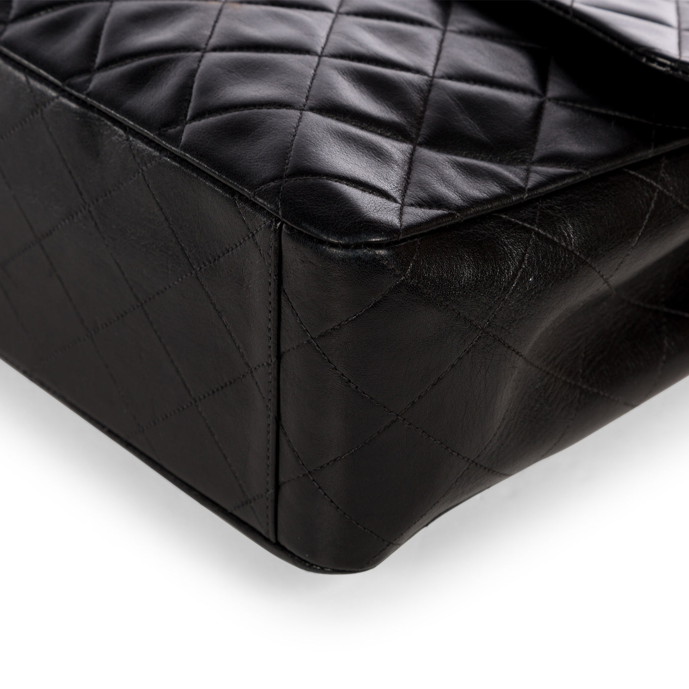 For all the vintage Chanel lovers, this one's for you. This rare Maxi Jumbo XL Classic Flap is definitely not easy to find. With its smooth, quilted lambskin leather, gold tone hardware and XL CC logo clasp, this bag is elegant and sophisticated. Ideal for day-to-night usage, you can fit your whole world comfortably inside. Timeless, classic and the ultimate addition to any luxury handbag collection, this vintage gem is a true must-have.
