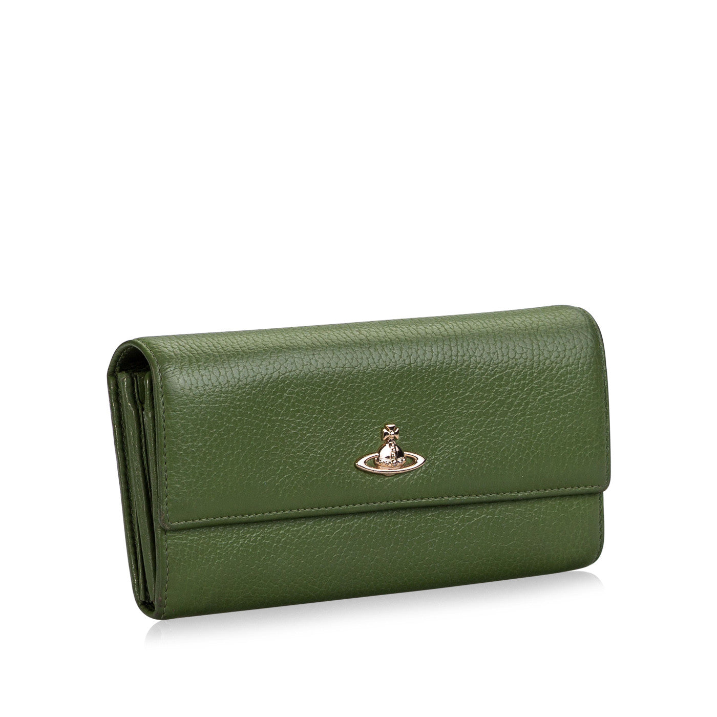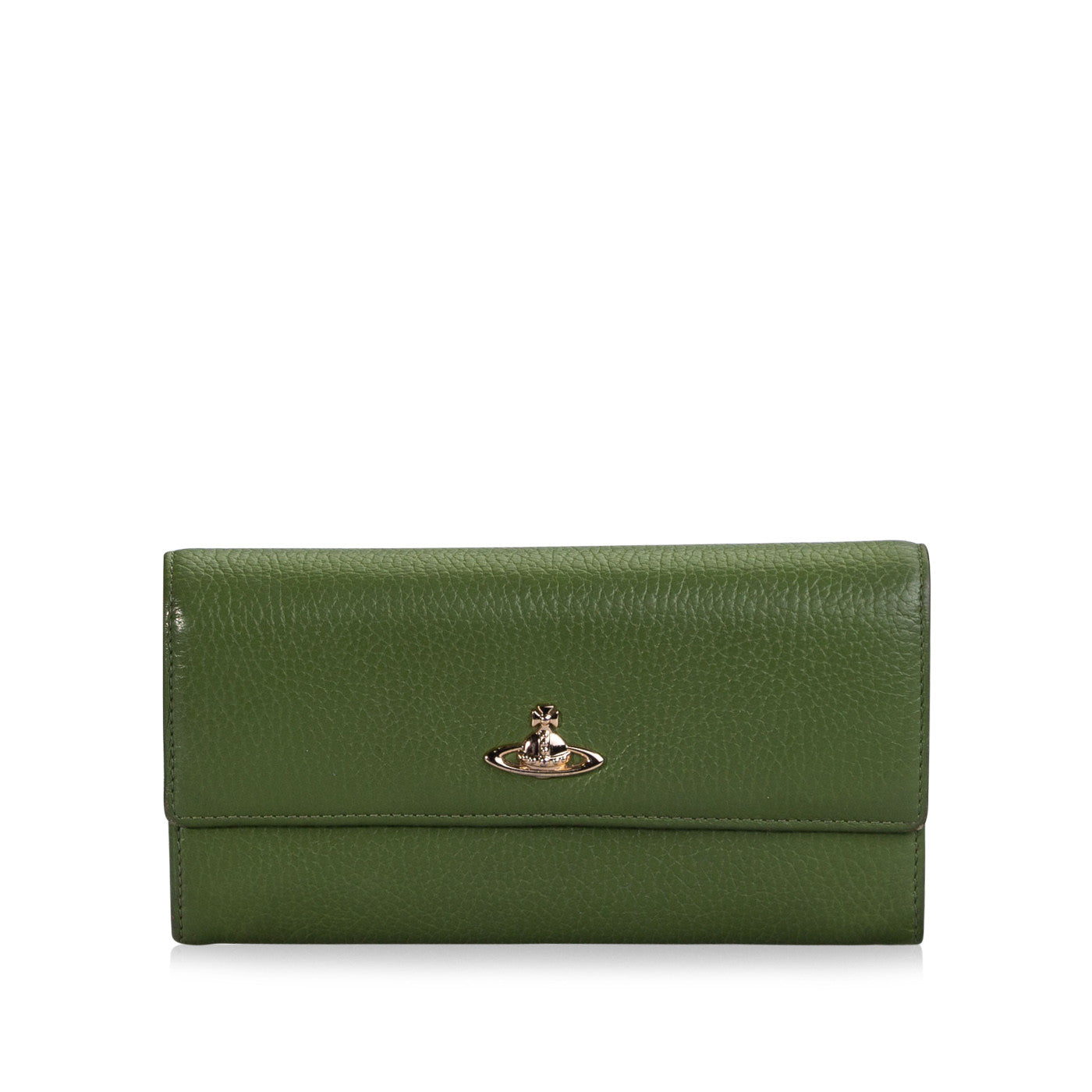 British designer Vivienne Westwood creates colourful and fun accessories with a luxury edge, which is shown in the design of this spring green, textured leather purse. This purse is spacious and a perfect size for everyday use. This glamourous purse also features the signature Vivienne Westwood orb logo.