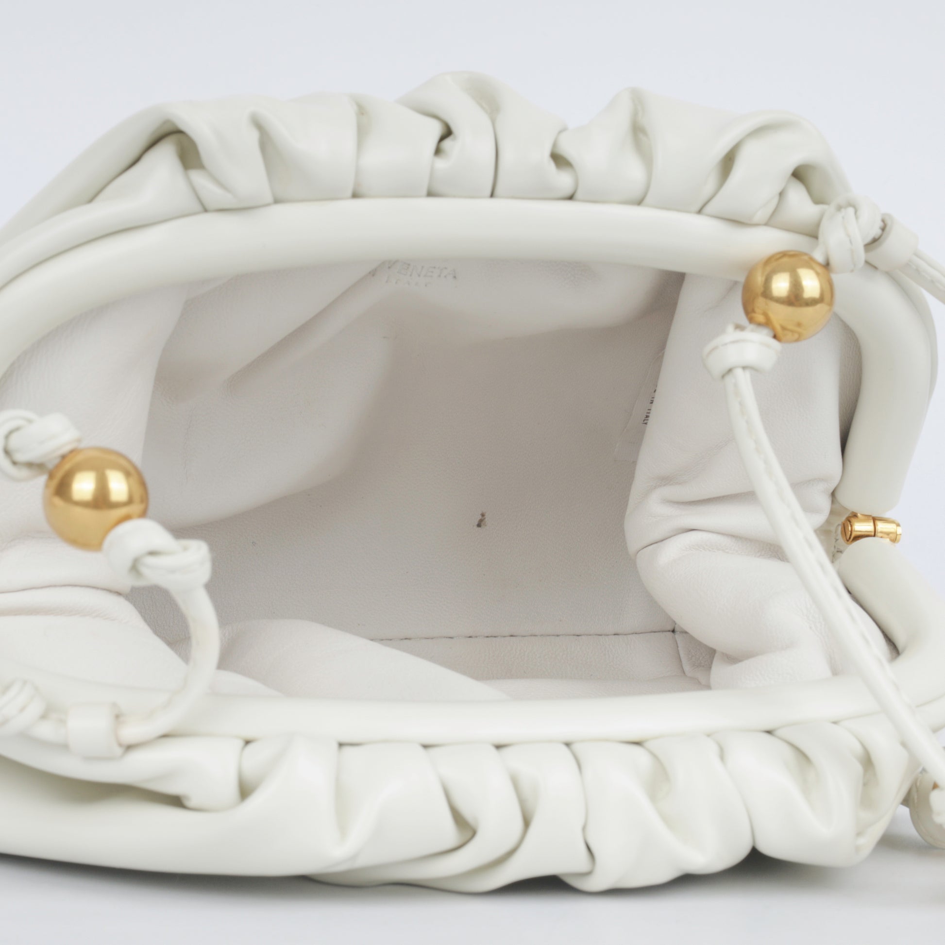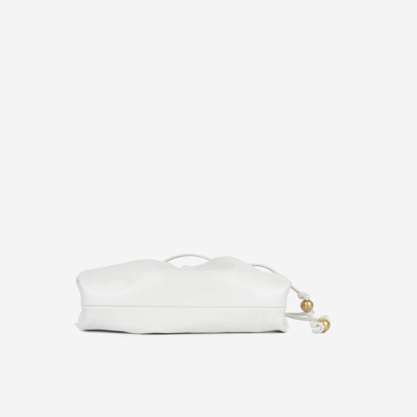 Bottega Veneta presents their beautiful mini pouch bag, the ultimate understated bag to emphasise all your outfits. Carefully crafted in a soft white patent finish leather, slouchy silhouette, this bag offers practicality as well as style. Fit all your every day essentials inside the spacious interior.