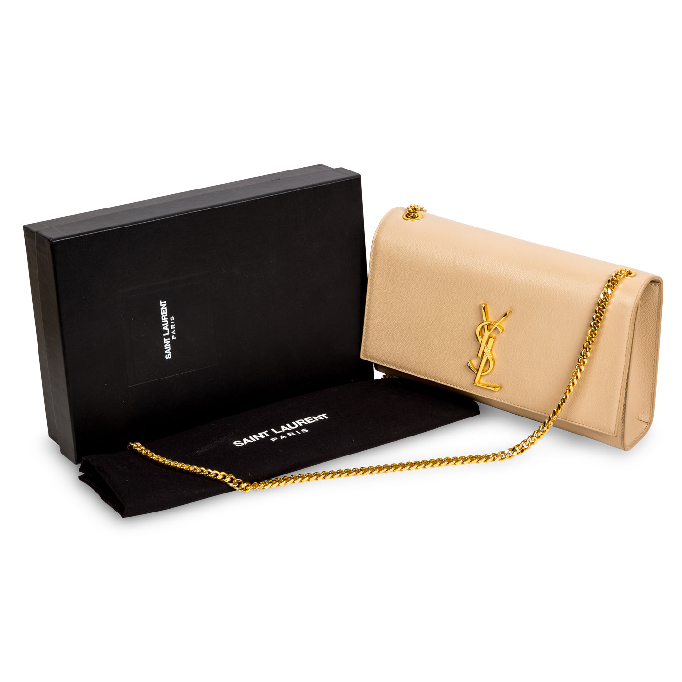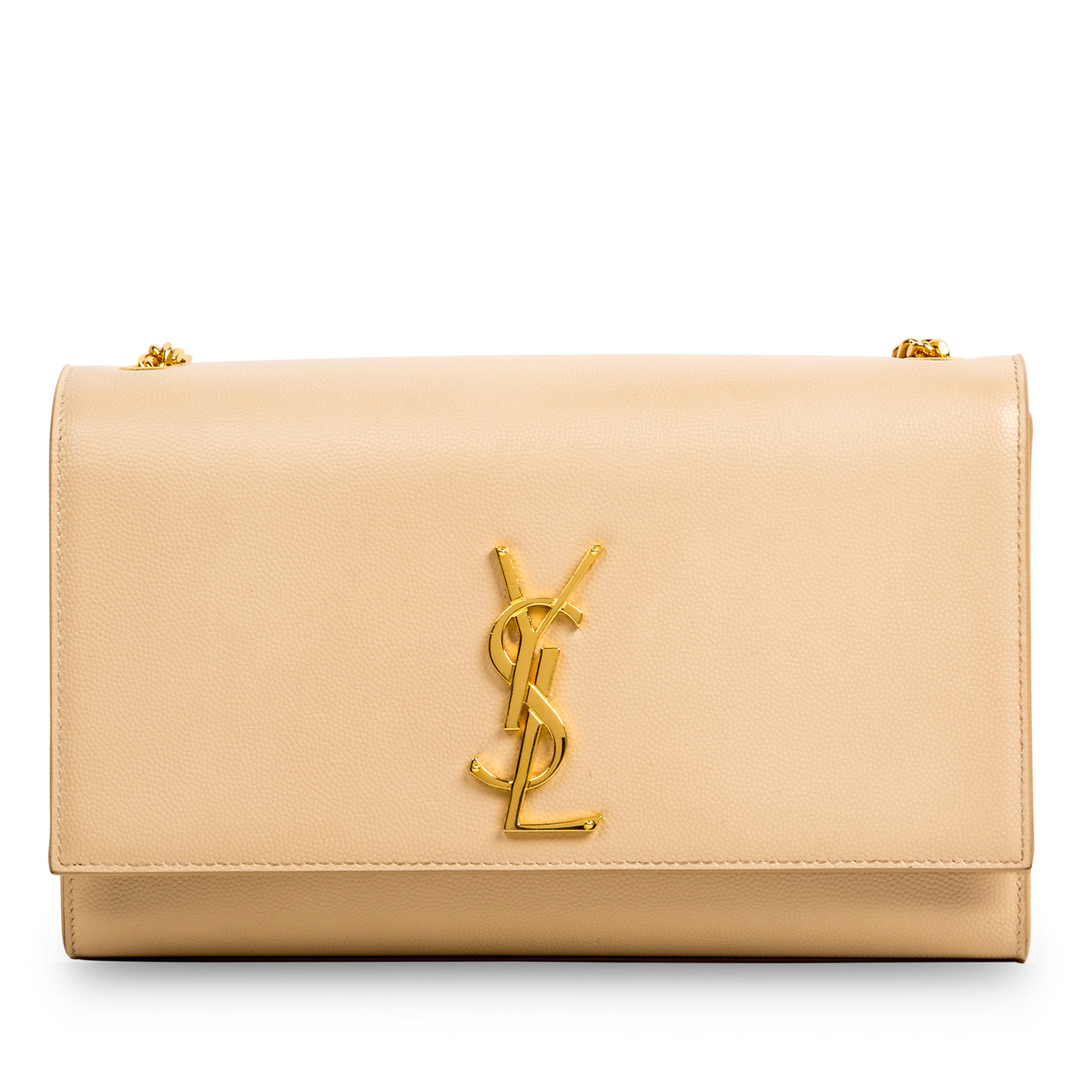 A timeless and iconic YSL signature, the Kate bag displayed in a rich, neutral hue is an absolute necessity for any handbag enthusiast. Crafted from grainy leather, this bag is the ideal accessory to take you from day to night. Offering the best of both worlds, the Kate bag is your go-to for any occasion. Wear this piece with pretty much anything in your wardrobe - whether you dress it up or down, the Kate is the perfect accessory to compliment your look. The beige leather complimented by the glossy, gold-tone hardware and prominent YSL logo is a match made in heaven. The perfect balance between classic and contemporary, the Kate is a well worthy addition to any luxury handbag collection.